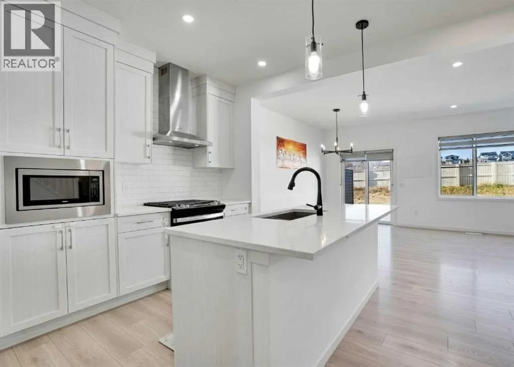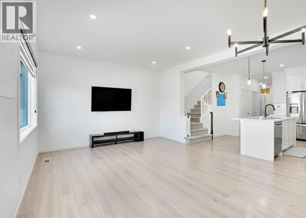Welcome to this gorgeous semi-detached home in the highly sought-after community of Bayview, Airdrieâwhere modern design meets comfort and functionality. Perfectly situated next to the canal and green space, this property offers a peaceful lifestyle surrounded by nature, walking paths, and scenic views.The homeâs inviting curb appeal and oversized single-car garage set the tone for what awaits inside. Step into a thoughtfully designed main floor featuring a dedicated office, ideal for remote work or study. The upgraded kitchen is a true centerpiece, showcasing stainless steel appliances, a gas range, full-height cabinets, quartz countertops, and a large islandâperfect for entertaining and everyday living. The open-concept living and dining areas are bright and spacious, enhanced by large windows that flood the home with natural light.Upstairs, youâll find three bedrooms in total, offering incredible flexibility for families of all sizes. The primary suite is a private retreat with a 5-piece ensuite and a walk-in closet, while two additional good-sized bedrooms provide plenty of space for children or guests. Another full bathroom and an ample-sized bonus area complete this level, offering a perfect spot for a media room or play space.Notable upgrades include pot lights in the kitchen, bonus room, and master bedroom, along with elegant tray ceilings in the bonus and master areas, adding a touch of architectural charm.Step outside to enjoy your oversized backyard with a spacious deck, ideal for summer barbecues and outdoor gatherings.Located close to schools, shopping, parks, and everyday amenities, this Bayview beauty offers the ideal balance of style, space, and convenience.Donât miss your opportunity to own this exceptional Airdrie homeâschedule your private viewing today! (id:27476)