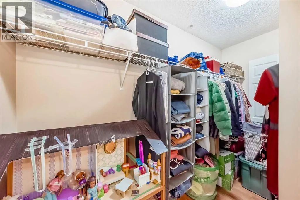 Fantastic Crown Shores Condo â Ideal Layout for Roommates or Investors!Welcome to this bright and spacious 2-bedroom, 2-bathroom condo in the sought-after Crown Shores complex in Airdrie. This smart and functional layout offers the ultimate privacy for roommates or guests, with bedrooms located on opposite sides of the suiteâeach with its own full bathroom. The primary bedroom features a walk-in closet and a private ensuite, creating a comfortable personal retreat.The open-concept kitchen boasts a large island, plenty of counter space, and overlooks the living areaâperfect for cooking, dining, and entertaining. Enjoy west-facing views that bring in plenty of natural light throughout the day, along with stylish laminate flooring and in-floor heating for consistent comfort without any bulky baseboard heaters. Hot water on demand adds even more convenience to everyday living.This unit also includes a titled heated underground parking stall in a prime location with no neighboring stall on one side, giving you extra space and ease when parking.Ideally located close to parks, schools, shopping, and quick access to major routes, this condo is the perfect blend of comfort and convenience. With a great tenant who would love to stay, it also makes for a strong, turnkey investment opportunity. (id:27476)