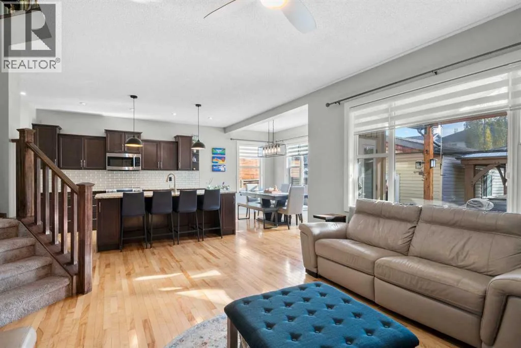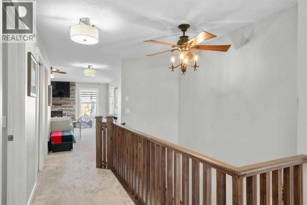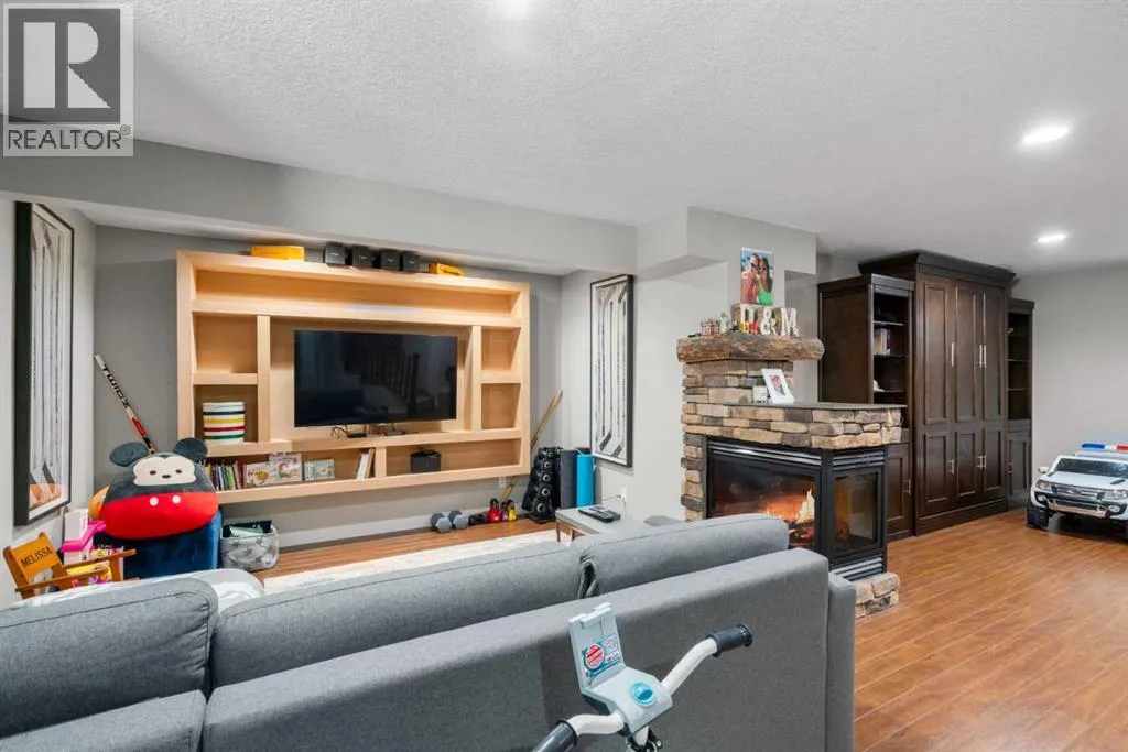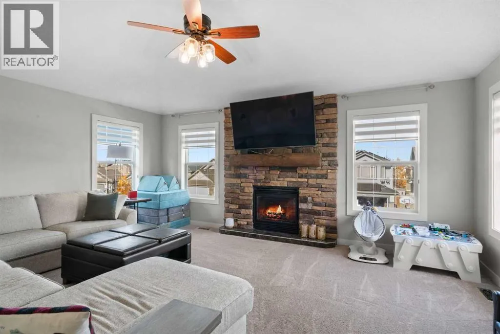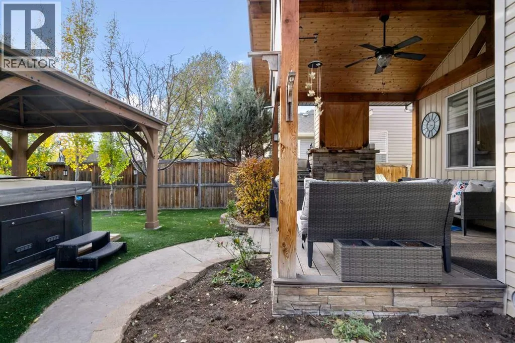 Welcome to 2581 Coopers Circle SW in the vibrant sought after community of Coopers Crossing. This well appointed home boasts over 3000 sq ft in total development. With abundant large windows, central air conditioning for those hot days and gleaming hardwood floors this home is oozing with warmth and functionality right from the moment you enter into the open concept floor plan. The main floor consists of a mud room that you will love with individual storage space, a separate office with built-ins, 2 pc bathroom and then come on into your dream Chefs kitchen featuring expansive granite countertops, a coffee corner, copious amounts of cabinets, pantry and a huge island with extra seating space for entertaining or just your family. All this open to your large dining area and a spacious living room that has floor to ceiling windows. Upstairs boasts a bonus room for your family to spend time together around the beautiful gas fireplace, a 4pc bathroom, separate laundry room and 3 good sized bedrooms including the luxurious Primary bedroom large enough for a king bed and furniture complete with a walk-in closet and a spa like 4pc ensuite. There is plenty of additional living space with the fully finished lower level. Here you will find another 4pc bathroom, a den which can possibly be a future bedroom, a work out area, and a huge recreation/family room, a cozy 3 way gas fireplace and the best part yet is a Murphy Bed on the wall for those guests that stay over! A highlight of this property is the covered deck for you to enjoy year around with yet another gas fireplace! There is even more...no need to mow the back lawn with this artificial turf that looks so real, a gazebo to put your hot tub under, concrete pad for extra entertaining space and a single car garage that can be used to park a car or maybe even for your gym. No need to worry about parking as there is also a attached oversized garage. This is a Beautiful Home that you will not want to miss out on! (id:27476)