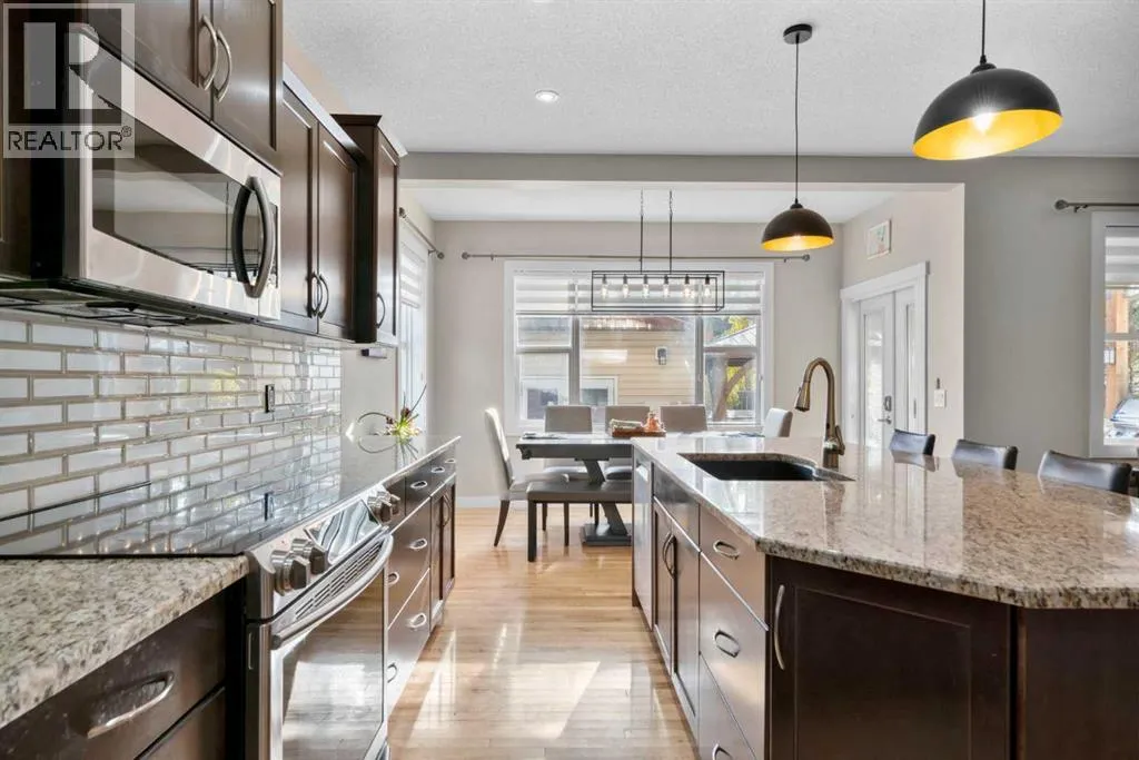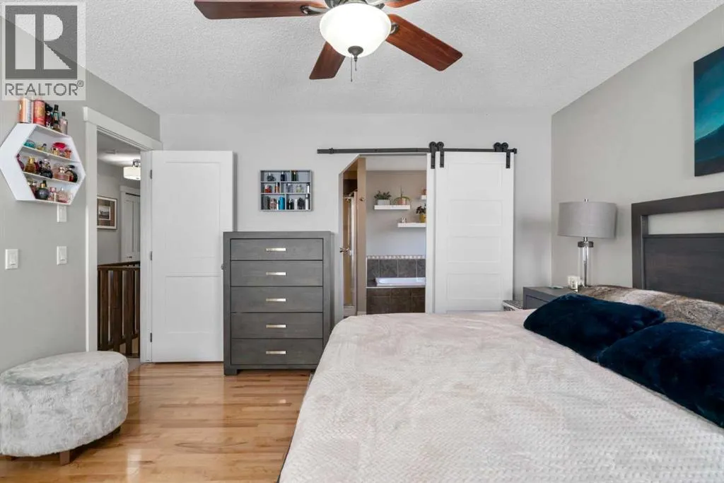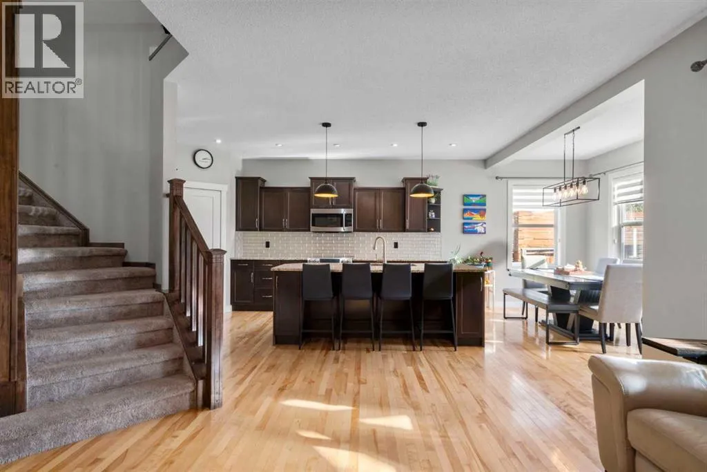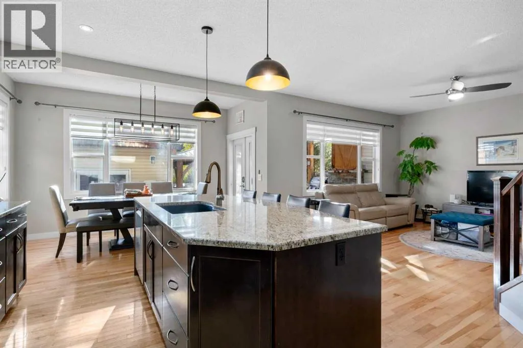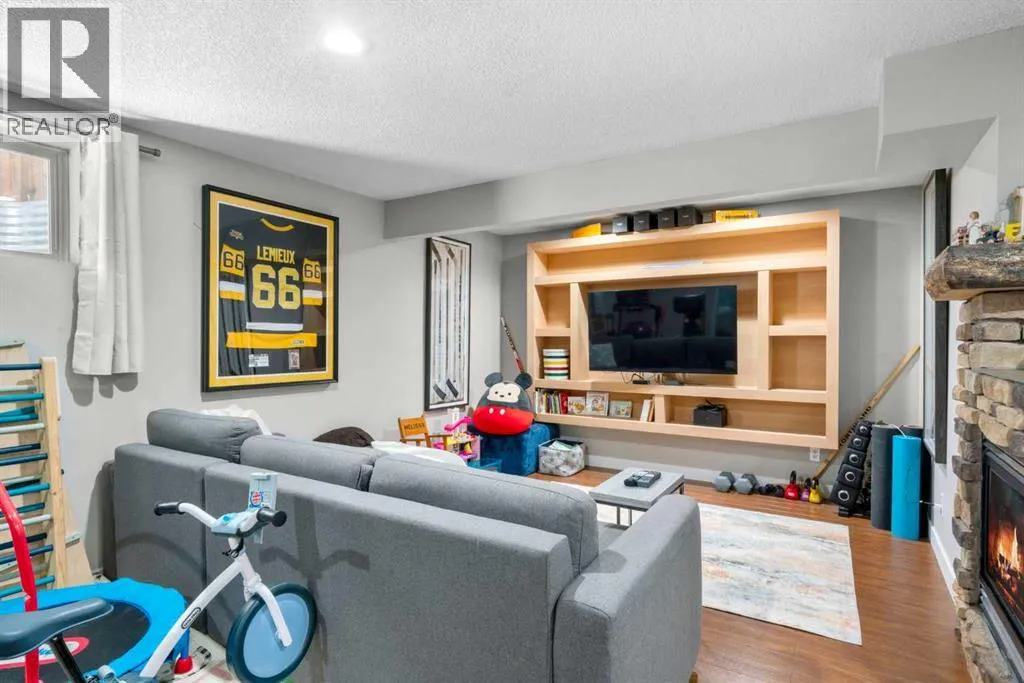 Welcome to 2581 Coopers Circle SW in the vibrant sought after community of Coopers Crossing. This well appointed home boasts over 3000 sq ft in total development. With abundant large windows, central air conditioning for those hot days and gleaming hardwood floors this home is oozing with warmth and functionality right from the moment you enter into the open concept floor plan. The main floor consists of a mud room that you will love with individual storage space, a separate office with built-ins, 2 pc bathroom and then come on into your dream Chefs kitchen featuring expansive granite countertops, a coffee corner, copious amounts of cabinets, pantry and a huge island with extra seating space for entertaining or just your family. All this open to your large dining area and a spacious living room that has floor to ceiling windows. Upstairs boasts a bonus room for your family to spend time together around the beautiful gas fireplace, a 4pc bathroom, separate laundry room and 3 good sized bedrooms including the luxurious Primary bedroom large enough for a king bed and furniture complete with a walk-in closet and a spa like 4pc ensuite. There is plenty of additional living space with the fully finished lower level. Here you will find another 4pc bathroom, a den which can possibly be a future bedroom, a work out area, and a huge recreation/family room, a cozy 3 way gas fireplace and the best part yet is a Murphy Bed on the wall for those guests that stay over! A highlight of this property is the covered deck for you to enjoy year around with yet another gas fireplace! There is even more...no need to mow the back lawn with this artificial turf that looks so real, a gazebo to put your hot tub under, concrete pad for extra entertaining space and a single car garage that can be used to park a car or maybe even for your gym. No need to worry about parking as there is also a attached oversized garage. This is a Beautiful Home that you will not want to miss out on! (id:27476)