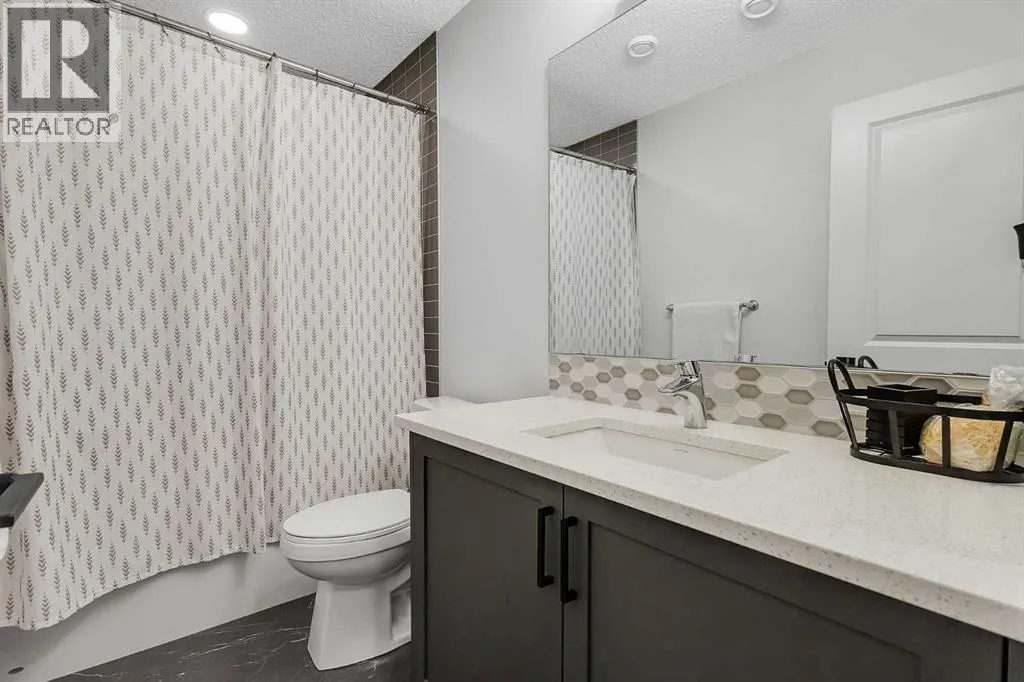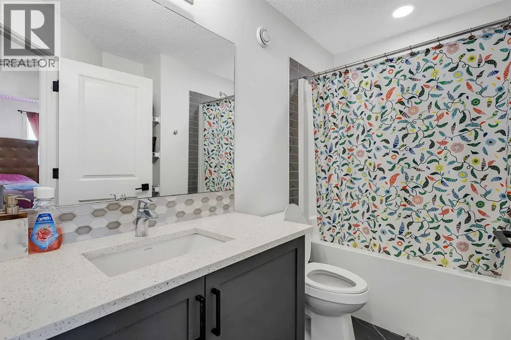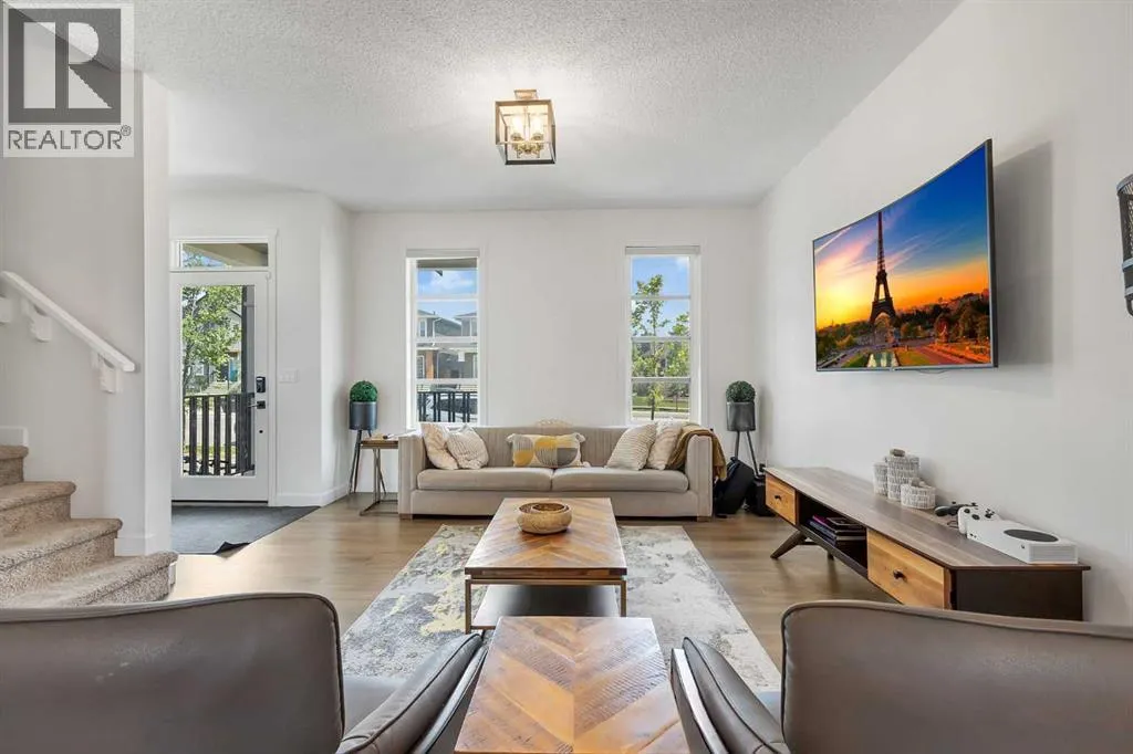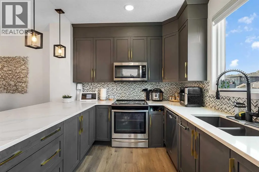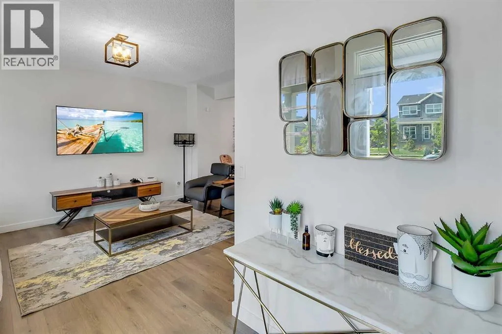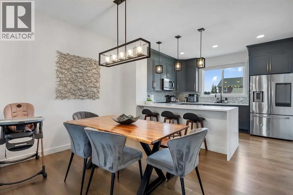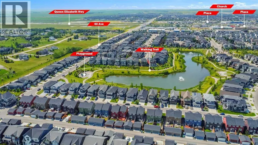 *PRICE IMPROVEMENT* Welcome to this beauty in Lanark, SE Airdrie; over 2100 sq ft of developed living space with upgraded, Hardie-board exterior sidings. This centrally, air-conditioned 2021 built, semi-detached home is also situated about 5 minutes from Calgary. The main floor comprises of a bright, open floor plan with spacious living area, dining area, mud room and a half bath. The upgraded kitchen area features quartz countertop, water-fall island, smart/stainless-steel appliances as well as a touch-screen refrigerator and upgraded cabinetry for a seamless cooking and dining experience.The upper floor features 3 bedroom and 2 bathrooms. The primary bedroom includes a walk-in closet and an ensuite bathroom. Down below, the over 650 sq ft fully finished basement includes a living space, 4pc full bathroom, bedroom and a living/recreational area.Step outside into the fully landscaped and fenced backyard; you have the option of relaxing on the deck, making some BBQ with friends in the summer or just enjoying the sizable backyard with family. The two-car detached garage completes your back yard. You also have the option of enjoying the basketball court, skating rink or other amenities close in the community. This home is very accessible; few mins away from the QEII highway and near lots of amenities, mins walk/drive to green spaces, parks, bike paths, schools, medical offices, gyms, bus stops, public transportation and more. This home is for sale by the first and only owner; owner lived in the house throughout and the house is well taken care, just waiting for the next owner. Book your showing today. (id:27476)