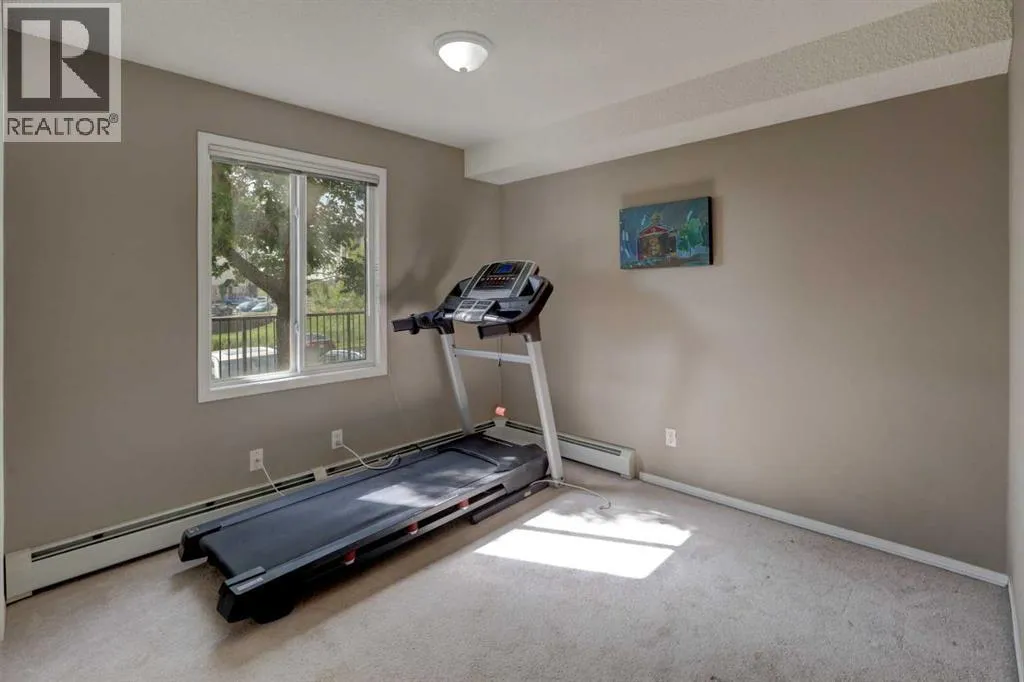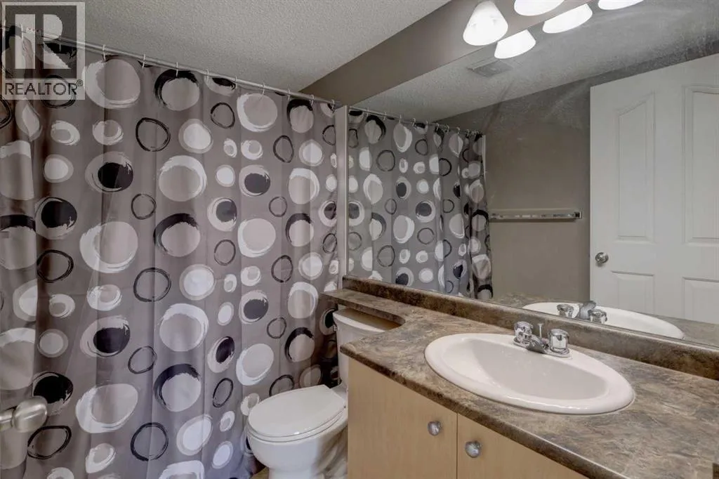 Welcome to this bright and spacious main-floor condo in the heart of Downtown Airdrie!This 2-bedroom, 2-bath home offers an open-concept layout with a functional kitchen featuring an eat-up breakfast bar that flows seamlessly into the dining and living areas â all filled with natural light from large windows. The primary suite includes a 4-piece ensuite and walk-in closet, while the second bedroom is generously sized â perfect for guests, a roommate, or a home office. Step outside to your private ground-level patio overlooking the pond, ideal for morning coffee or evening relaxation. Additional highlights include in-suite laundry with plenty of storage and two assigned parking stalls. Located within walking distance to shops, restaurants, and local amenities, this home is an excellent opportunity for first-time buyers or investors alike. Be sure to view the VIRTUAL TOUR LINK for interactive floor plans, high-definition photos, and a room-by-room virtual walkthrough! (id:27476)