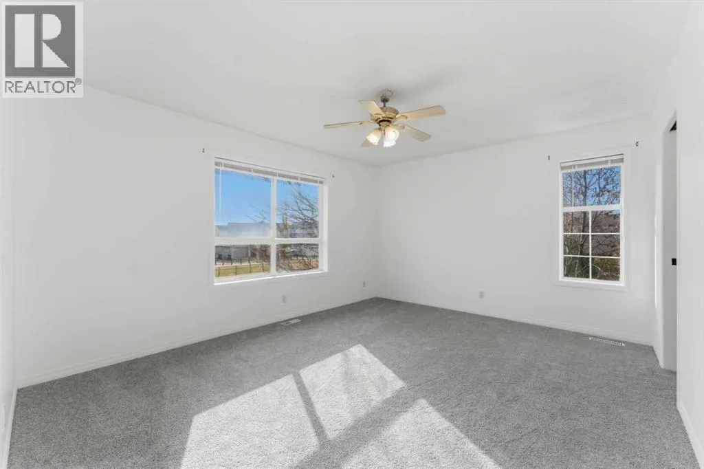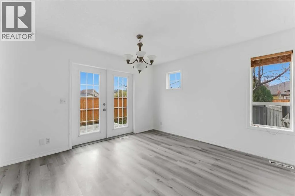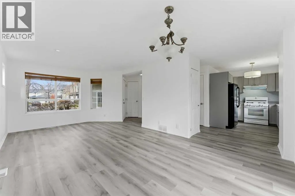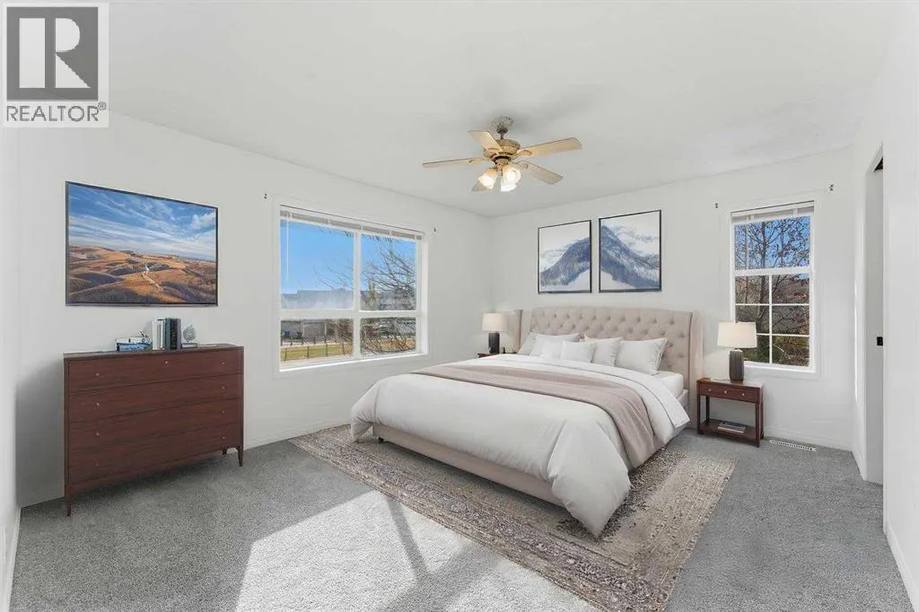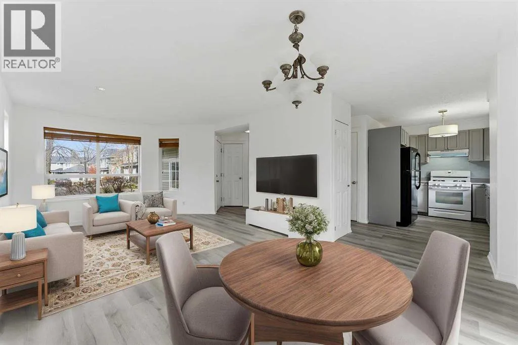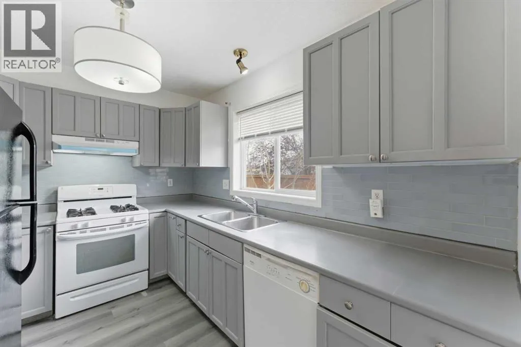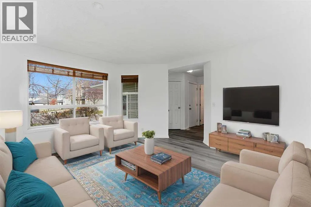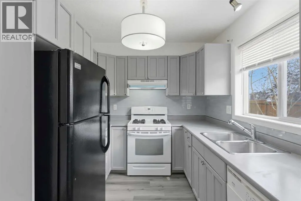 MOVE-IN READY | ATTACHED GARAGE | LOW CONDO FEES | PIE LOT | SOUTH BACKYARD | 4 BEDROOMS + 4 BATHROOMS | GOLF COMMUNITY | Beautifully refreshed and move-in ready, this family-friendly home in the sought-after golf community of Fairways offers a balance of comfort, convenience and value. The bright open-concept main floor showcases updated flooring and a neutral colour palette that complements any décor style. A spacious front living area with large windows invites natural light throughout the day, while the adjacent dining room opens through French doors to the sunny south-facing backyard, perfect for kids to play or for easy indoor/outdoor entertaining. The updated kitchen features timeless grey cabinetry, a gas stove, subway tile backsplash and a window overlooking the yard to keep an eye on the kids. A convenient powder room completes this level. Upstairs, the generous primary bedroom offers a walk-through closet that connects to a private 2-piece ensuite for added comfort. 2 additional bedrooms share a full 4-piece bathroom, providing plenty of space for growing families. The finished basement extends the living space with a large rec room anchored by a cozy gas fireplace to gather in front of and enjoy movies and games nights. Completing this level is a 4th bedroom, a 3-piece bathroom, laundry area and ample storage. Set on a pie-shaped lot with no neighbours behind, the fenced yard provides privacy with a deck for barbequing and relaxation and lots of grassy play area. Never scrape your vehicleâs windows again, thanks to the convenient attached garage with extra driveway parking. Located within walking distance of both public and Catholic schools and minutes from shopping, parks and the Woodside Golf Course, this home combines practicality with an active family lifestyle. With its low condo fees, modern updates and prime location, this home is ready for your next chapter! (id:27476)