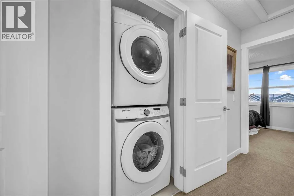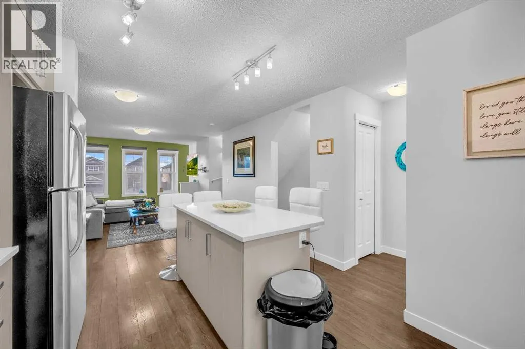 Welcome to your new home in Kings Heights! This beautifully maintained 975 sq ft two-storey townhome offers a bright open-concept layout with stunning luxury vinyl plank flooring throughout the main floor, flowing from the spacious living and dining areas into a larger-than-average kitchen featuring quartz countertops, stainless steel appliances, and plenty of counter and cabinet spaceâperfect for cooking and entertaining. A convenient two-piece bathroom completes the main level. Upstairs, youâll find brand-new carpet (October 2025), two generous primary bedrooms each with its own ensuite, ample closet space, and large windows that fill the rooms with natural light, along with upper-floor laundry for added convenience. The tandem double garage below provides room for two cars or extra space for storage, a gym, or a workshop. Recent updates include a new garburator (May 2024) and a brand-new washer (September 2025). Located in the sought-after, family-friendly community of Kings Heightsâclose to schools, parks, restaurants, and shopping, with a new overpass into Airdre, tons of extra street parking, this home combines comfort, style, and exceptional value. Welcome home! (id:27476)