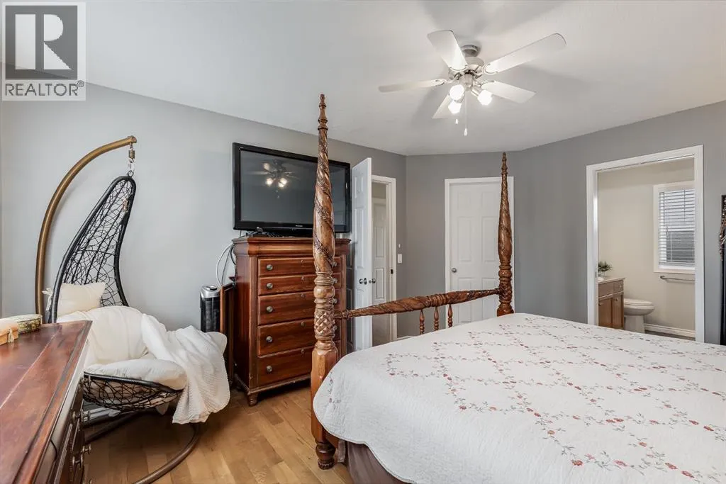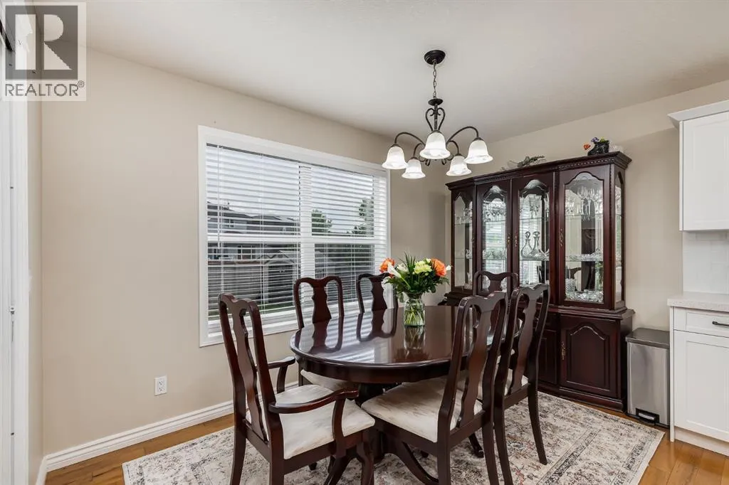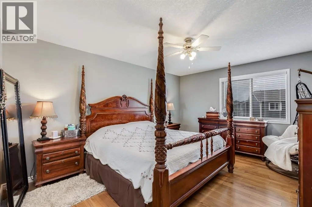 Seller Motivated - Let's work a deal! This RENOVATED and BEAUTIFUL FULLY FINISHED 4 Bedroom McKee Built Home sits on a LARGE PIE LOT located in the POPULAR COMMUNITY OF THORBURN in Airdrie and is ready for a Quick Possession. Upgrades include HARDIE BOARD SIDING, HEATED OVERSIZED GARAGE, HARDWOOD FLOORS on Main and Upper Levels, WHITE KITCHEN RENO, A/C and so much more. When you arrive to this 4 Bedroom Home with over 1,967 sqft of Developed Living Space you are welcomed into the Private and Spacious Foyer and will immediately notice the HARDWOOD FLOORING. The RENOVATED KITCHEN features WHITE CABINETRY, QUARTZ COUNTERTOPS, Stainless Steel Appliances, Pot and Pan Drawers, Lighting, a FARMERS SINK in the Large Island, plumbed for a Gas Stove, and a Corner Pantry. The Living Room is bathed in natural light from the Oversized Windows and has a Corner Fireplace. The Dining area is quite Large and has an Oversized Window to enjoy the yard. The Main Floor also has a spacious Laundry Room with a Sink and extra Cabinets, and a half bath. The Upper Level has Hardwood Flooring, a Huge Primary Bedroom 14'11 x 12'3" that easily fits a King Suite, a 4 pc Ensuite with Soaker Tub, and a Walk in Closet. 2 Additional Bedrooms that can both fit Queen Beds, and a Full Bath complete the upper level. The Fully Finished Lower Level has a Massive Bedroom 16'3" x 11', Spacious Recreation / Family Room, Full Bathroom with Soaker Tub, and a Great Storage Room. This Home is AIR CONDITIONED, has a WATER SOFTENER, and has an OVERSIZED HEATED GARAGE 21'6' x 21'4" with Lots of Cabinets and a Huge Loft for Tons of Storage. The Fantastic Pie Shaped Yard is 2 Lots Wide at the rear, and has a Beautiful Tree by the deck making it a great space to relax and listen to the birds. There is a Gas Line for the BBQ and a lot of outside storage along the south side of the Home if needed. The Home also had the shingles replaced in 2015. This Fantastic Home is Turnkey and is ready for you to make it yours. Imag ine your children playing in the yard or nearby playground, being able to walk to the nearby schools, and making great memories here. THIS IS A FANTASTIC HOME located on a low traffic street. Quick Possession Available if needed. (id:27476)