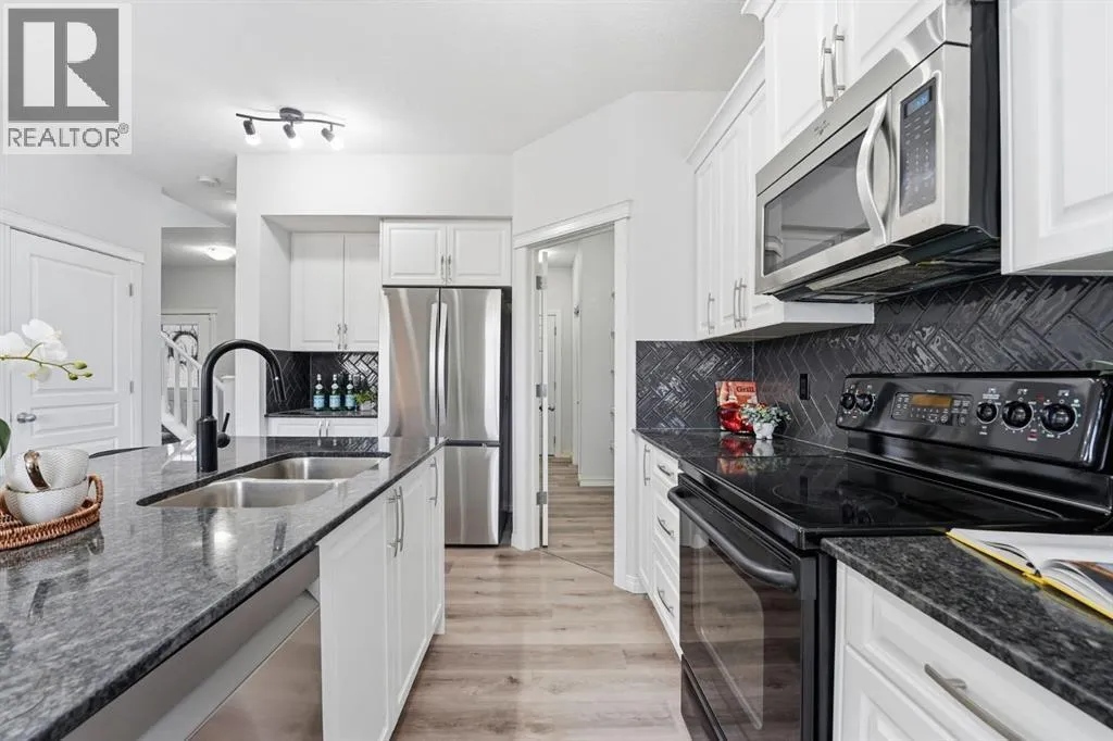 Welcome to your freshly updated home in the desirable community of Hillcrest, Airdrie! This beautiful two-storey detached home with a double front-attached garage has been thoughtfully refreshed from top to bottom. Step inside to a spacious foyer that opens into a bright, open-concept main floor featuring brand-new vinyl plank flooring, a generous living and dining area, and a modern kitchen with freshly painted cabinets, a walk-through pantry, and easy access to the deck and lower stone patio, perfect for outdoor entertaining. A convenient powder room completes the main level. Upstairs, youâll find a large bonus room ideal for family movie nights, upper-floor laundry, and three comfortable bedrooms including a king-sized primary retreat with a luxurious 5-piece ensuite featuring a soaker tub, separate shower, dual sinks, water closet and a dedicated vanity with mirror, perfect for getting ready in style. A spacious walk-in closet completes this relaxing space. The home also features brand-new carpet and fresh paint throughout, offering a truly move-in-ready feel. The unspoiled lower level offers plenty of room for your future development ideas and includes a rough-in for a bathroom, giving you the perfect opportunity to create additional living space tailored to your needs. Located in sought-after Hillcrest, this home is close to schools, parks, playgrounds, walking paths, and shopping at Coopers Town Promenade. Commuting is a breeze with easy access to 8th Street and Highway 2, while nearby amenities, dining, and recreation make this the perfect spot for growing families and busy professionals alike. Fresh, modern, and full of natural light, this Hillcrest gem is ready to welcome you home! (id:27476)