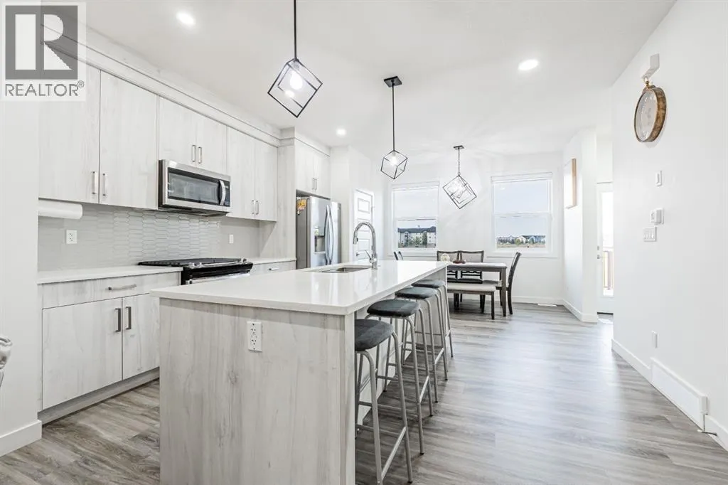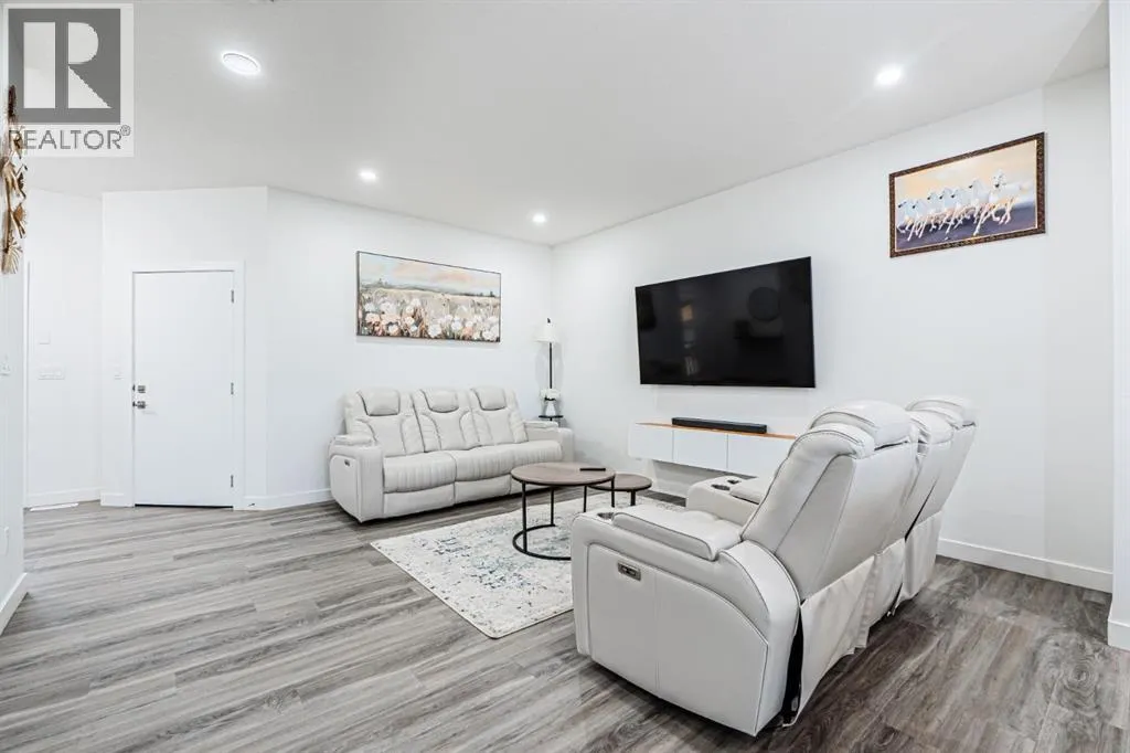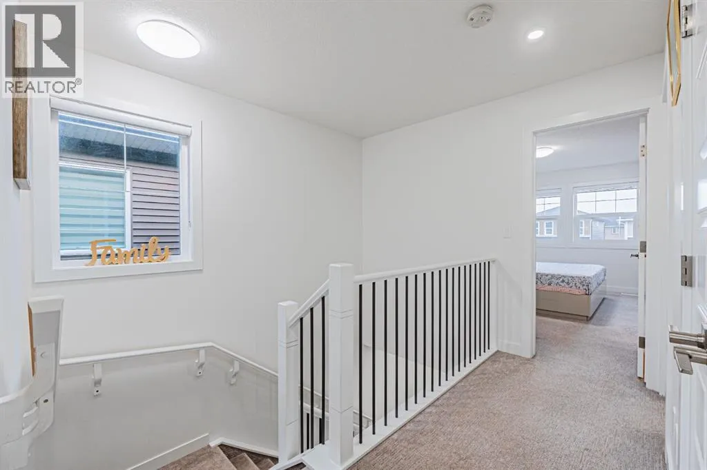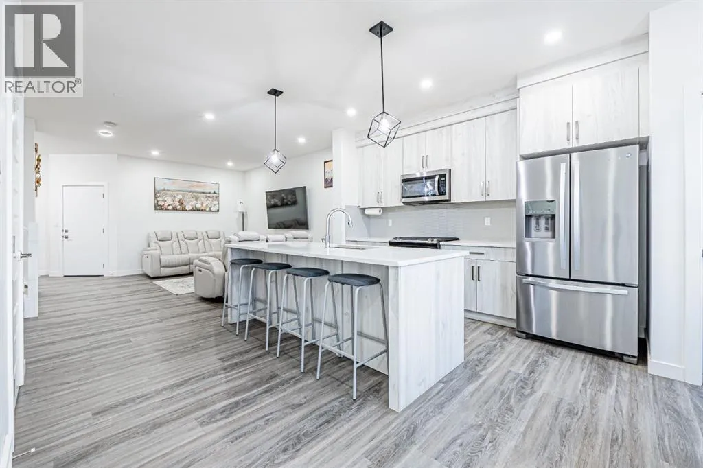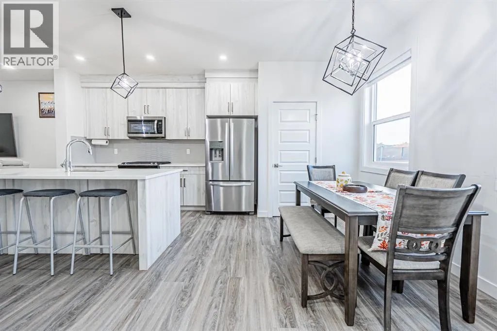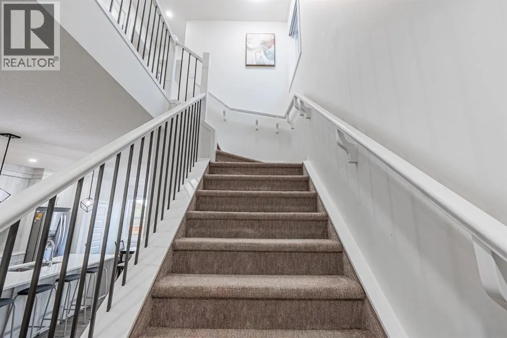 4 BEDROOMS + DEN | 3.5 BATHS | FRONT ATTACHED GARAGE | ILLEGAL BASEMENT SUITE | HIGH-END FINISHES | PRIME LOCATION | Welcome to this stunning and exceptionally maintained front garage duplex in the sought-after community of Midtown, Airdrie. This beautiful home showcases a modern design, high-end finishes, and a functional layout perfect for families, professionals or investors. With a total of 4 bedrooms plus a den and 3.5 bathrooms, this property offers exceptional comfort, versatility, and value.The main floor features a bright and open-concept layout that seamlessly connects the living, dining, and kitchen areasâperfect for entertaining or everyday family life. The elegant kitchen is a true highlight, complete with stainless steel appliances, ceiling-height cabinetry, quartz countertops, and a large island that provides additional workspace and seating. A cozy living room invites relaxation, while the dining area opens to a fully fenced and landscaped backyard with a deck and BBQ gas line, ideal for summer gatherings. A convenient half bathroom completes the main floor.Upstairs, youâll find three spacious bedrooms, including a luxurious primary suite with a walk-in closet and private ensuite bathroom. Two additional bedrooms share a full bath, and the upstairs laundry adds everyday convenience. The upper level offers a versatile layout perfect for growing families.The basement is fully developed with an illegal suite featuring a separate side entry, large living area, modern kitchen, bedroom plus den, and a full bathroom. This space is currently rented, making it an ideal mortgage helper or a perfect setup for extended family.Located in a quiet and family-friendly area, this home is just steps away from parks, walking trails, schools, and essential amenities such as Co-op Gas, Tim Hortons, and shopping. With 8 years of new home warranty remaining, this property offers both peace of mind and exceptional value.Move-in ready and waiting for youâschedule your private viewing today! (id:27476)