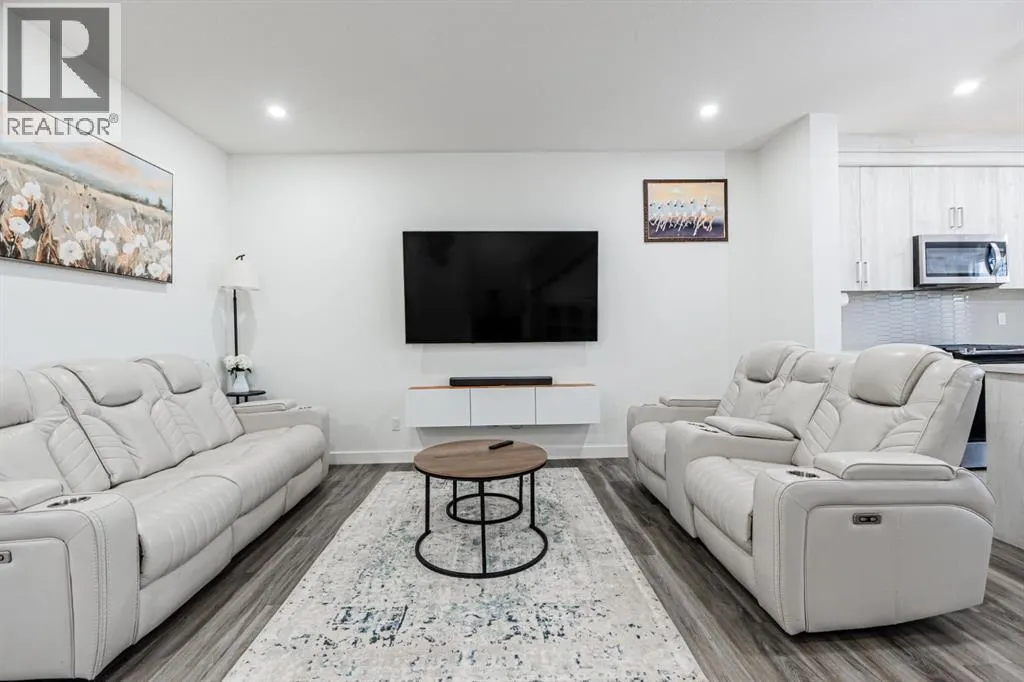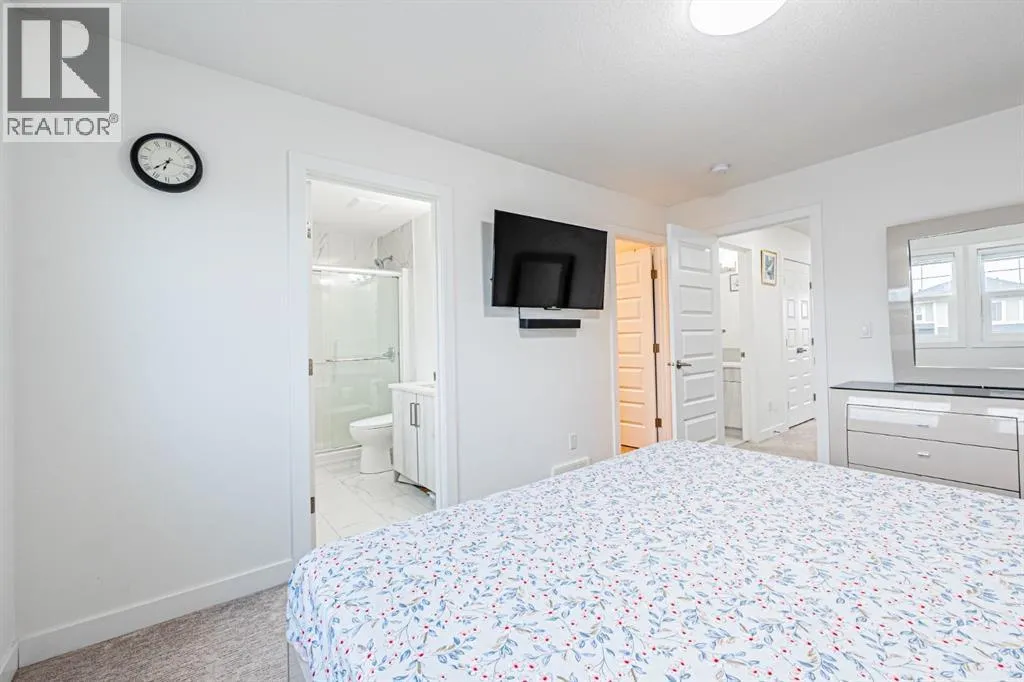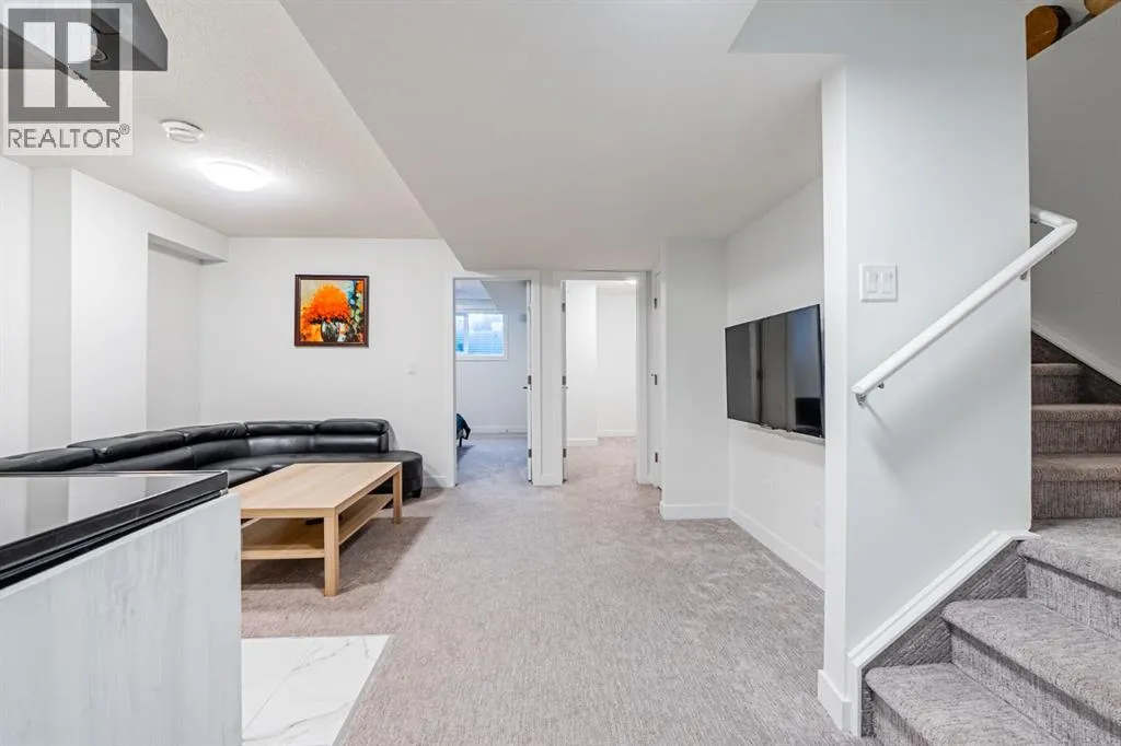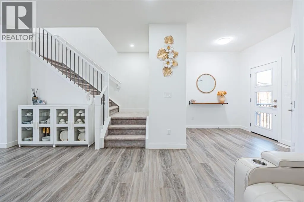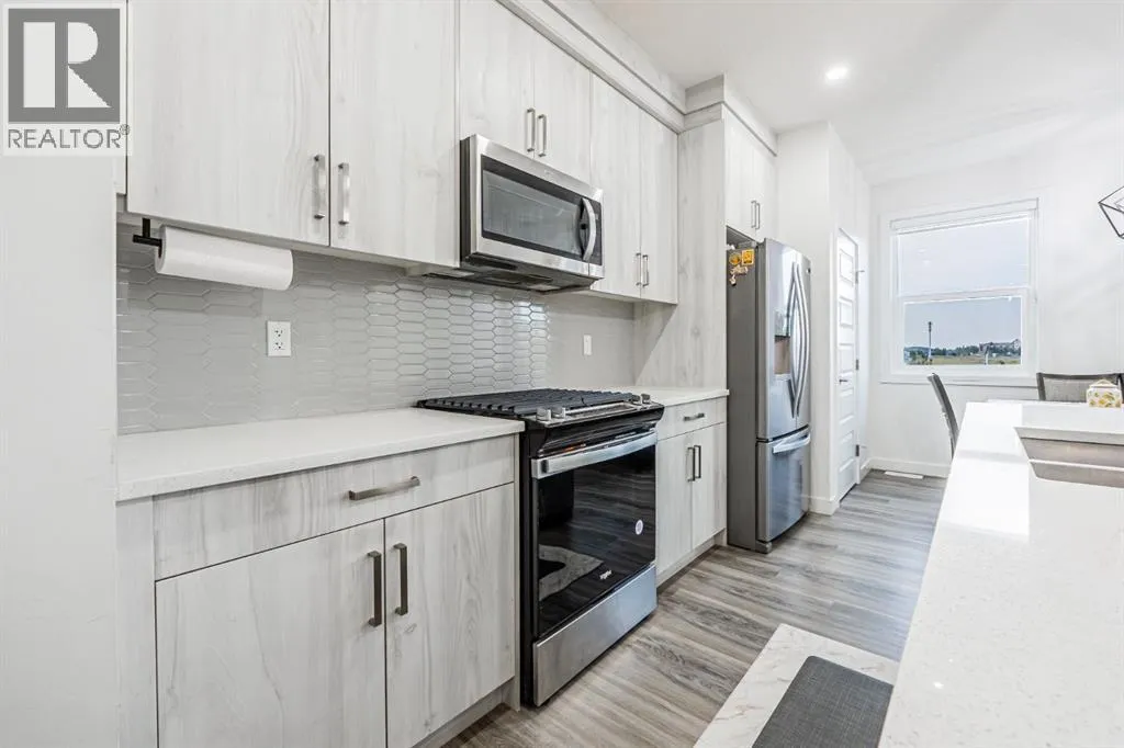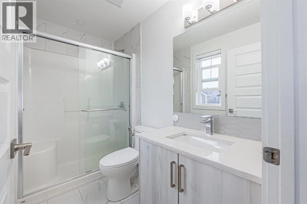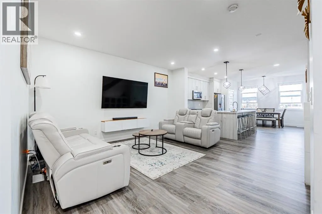 4 BEDROOMS + DEN | 3.5 BATHS | FRONT ATTACHED GARAGE | ILLEGAL BASEMENT SUITE | HIGH-END FINISHES | PRIME LOCATION | Welcome to this stunning and exceptionally maintained front garage duplex in the sought-after community of Midtown, Airdrie. This beautiful home showcases a modern design, high-end finishes, and a functional layout perfect for families, professionals or investors. With a total of 4 bedrooms plus a den and 3.5 bathrooms, this property offers exceptional comfort, versatility, and value.The main floor features a bright and open-concept layout that seamlessly connects the living, dining, and kitchen areasâperfect for entertaining or everyday family life. The elegant kitchen is a true highlight, complete with stainless steel appliances, ceiling-height cabinetry, quartz countertops, and a large island that provides additional workspace and seating. A cozy living room invites relaxation, while the dining area opens to a fully fenced and landscaped backyard with a deck and BBQ gas line, ideal for summer gatherings. A convenient half bathroom completes the main floor.Upstairs, youâll find three spacious bedrooms, including a luxurious primary suite with a walk-in closet and private ensuite bathroom. Two additional bedrooms share a full bath, and the upstairs laundry adds everyday convenience. The upper level offers a versatile layout perfect for growing families.The basement is fully developed with an illegal suite featuring a separate side entry, large living area, modern kitchen, bedroom plus den, and a full bathroom. This space is currently rented, making it an ideal mortgage helper or a perfect setup for extended family.Located in a quiet and family-friendly area, this home is just steps away from parks, walking trails, schools, and essential amenities such as Co-op Gas, Tim Hortons, and shopping. With 8 years of new home warranty remaining, this property offers both peace of mind and exceptional value.Move-in ready and waiting for youâschedule your private viewing today! (id:27476)
