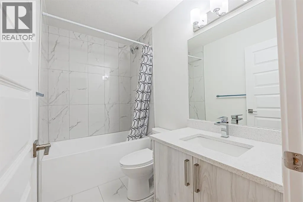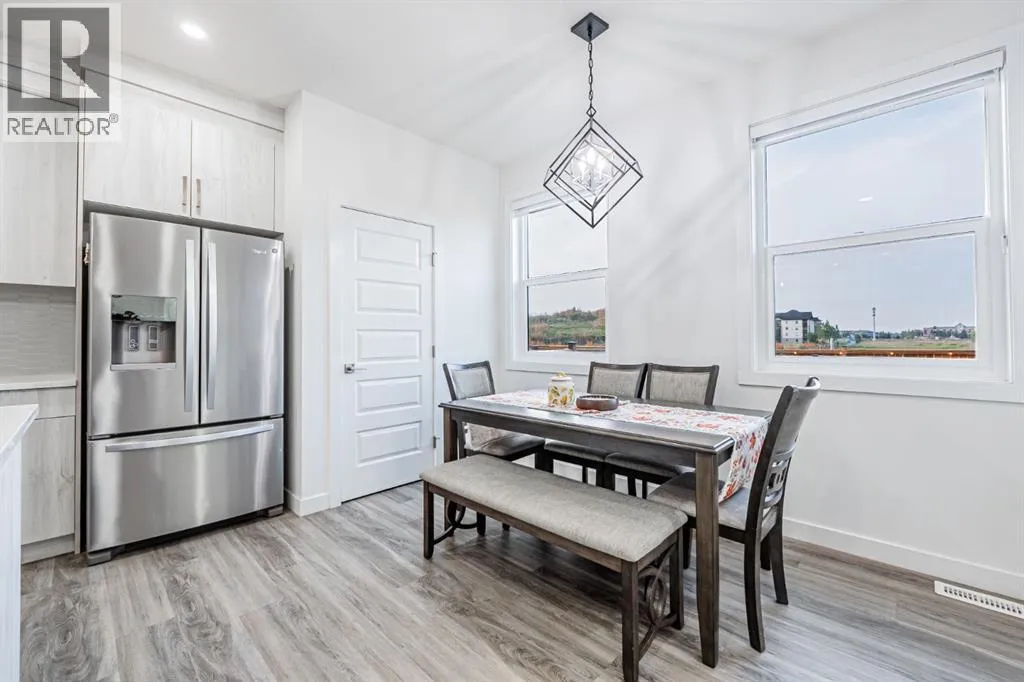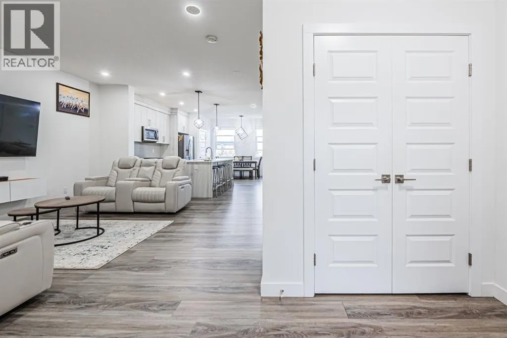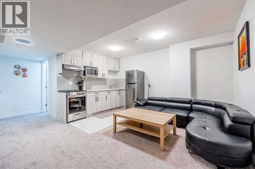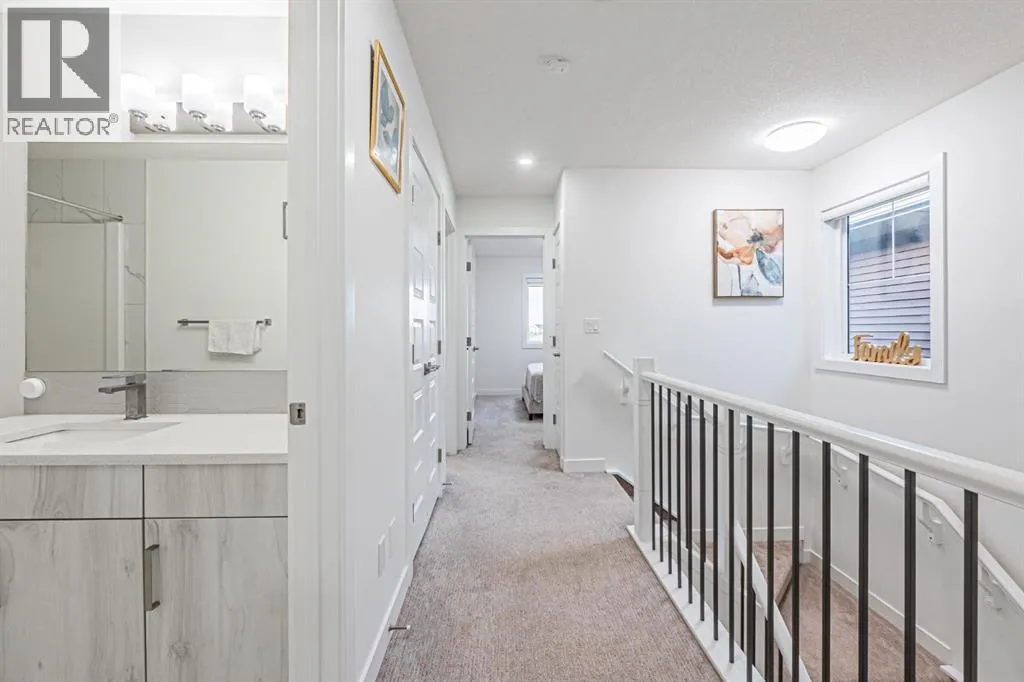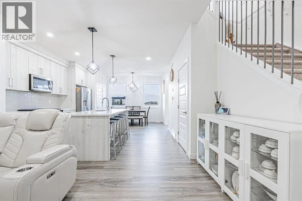 4 BEDROOMS + DEN | 3.5 BATHS | FRONT ATTACHED GARAGE | ILLEGAL BASEMENT SUITE | HIGH-END FINISHES | PRIME LOCATION | Welcome to this stunning and exceptionally maintained front garage duplex in the sought-after community of Midtown, Airdrie. This beautiful home showcases a modern design, high-end finishes, and a functional layout perfect for families, professionals or investors. With a total of 4 bedrooms plus a den and 3.5 bathrooms, this property offers exceptional comfort, versatility, and value.The main floor features a bright and open-concept layout that seamlessly connects the living, dining, and kitchen areasâperfect for entertaining or everyday family life. The elegant kitchen is a true highlight, complete with stainless steel appliances, ceiling-height cabinetry, quartz countertops, and a large island that provides additional workspace and seating. A cozy living room invites relaxation, while the dining area opens to a fully fenced and landscaped backyard with a deck and BBQ gas line, ideal for summer gatherings. A convenient half bathroom completes the main floor.Upstairs, youâll find three spacious bedrooms, including a luxurious primary suite with a walk-in closet and private ensuite bathroom. Two additional bedrooms share a full bath, and the upstairs laundry adds everyday convenience. The upper level offers a versatile layout perfect for growing families.The basement is fully developed with an illegal suite featuring a separate side entry, large living area, modern kitchen, bedroom plus den, and a full bathroom. This space is currently rented, making it an ideal mortgage helper or a perfect setup for extended family.Located in a quiet and family-friendly area, this home is just steps away from parks, walking trails, schools, and essential amenities such as Co-op Gas, Tim Hortons, and shopping. With 8 years of new home warranty remaining, this property offers both peace of mind and exceptional value.Move-in ready and waiting for youâschedule your private viewing today! (id:27476)