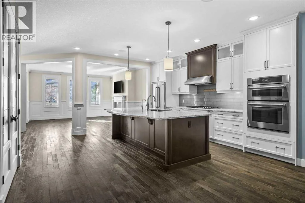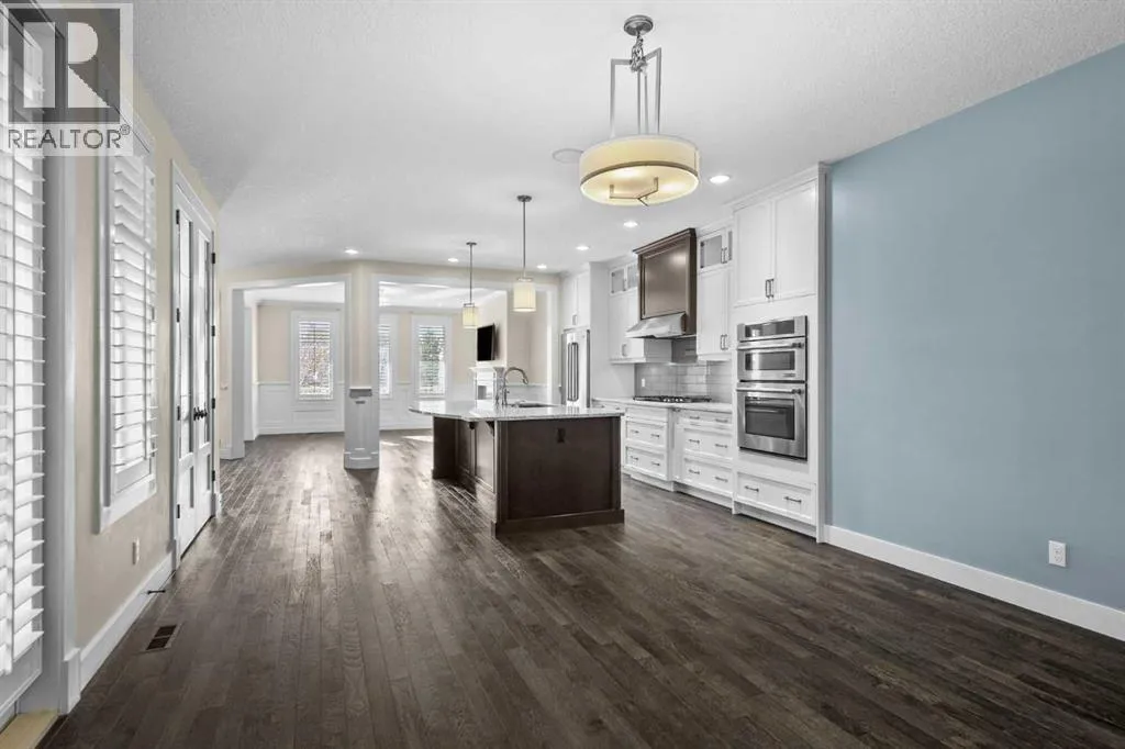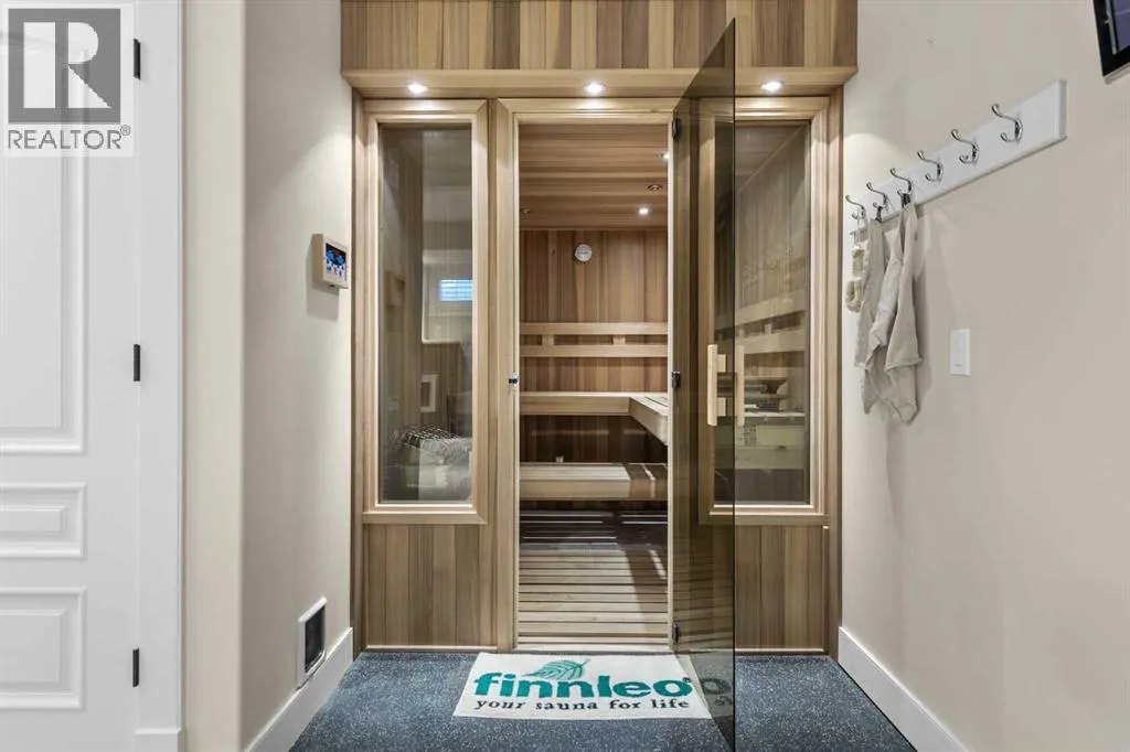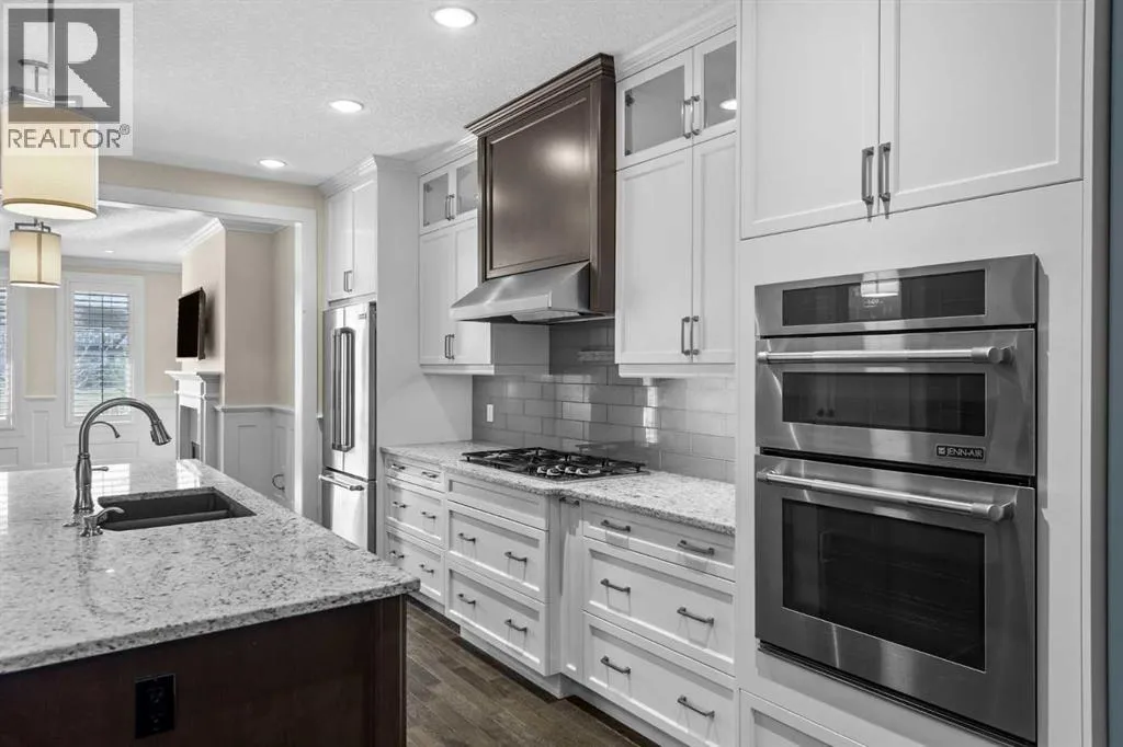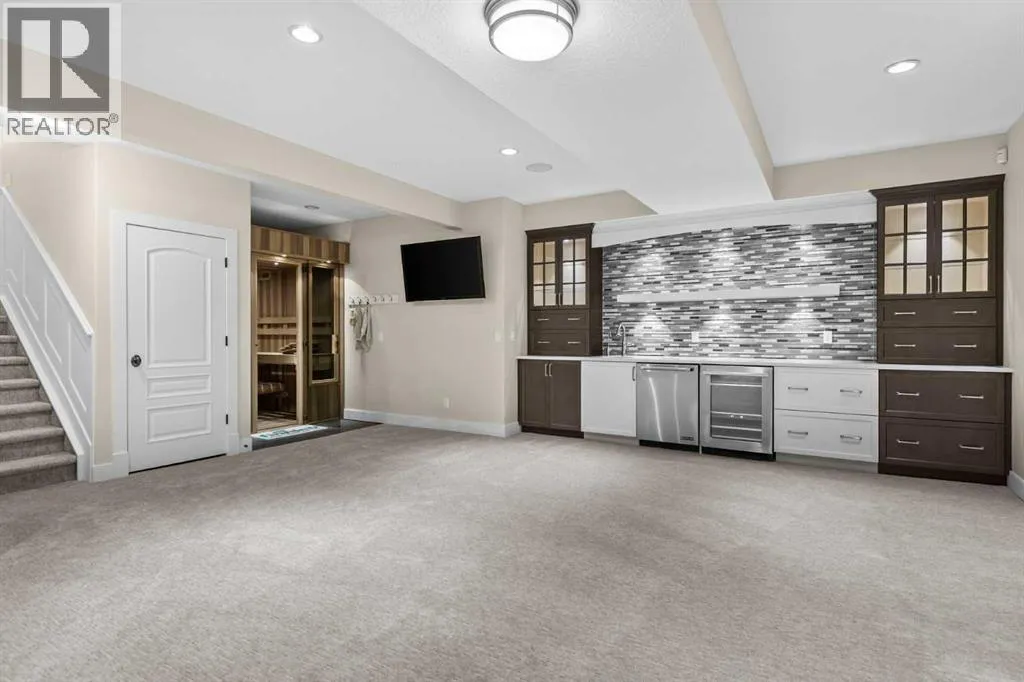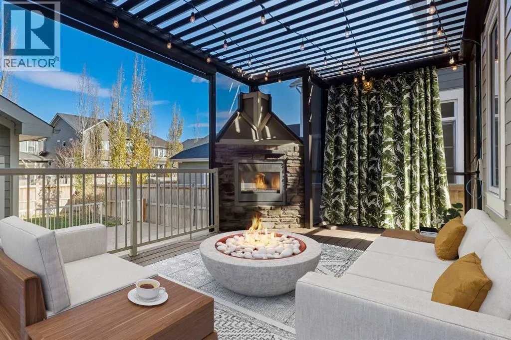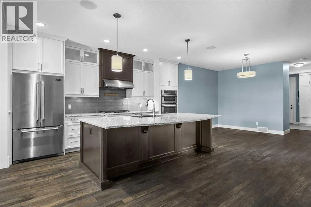 Welcome to this McKee Homes masterpiece, where refined design and traditional charm blend seamlessly in one of Airdrieâs most sought-after communities. Boasting nearly 4,000 sq. ft. of impeccably finished living space, this stunning home sits on a quiet street across from a picturesque green parkâthe perfect setting for family life.Step inside and experience the quality craftsmanship McKee Homes is known for. Soaring 10-foot ceilings, elegant crown moulding, and floor-to-ceiling windows create an airy sophistication, while rich hardwood floors and brand-new carpet bring warmth throughout.The chef-inspired kitchen is the heart of this home, featuring granite countertops, ceiling-height cabinetry, and premium JENNAIR appliances. A walk-in pantry with automatic lighting and tall shelving, plus a butlerâs coffee bar with a wine fridge, add both functionality and flair. Entertain effortlessly in the open-concept layout, or enjoy the flexibility of a formal dining room that doubles as a main floor office.Your backyard oasis awaits â designed for year-round enjoyment. The composite deck is maintenance-free, enhanced by a custom louvred roof, automatic sunshade, and a cozy gas fireplace. The two-tiered stamped concrete patio, irrigated garden beds, and private fenced green space make outdoor living a dream come true. With no neighbours behind and full privacy on both sides, itâs an exclusive retreat in the heart of the city.Upstairs, the sunlit bonus room offers two built-in workspaces â ideal for homework, music, or creativity. The spacious primary suite features a large walk-in closet and a spa-inspired 5-piece ensuite with heated tile floors. Two additional bedrooms, a stylish 4-piece bath, and a well-designed laundry room with storage and counter space complete the upper level.Downstairs, entertain in style with a custom wet bar, gas fireplace with reclaimed barn wood feature wall, and a dedicated gym that could easily be converted into a fourth bedroom. Need more space? A fifth bedroom is ready to be finished in the oversized storage area. Unwind in your private saunaâa luxurious bonus that elevates this home above the rest.The heated oversized attached garage features epoxy flooring, a built-in workshop, and room for all your gear. (id:27476)