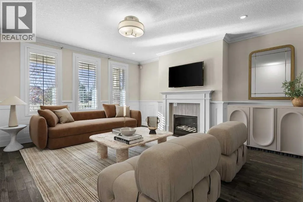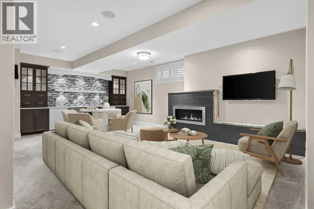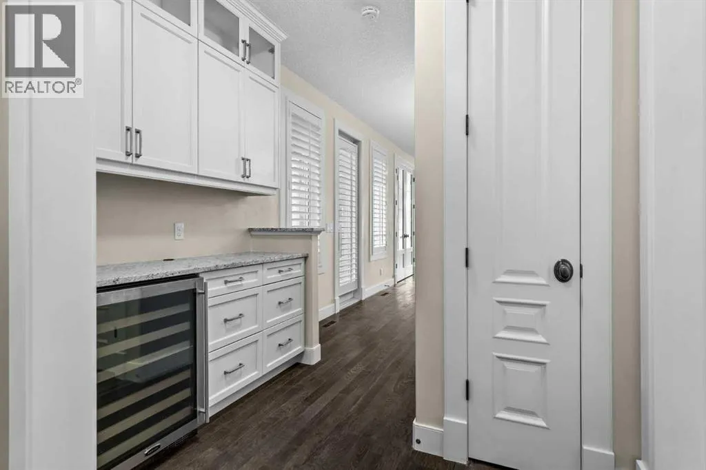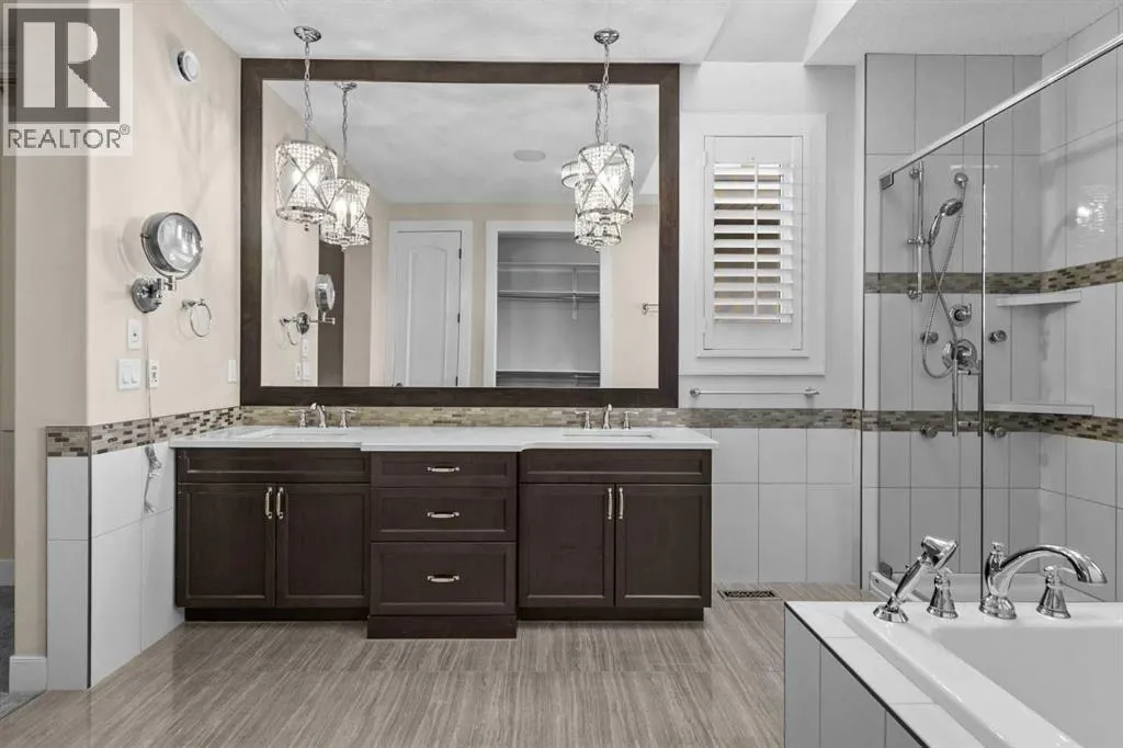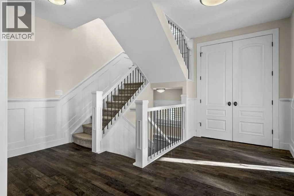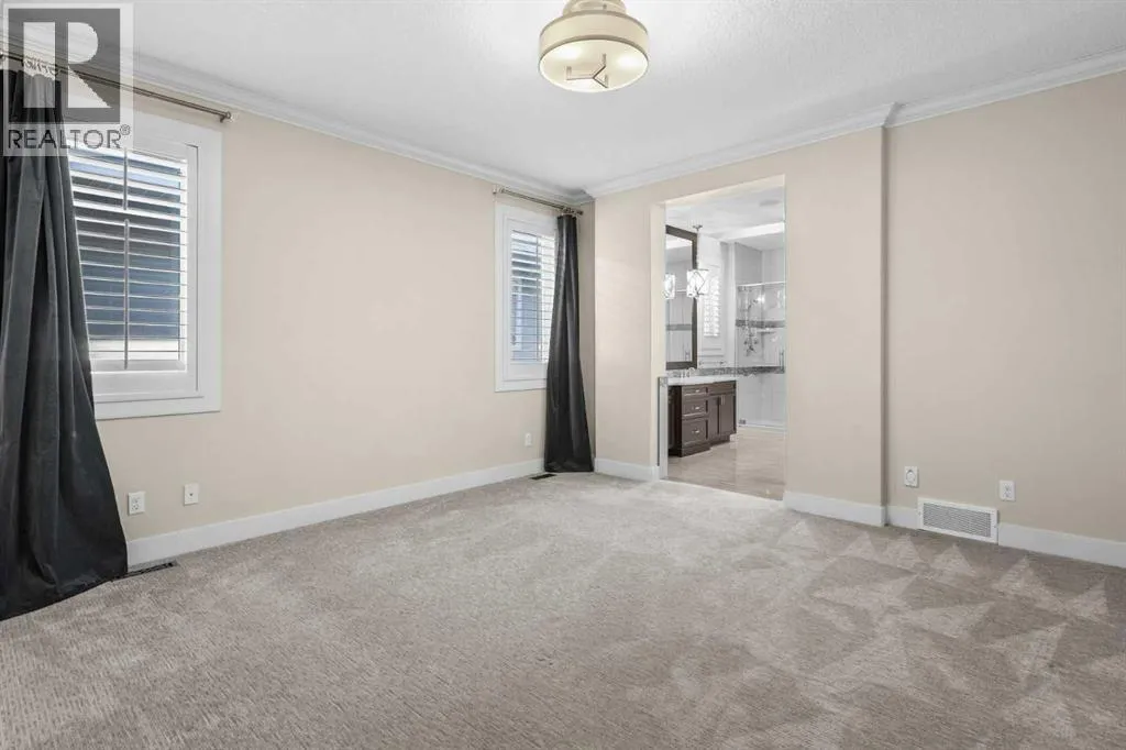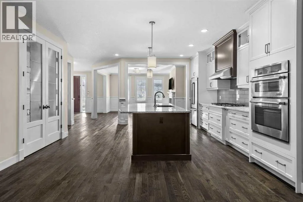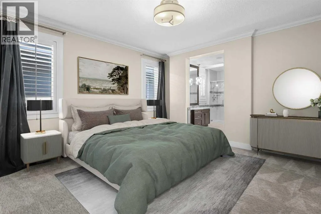 Welcome to this McKee Homes masterpiece, where refined design and traditional charm blend seamlessly in one of Airdrieâs most sought-after communities. Boasting nearly 4,000 sq. ft. of impeccably finished living space, this stunning home sits on a quiet street across from a picturesque green parkâthe perfect setting for family life.Step inside and experience the quality craftsmanship McKee Homes is known for. Soaring 10-foot ceilings, elegant crown moulding, and floor-to-ceiling windows create an airy sophistication, while rich hardwood floors and brand-new carpet bring warmth throughout.The chef-inspired kitchen is the heart of this home, featuring granite countertops, ceiling-height cabinetry, and premium JENNAIR appliances. A walk-in pantry with automatic lighting and tall shelving, plus a butlerâs coffee bar with a wine fridge, add both functionality and flair. Entertain effortlessly in the open-concept layout, or enjoy the flexibility of a formal dining room that doubles as a main floor office.Your backyard oasis awaits â designed for year-round enjoyment. The composite deck is maintenance-free, enhanced by a custom louvred roof, automatic sunshade, and a cozy gas fireplace. The two-tiered stamped concrete patio, irrigated garden beds, and private fenced green space make outdoor living a dream come true. With no neighbours behind and full privacy on both sides, itâs an exclusive retreat in the heart of the city.Upstairs, the sunlit bonus room offers two built-in workspaces â ideal for homework, music, or creativity. The spacious primary suite features a large walk-in closet and a spa-inspired 5-piece ensuite with heated tile floors. Two additional bedrooms, a stylish 4-piece bath, and a well-designed laundry room with storage and counter space complete the upper level.Downstairs, entertain in style with a custom wet bar, gas fireplace with reclaimed barn wood feature wall, and a dedicated gym that could easily be converted into a fourth bedroom. Need more space? A fifth bedroom is ready to be finished in the oversized storage area. Unwind in your private saunaâa luxurious bonus that elevates this home above the rest.The heated oversized attached garage features epoxy flooring, a built-in workshop, and room for all your gear. (id:27476)