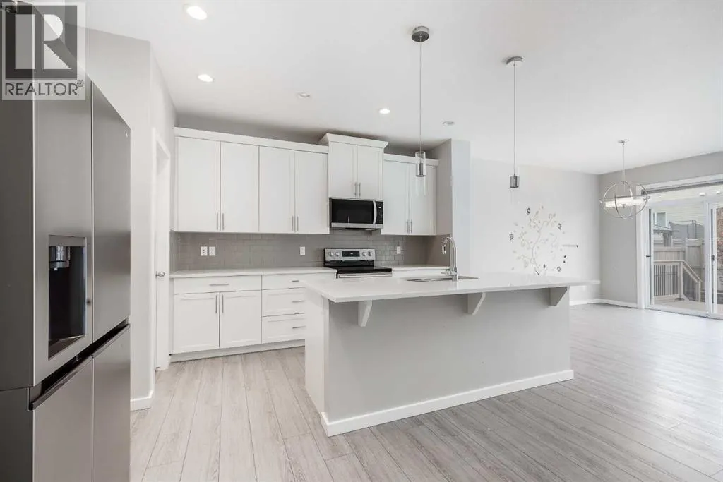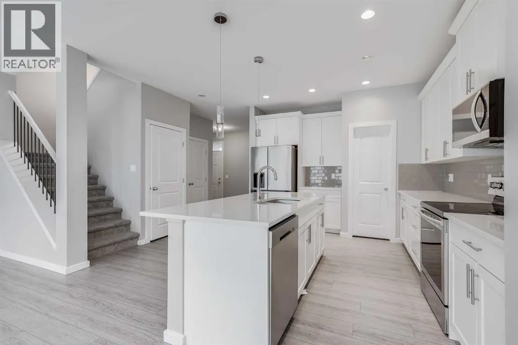 Welcome home to 511 Bayview Way SW, a bright and spacious two storey home offering over 2100 square feet of comfortable living in the beautiful community of Bayview in Airdrie. Step inside to an open main floor that features luxury vinyl plank flooring throughout and a modern layout designed for everyday living. The kitchen shines with matching stainless steel appliances, quartz countertops, a large island, and an abundance of cabinetry. The dining area flows effortlessly into a spacious living room with a contemporary electric fireplace and large windows that fill the home with natural light. Upstairs offers three generous bedrooms including a primary suite complete with walk in closet and full ensuite bath. A central bonus area provides extra space for a home office or family lounge. The upper level is finished off with a large laundry room and a second full bath.The basement is drywalled and insulated, ready for final finishing, and once complete will offer an additional bedroom, full bathroom, and entertainment space. Outside, the backyard is beautifully landscaped with a large deck, low maintenance artificial turf, and a stunning retaining wall, perfect for relaxing or entertaining. The double attached garage adds convenience and additional storage. This home needs some TLC including minor wall repairs, paint, and replacement of some missing hardware and has been priced accordingly. Located close to schools, parks, shopping, and Airdrieâs scenic pathways, this home is a smart opportunity for investors, renovators, or anyone looking for a quality home with future upside in a sought after community. Book your private viewing today. (id:27476)