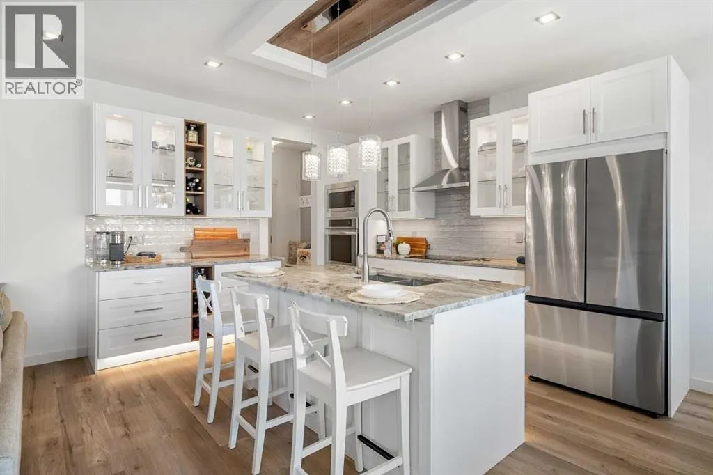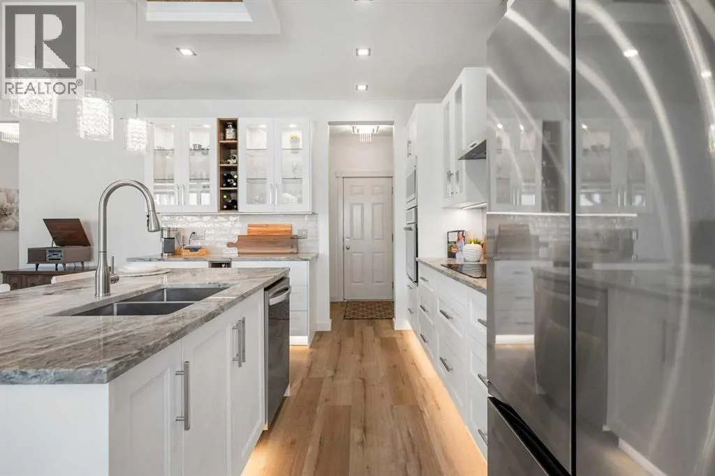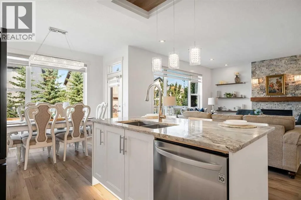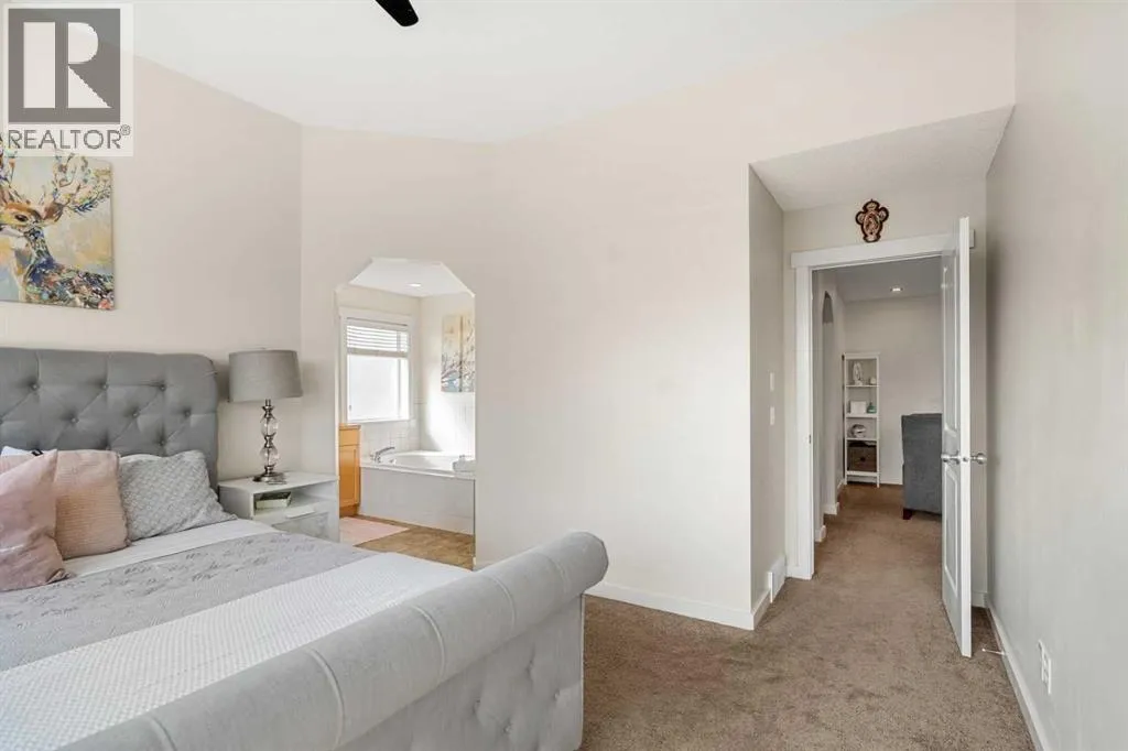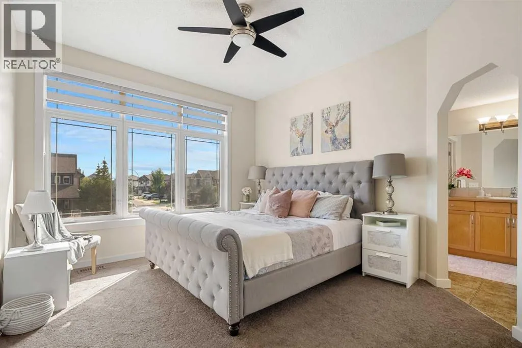 *OPEN HOUSE SAT NOVEMBER 8th 1-3PM* What a fantastic family home!! Nestled on one of the most sought-after streets in award-winning Cooperâs Crossing, this stunning home is designed to impress. Step inside and be greeted by a gorgeous, open foyer with soaring ceilings and a grand staircase as well as a main floor bedroom that easily fits a queen-sized bed and could be used as a home office or homeschool space. Before you enter the main living area you find a fabulous and well situated guest bath perfectly tucked away. The living space dramatically opens with 9FT ceilings, wide vinyl plank flooring, adjustable LED pot lights and chandeiler, and oversized windows with custom blinds, all allowing for plenty of light.The heart of the home is the fully renovated chefâs kitchen, featuring a built-in oven, microwave, and stovetop with a chimney hood fan, and elegant white cabinetry with glass panels and custom lighting â even inside the cabinets and along the toe-kicks for a dramatic evening glow. A fantastic walk-in pantry and functional mudroom with a deep freezer off the heated garage keeps everything organized and out of sight. The dining area comfortably seats eight, framed by picture windows with beautiful views of the backyard, while the living room invites you to gather around the striking floor-to-ceiling stone fireplace. Built-in shelving with power outlets flanks the fireplace, ready for your favorite décor or media setup.Upstairs has an air of sophistication with a lovely family room that overlooks the foyer â the perfect place for cozy movie nights. Architectural detail and arched doorways add a level of sophistication. The king-sized primary suite is a true retreat with its large windows, spa-like ensuite with maple cabinets, a soaker tub, walk-in glass shower, private water closet, and a sun-filled walk-in closet with its own window. Two additional well-sized bedrooms share a conveniently located main bath, and the laundry room â also with a window â is up stairs where you need it most.The unfinished basement is a blank canvas with plenty of space for two large bedrooms. Outside, the deck overlooks a large backyard â ideal for entertaining, gardening, or watching the kids play. The oversized heated garage boasts excellent storage, a new extra-tall garage door for trucks or vans, and there is LED exterior lighting for curb appeal and security.Living in Cooperâs Crossing means youâre part of Airdrieâs most celebrated community â voted Best Neighbourhood year after year â with its abundance of parks, playgrounds, pathways, and nearby schools. Add in the safe, welcoming atmosphere and this home truly has it all. (id:27476)