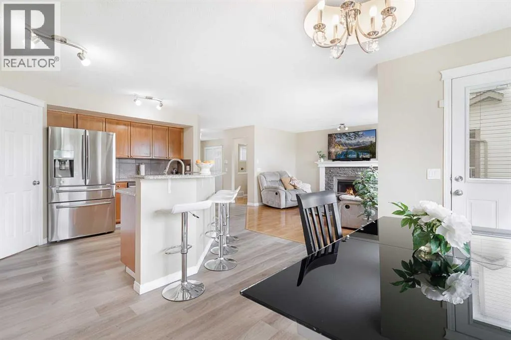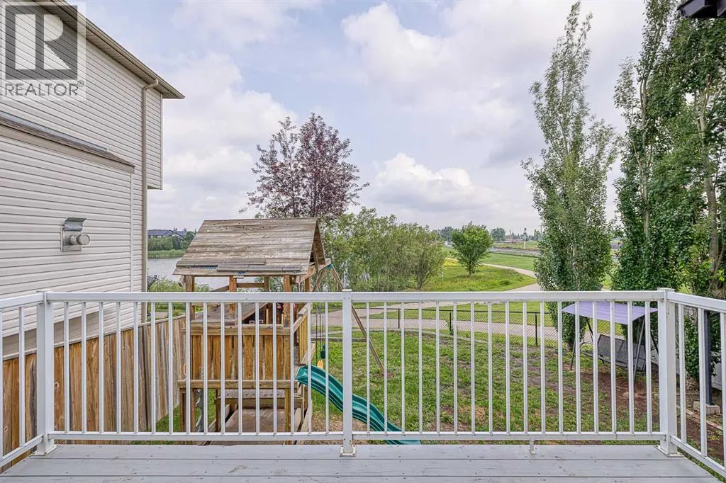 Welcome to this beautiful 5 bedroom, 3.5 bathroom home in the highly desired community of Morningside, perfectly positioned at the end of a quiet cul de sac. This property backs onto the pond and pathway system, offering peaceful views, incredible privacy, and direct access to scenic walking and biking trails right from your backyard.With over 2,800 sq ft of fully developed living space, this home is designed for both comfort and functionality. The main floor features brand new flooring, an open concept layout, and a welcoming living room with a cozy gas fireplace. Large windows along the back of the home bring in an abundance of natural light while showcasing the tranquil pond setting. The spacious kitchen is ideal for cooking and entertaining with granite countertops, stainless steel appliances, a walk through pantry, and plenty of cabinet space. Step out onto the deck to enjoy morning coffee or unwind while taking in the water views and quiet surroundings.Upstairs you will find five generous bedrooms, perfect for large families, guests, or home office needs. The primary bedroom offers relaxing pond views, a four piece ensuite, and a walk in closet. The remaining bedrooms are well sized and share a bright full bathroom.The fully finished basement adds even more living options with a large recreation room, a flexible space for a gym or office, a full bathroom, and a rare walk up basement with a separate entrance. This setup is ideal for extended family, teens or guests.Outside, the fenced yard opens directly onto the pathway network and pond, creating an unbeatable lifestyle setting for walking, running, cycling, or simply enjoying nature. Situated on a corner lot with no neighbors on one side, this home offers outstanding privacy. An oversized driveway provides excellent parking for multiple vehicles.Located just minutes from schools, parks, shopping, and all amenities, this move in ready home combines space, comfort, and one of the best locations in Mor ningside. A perfect fit for families wanting room to grow while enjoying the rare benefit of backing onto the pond. (id:27476)