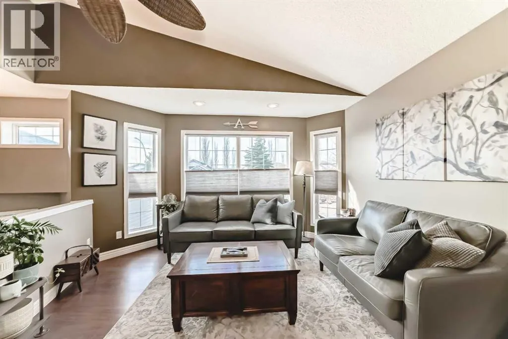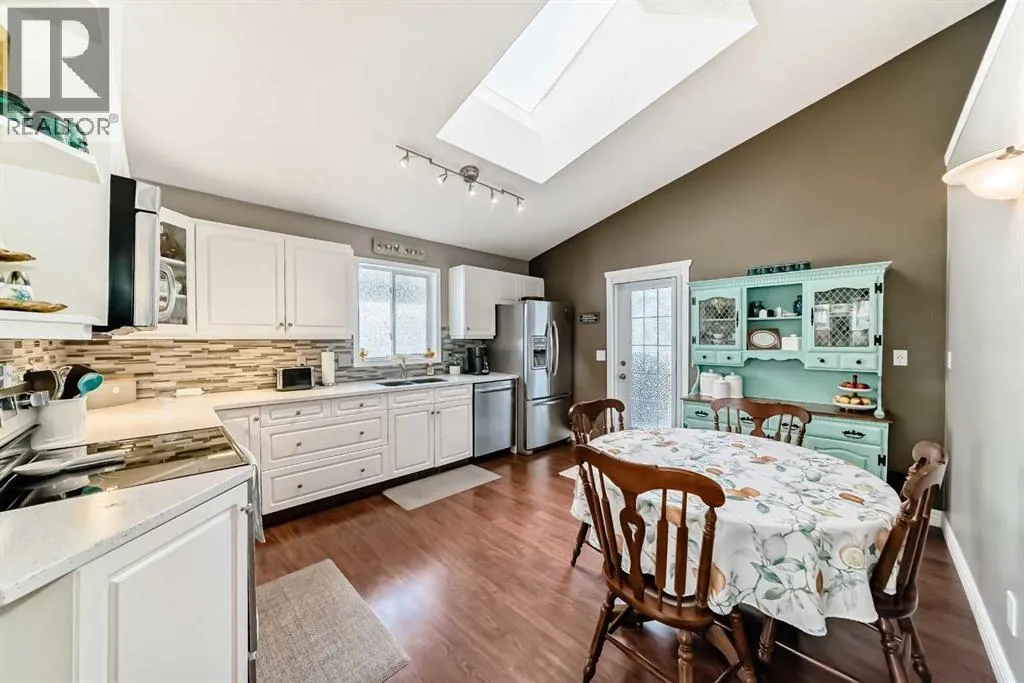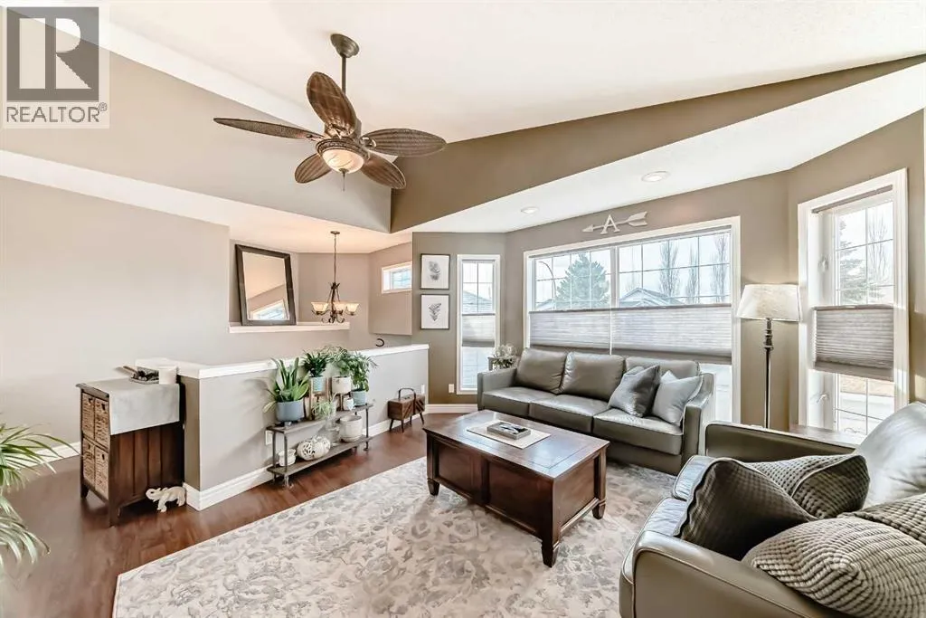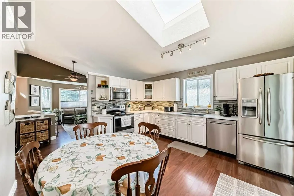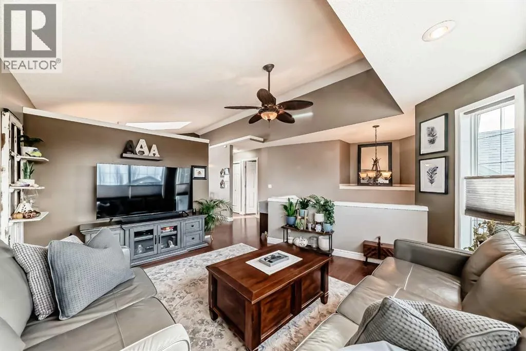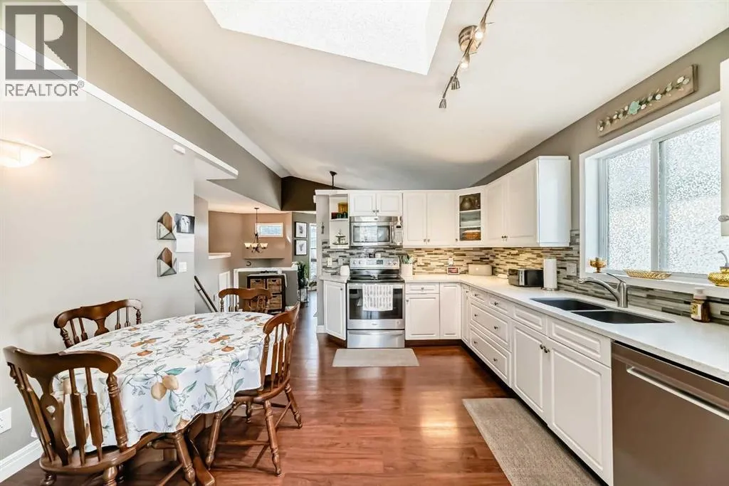 Welcome to this spacious and stylish fully developed bilevel home offering nearly 2,000 sq. ft. of comfortable living space in the highly desirable Sunridge community that is within walking distance to the tri-schools and where homes rarely come to market. Step inside to an inviting open-concept main floor featuring vaulted ceilings, high-grade laminate flooring, and a bright kitchen with skylight and generous eating area. The primary bedroom includes a walk-in closet and a convenient 2-piece ensuite, with an additional generous-sized bedroom completing the main level. The bright, open basement is perfect for relaxing or entertaining, offering a cozy family room and flex space with a gas fireplace, plus a large additional bedroom, full bathroom, and plenty of storage. Enjoy the beautifully landscaped yard, designed for privacy with mature trees and shrubs, along with upper and a lower private deck â ideal for outdoor gatherings. Additional highlights include a double attached garage (insulated and roughed-in for heat), solar panels for lower utility costs, and air conditioning to keep you cool in summer. With a newer furnace and hot water tank, this home has been updated top to bottom, inside and out â ready for you to move in and enjoy. (id:27476)