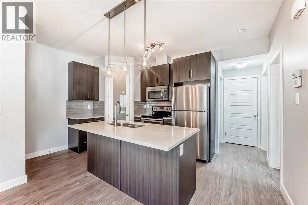 Arguably one of the best locations in the complex with a green space in front of the unit with your private patio facing it. Having this space and being at the SE corner of this quiet complex has given this unit extra privacy with nobody looking in, also this ground level unit has no units below. Lower condo fees at $379.78 (includes gas and water) and TWO PARKING STALLS! One is assigned and one is titled (#1213 & #87). Home has been freshly painted Nov 2025, baseboards were replaced in 2024 and Bosch dishwasher Oct 2025. Open concept living, kitchen has stainless steel appliances, quartz counters, corner pantry & island with an eat up bar. 9 foot ceilings and durable LVP through out entire unit. Livingroom would fit a big sectional and entertainment set up nicely. Dining area has room for a table and hutch and to the side there is a storage room. Stacked laundry down the hall. Two good sized bedrooms, master has a 3 pc ensuite and a walk in closet. 4 Pc main bath with a tub and shower combo, all bathrooms have matching quartz to the kitchen. This unit has a very thoughtful lay out and a location that can't be beat. A quick possession and move in ready! Pets allowed with board approval. (id:27476)
