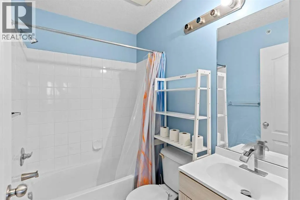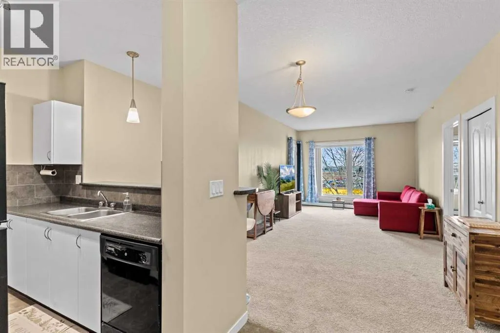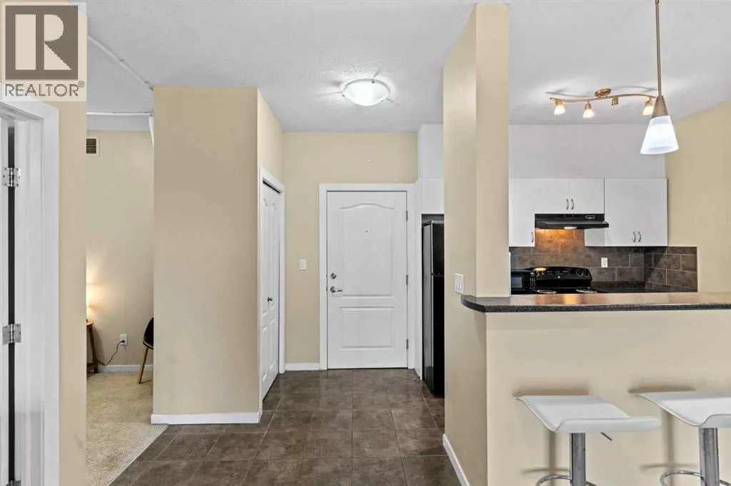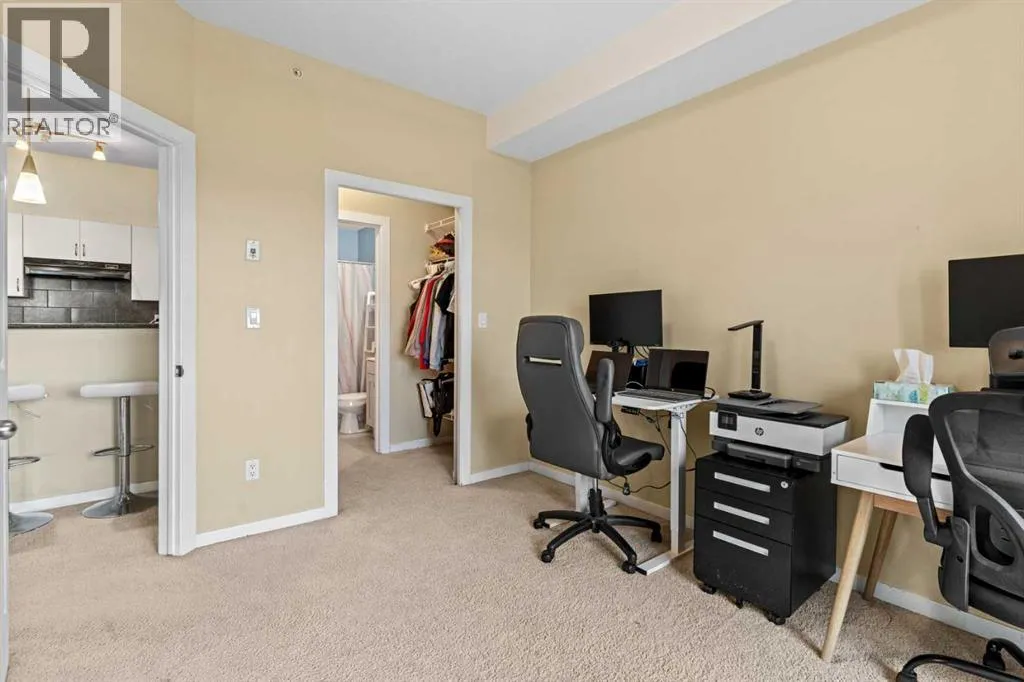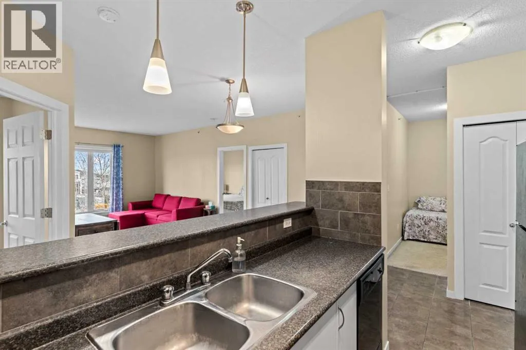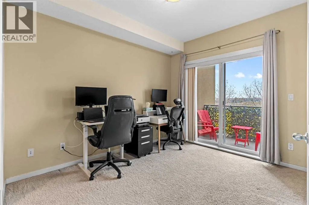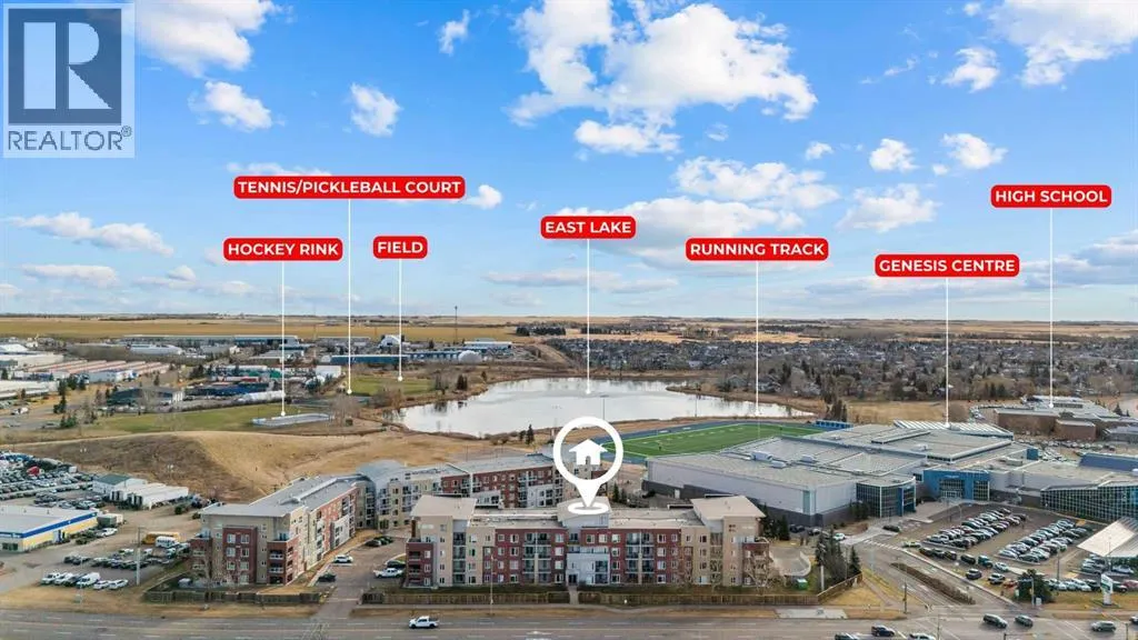 The calm, the light, the sense of space. This is top-floor living done right. Sunlight pours through large west-facing windows, highlighting an open floor plan thatâs all about comfort.The kitchen anchors the space with a large eating bar, perfect for morning coffee or catching up with friends over dinner. From here, the layout opens seamlessly to the living area â bright, inviting, and surrounded by mature trees that give a sense of privacy rarely found in condo living. Step out onto your private balcony and take in the uninterrupted west-facing mountain views â your own little escape from the city below.This home offers two generous bedrooms, two full bathrooms, and a flexible den ideal for a home office, guest room, reading nook, or creative space. The primary suite features a walk-through closet and a private ensuite, while in-suite laundry keeps life simple and efficient.You'll love the details that make everyday living easier â titled heated underground parking, bike storage, a welcoming lobby, and plenty of visitor parking for guests.And then thereâs the location: steps from the Genesis Centre, East Lakeâs scenic walking paths, greenspace, and sports fields. Youâre minutes from shopping, dining, schools, and yes â a Tim Hortons right across the street. With direct access to Highway 2 and public transit nearby, this home keeps you connected to Calgary while offering the comfort of a quiet, established community. (id:27476)