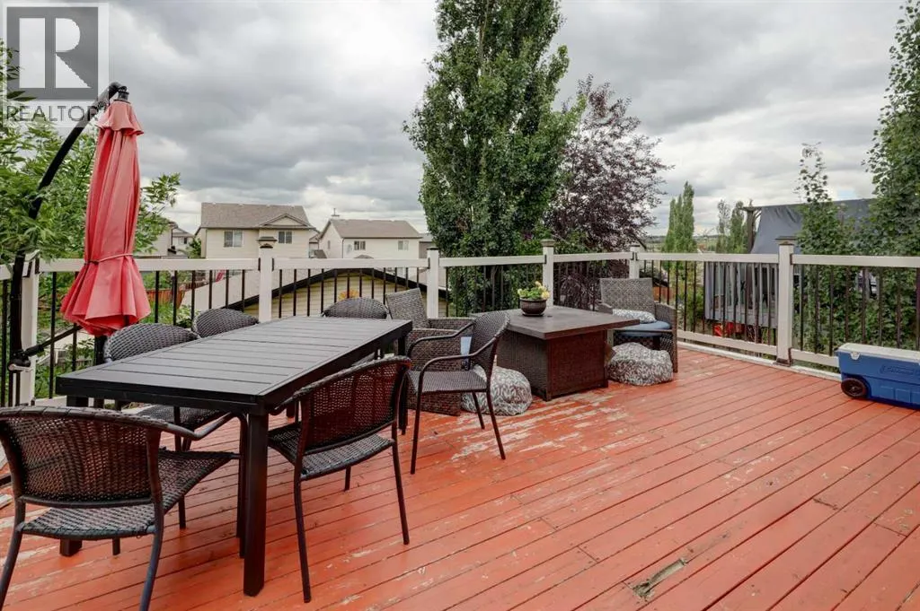 HOME SWEET HOME! INCREDIBLE VALUE for buyers and investors alike! Welcome to this exquisite, fully developed 2 STOREY WALKOUT FAMILY HOME with a fully finished basement and a double detached garage in the beautiful, coveted community of Morningside in Airdrie. This amazing home offers 3 bedrooms, 3.5 bathrooms and 1,973 modern SQFT of living space throughout. As you enter this home you will find the spacious foyer open to the living room with large windows providing plenty of natural light. The kitchen features an island with a raised eating bar, corner pantry and ample counter space for all your cooking needs. The dining area overlooks the large deck and is perfect for summer BBQâs. Upstairs, you will find the generous primary bedroom complete with a walk in closet and 4 piece en suite. Two well sized bedrooms and a 4 piece main bathroom complete the upper level. As you move down to the finished basement you will find a large recreation room to customize for your entertainment needs, a 4 piece bathroom and additional storage and a laundry room. The back yard has enough space to create your own private oasis to enjoy with mature trees and a double detached garage. The community of Morningside is conveniently located with ease of access to schools, parks, shopping, dining, and the QE2. Donât miss out on this GEM, book your private viewing today! (id:27476)