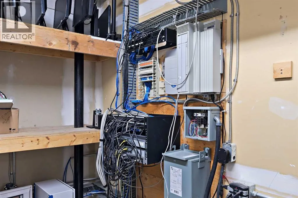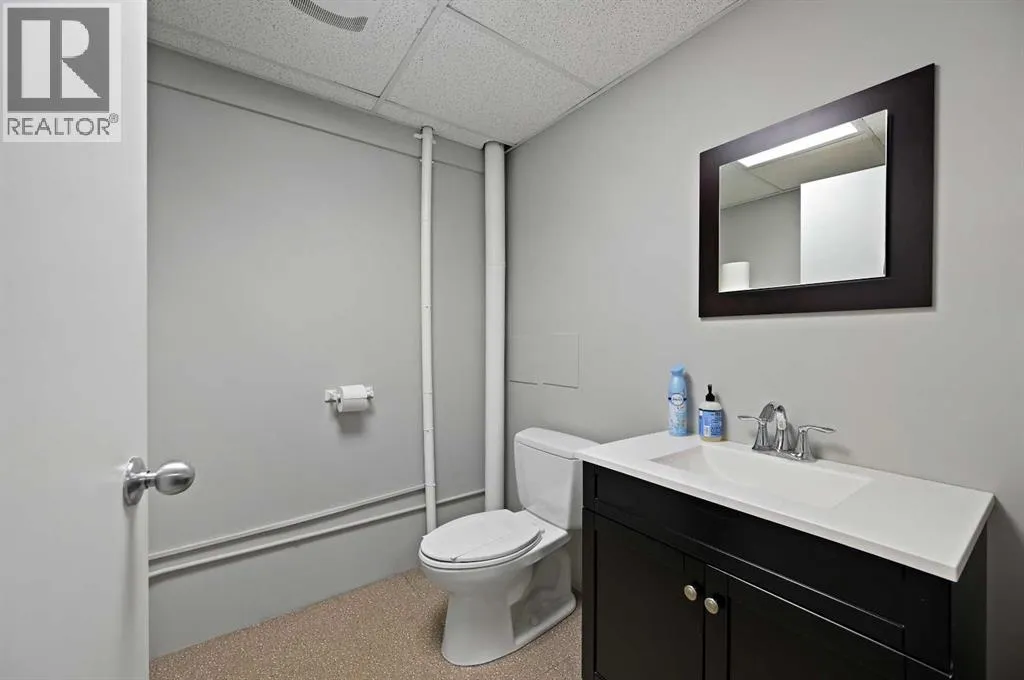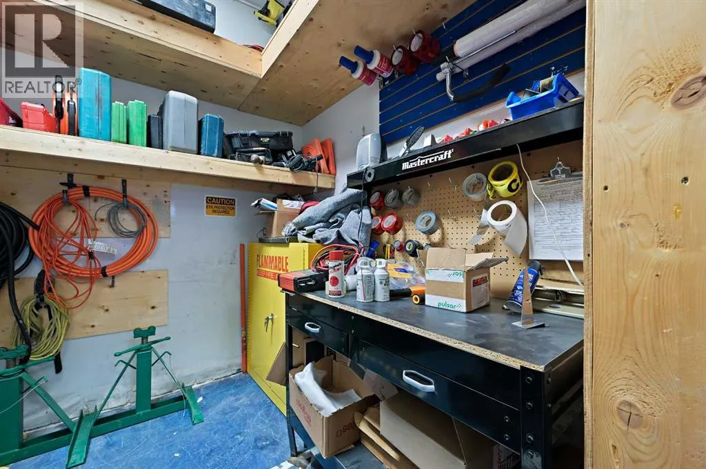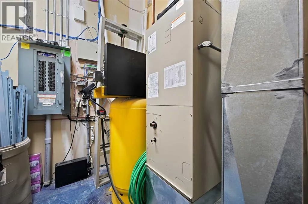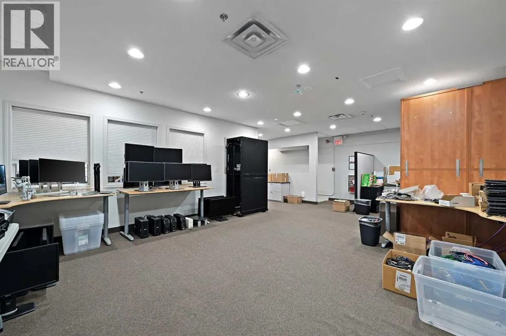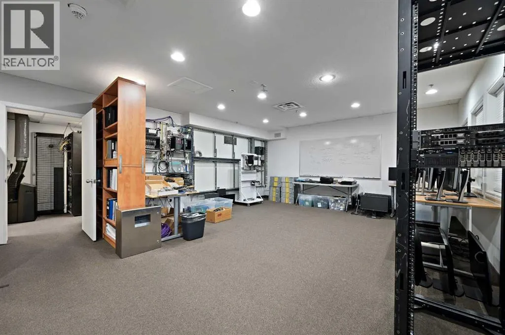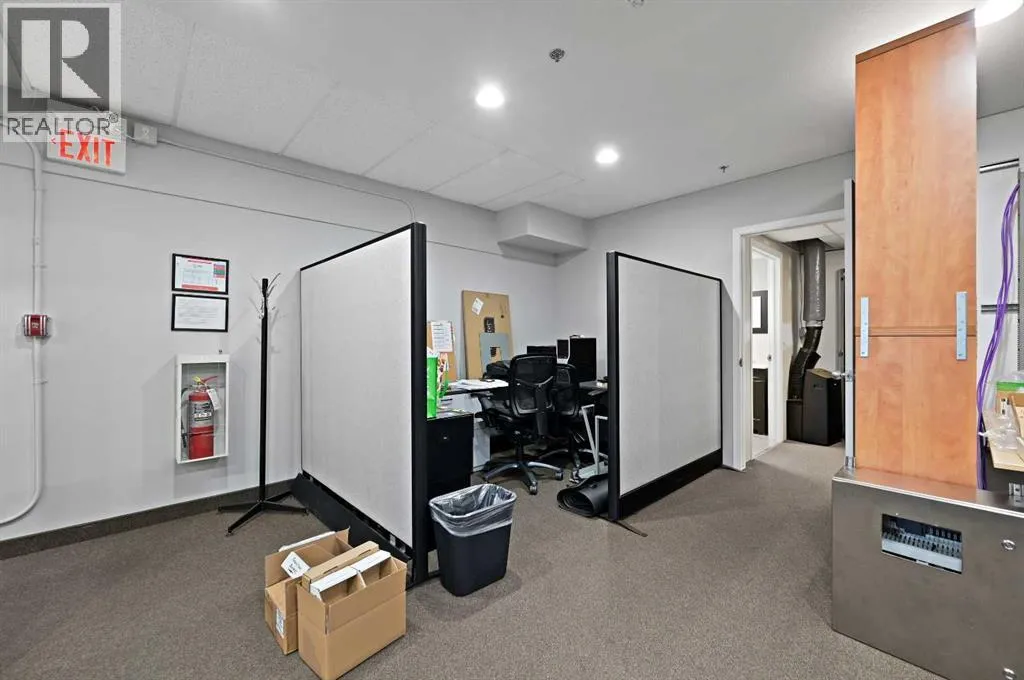 Commercial condos of this type are rare to find on the market in Airdrie. The unit is within the Kingsview Plaza, with excellent access to 40th Ave, Deerfoot Trail, Kingsview Market and Yankee Valley Blvd. The zoning is IB-1 for a variety of businesses, including business services, some retail and industrial services, animal services, microbrewery, health care and more. The condo includes 3,110 sq. ft. on 2 levels, consisting of a 570 sq. ft. shop / warehouse, reception, office, kitchen, bathroom and storage on the main level. The shop has 15 ft. clear height. The air conditioned second level is well designed offices and open area perfect for training plus a second bathroom. Loading is via a grade level 10 x 14 overhead door plus office entrance. Don't need both levels? - the second level can be easily secured from the main level for rental income. With assigned parking at the door and plenty of scramble parking, there is room for everyone. The rolling shelving system in the shop is available as a separate sale. (id:27476)