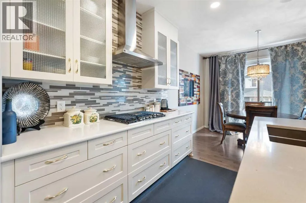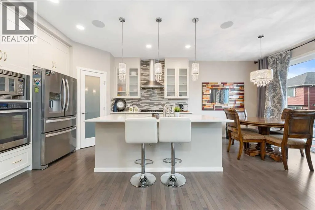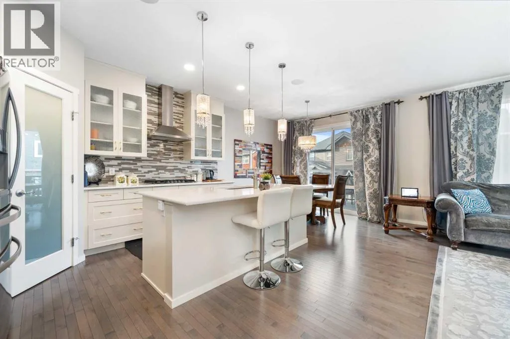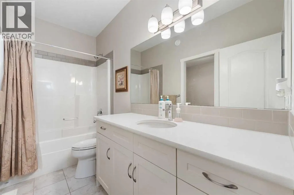 UPGRADED 2-STOREY ON A SUNSHINE LOT W/ BONUS ROOM & ILLEGAL BSMT SUITE IN AIRDRIEâS KINGS HEIGHTS! Sitting on a peaceful Airdrie street, this Homes by Avi two-storey stands out with its' warm modern Craftsman exterior. Set on a Sunshine Lot, which means bigger basement windows and beautiful natural light on every level. Thoughtful, designer upgrades make daily living feel elegant and pride of ownership has kept the home in tip-top shape! Inside, the open concept main floor is a welcoming living room anchored by a stone-faced gas fireplace, dining area that can comfortably fit a 6-8 person table, and a gourmet chefâs kitchen. The kitchen is home to a gas cooktop with chimney hood, built-in wall oven, full-height mosaic tile, Quartz counters, kitchen island, and corner pantry all set over hardwood floors that run throughout the main level. A versatile MAIN-FLOOR bedroom has its own en-suite 4-piece bath. This extra main floor room is perfect for elderly parents or office space. Upstairs, our first stop is the vaulted bonus room perfect for movie nights, homework, or play. On the opposite end of the upper floor is a large master bedroom with a walk-in closet and a 5-piece bathroom. The ensuite is a spa oasis that features dual sinks, deep soaker tub, and glass shower with seat. Two additional bedrooms share a 4-piece bath, and the convenience of upper-floor laundry keeps chores simple. The basement can be used as a mortgage helper thanks to an illegal suite. Complete with its own separate side entrance, bright living area, sleek kitchen with full-size appliances, a generously-sized bedroom, and a full 4-piece bath. Plus separate washer/dryer and separate electric baseboard heating means completely separate living within each suite. Outside, there is a durable and low maintenance composite deck with glass risers, stepping down to a fully fenced, easy-to-maintain yard with stone paths, a pergola, and synthetic turf for year-round green. An attached double garage and wide driveway handle parking and storage with ease, and the tidy Craftsman curb appeal ties it all together. Set on a quiet street in Kings Heights, this home has quick access to parks, pathways, 2 nearby schools, and everyday shopping at the Yankee Valley Crossing Shopping Plaza, the Kingsview Plaza & Sierra Springs Plaza. Access to the rest of the city and Calgary is easy through several nearby major roadways including Deerfoot Trail, Yankee Valley Blvd & Kingsview Blvd. Jumping in the car: Downtown Calgary is a 23 min drive (29.8KM), Calgary Airport is a 16 min drive (18.8KM), & Banff is a 1 hr 31 min drive (145KM). (id:27476)