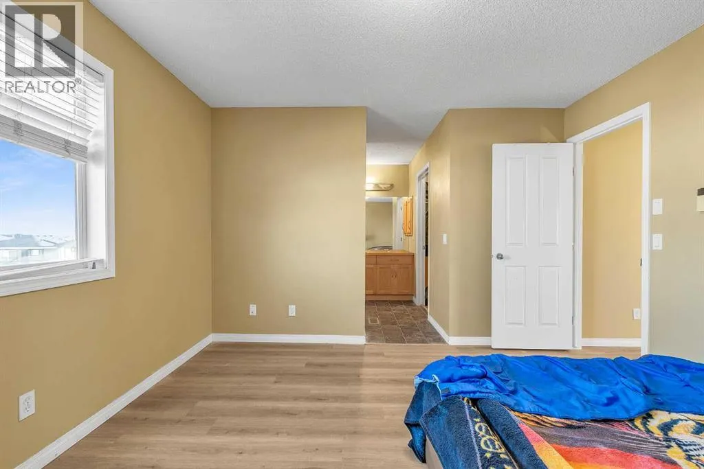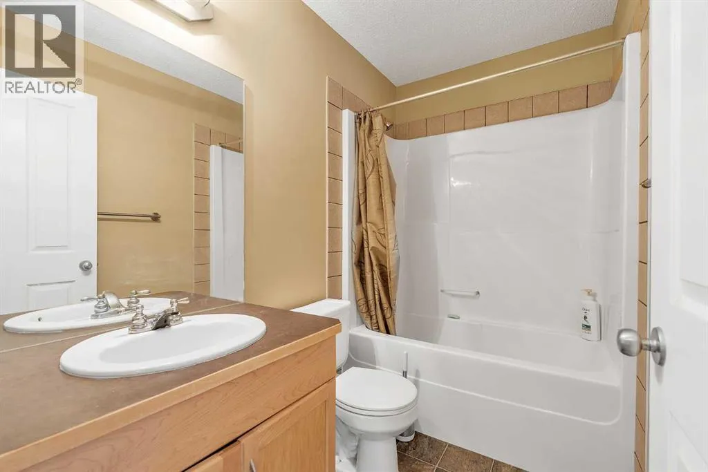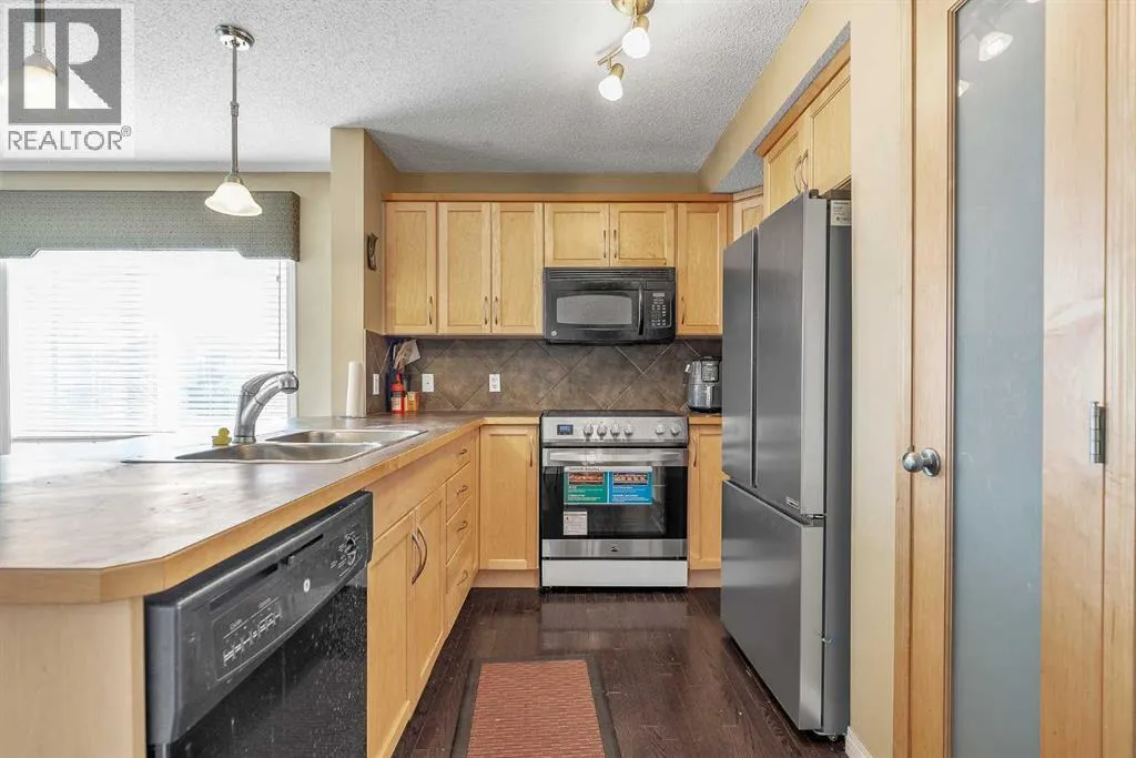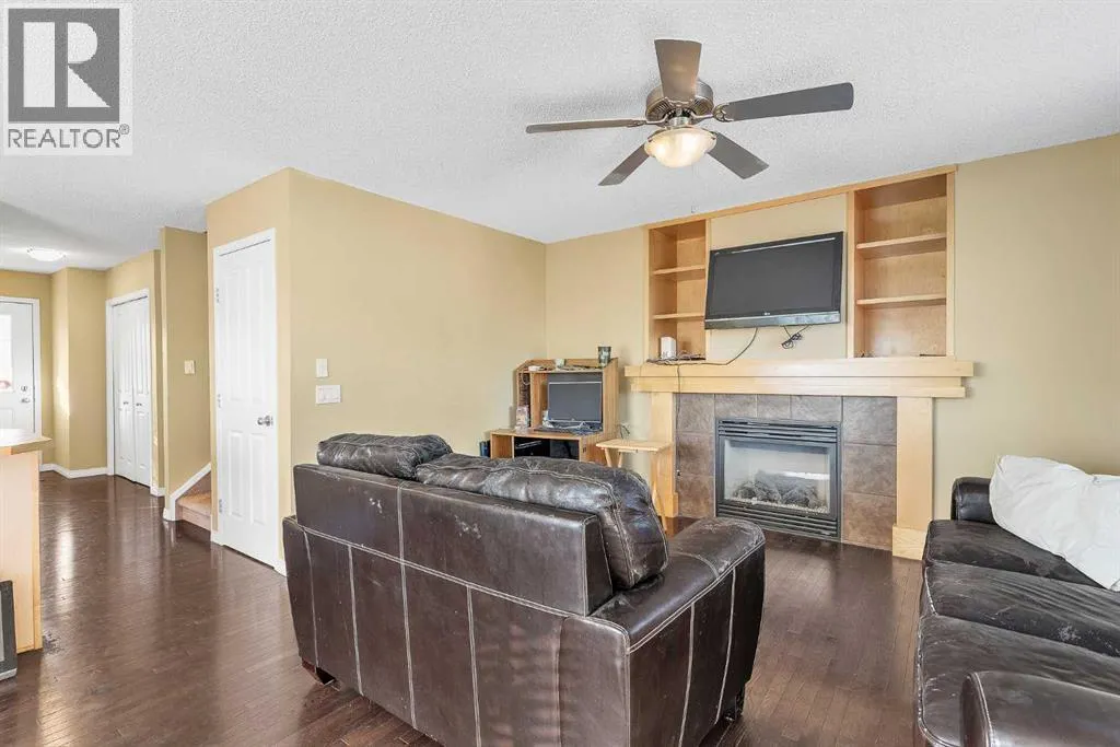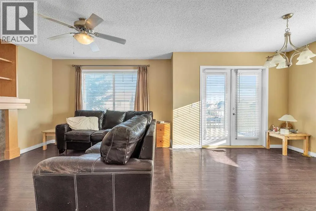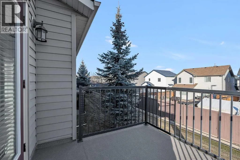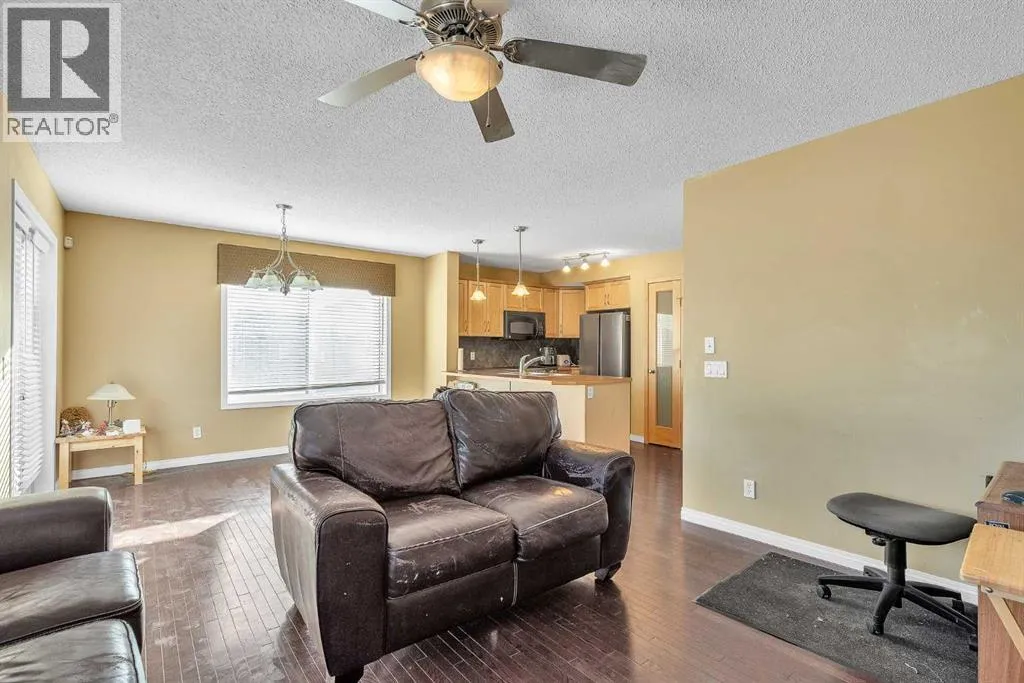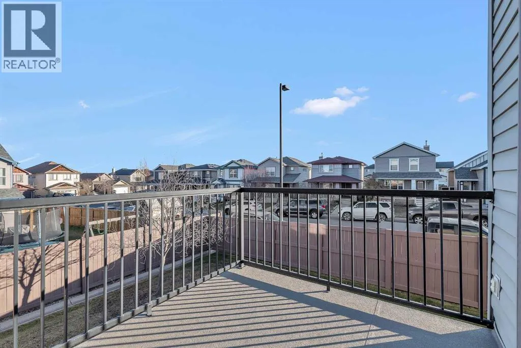 This remarkable former show home truly checks ALL the boxes â style, comfort, and value!As you arrive at this beautifully maintained complex, youâll immediately notice the pride of ownership throughout. The property management team takes exceptional care of the community â from the well-kept roads and lush lawns to the mature trees and pristine building exteriors.Step inside and youâll be welcomed by a bright, open-concept floor plan perfect for family living and entertaining. The dining area easily accommodates large gatherings, while the private balcony overlooking a peaceful greenbelt offers the ideal spot for morning coffee or evening relaxation. The living room provides a warm and inviting space for everyone to unwind.To your right upon entry, youâll find a versatile office or den, perfect for working from home. A pristine half-bath nearby ensures guests feel right at home.Upstairs, the primary suite is a true retreat, featuring a walk-in closet and a brilliant ensuite bathroom. Two additional bedrooms and a 4-piece main bath complete the upper level. Enjoy brand-new laminate flooring upstairs, new carpet on the stairway, and all new appliances â refrigerator, stove, dishwasher, and washer/dryer â throughout the home!The walkout basement offers incredible flexibility, with its own entry leading to a lush green space. Bright and airy, this lower level can serve as a separate living area, rec room, or guest suite â the possibilities are endless. Step out to the third patio area and relax in your own sun-filled oasis.An attached garage with a new door opener provides secure parking and additional storage.Located in the highly sought-after Sagewood community of Airdrie, this home offers the perfect blend of tranquility and convenience. Youâll love the scenic pathways, reservoirs, creeks, and parks, all just steps away. Plus, enjoy easy access to shopping, schools, golf, and major routes:â¢15 minutes to CrossIron Mills Mallâ¢Less than 20 minutes to YYC Airp ortâ¢5 minutes to Woodside Golf Courseâ¢A short stroll to C.W. Perry SchoolDonât miss your chance to own this stunning home â book your private showing today before itâs gone! (id:27476)