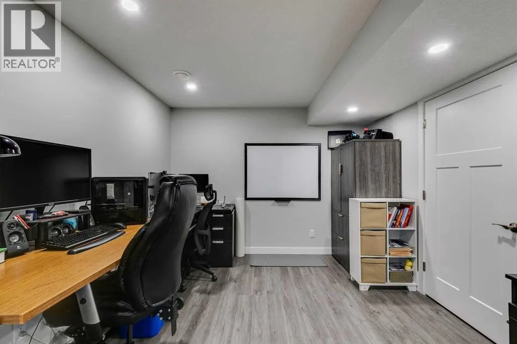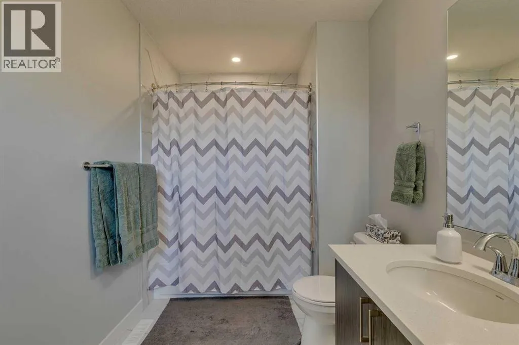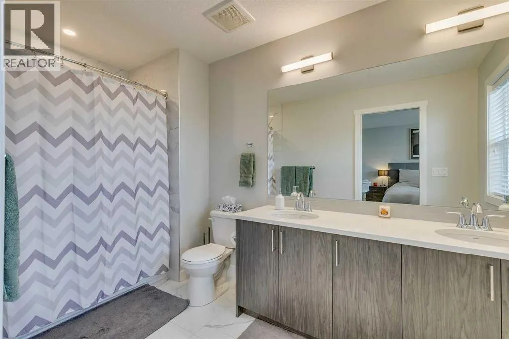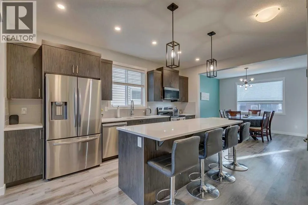 OPEN HOUSE SAT NOV 15 1-3PM. Fully upgraded and lovingly maintained, this home features NINE foot ceilings (main floor), quartz countertops throughout and a side entry to the fully developed basement which features a cozy family room with wet bar, a den/office, a bedroom, 4-piece bathroom and could be easily modified to make a fully self-contained suite. You will love the open concept main floor plan. Upstairs, the master bedroom has a spacious ensuite, walk in closet and the additional bedrooms are big enough for your growing family. The home features a SOLAR energy system and CENTRAL A/C! The sunny SOUTH-facing deck and back yard rounds out this perfect home. Enjoy the convenience of your OVERSIZED detached double garage featuring HEAT AND COOLING and a separate panel. Located in Airdrieâs desirable South end, youâre just STEPS from Northcott Prairie School, parks, tennis and basketball courts, and an off-leash dog park. Quick access to Calgary makes commuting simple, while everything you need is right at your doorstep. (id:27476)