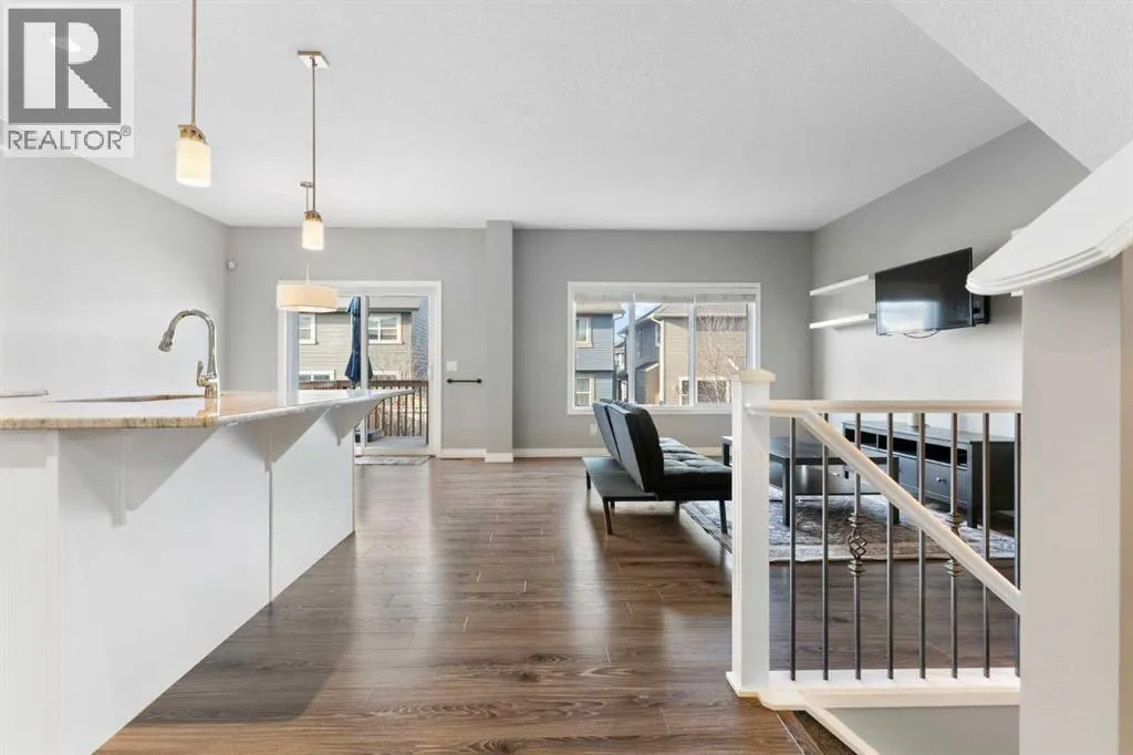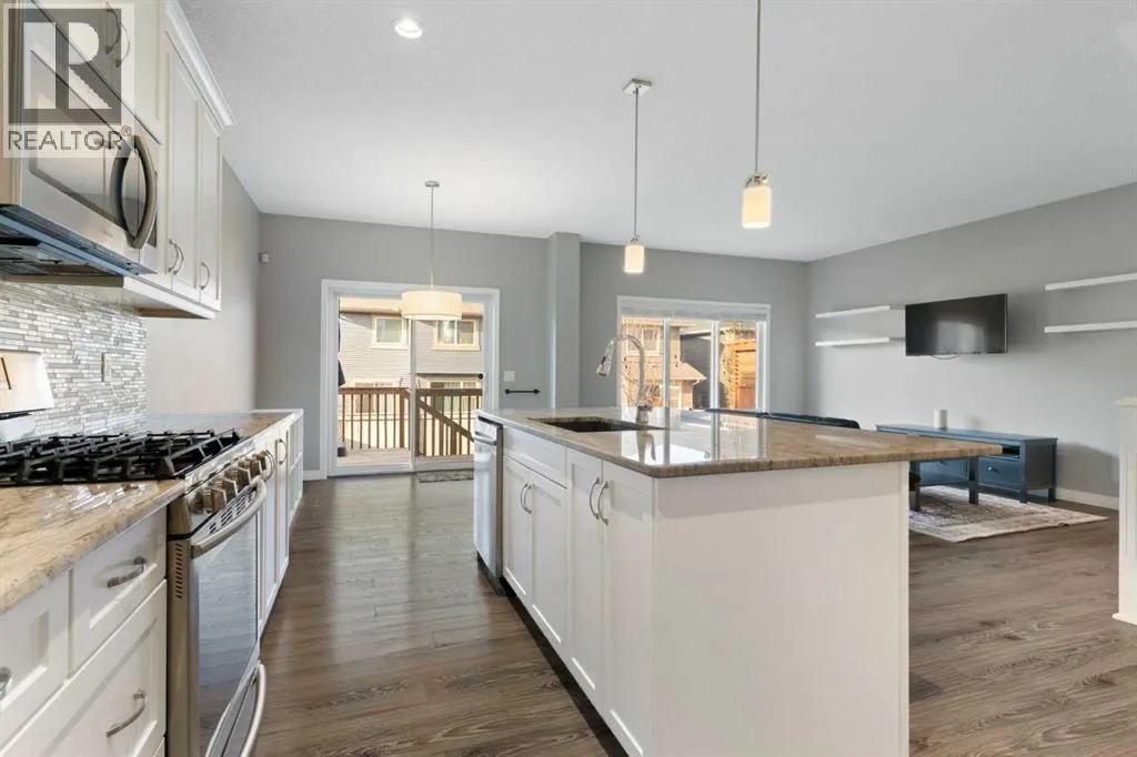 **MOVE IN READY, LIKE NEW** Welcome to your new home in the heart of King's Heights, one of Airdrieâs desirable family friendly communities! Come Fall in love with this stunning, fully finished detached home with over 1,800 square feet of well-maintained living and a fully developed basement. As you step through the front door you are greeted with lots of natural light and laminate flooring throughout. The living room and adjourning dining room provide an inviting open layout that look onto the back deck and fully fenced yard. At the heart of the home is the well-appointed modern WHITE kitchen, featuring stainless steel appliances, gleaming GRANITE countertops, a large central island, tile backsplash, ample cabinetry and walk-in pantry. The home features three well-sized bedrooms, including a primary retreat with a spacious walk-in closet and a full 5-piece ensuite bathroom, boasting dual sinks, a separate shower and a soaker tub . The upper level includes a generous bonus room which is ideal for a playroom, visiting guest, extended family or a home office. Additionally, for your convenience the laundry room is located upstairs with extra storage space. Relax and entertain in the spacious fully finished basement, great for recreation space or media room, well equipped with built-in speakers and a wet bar with a beverage cooler, fantastic for family movie/game nights, out-of-town guests or entertaining friends. Outdoor backyard offers lots of room for family BBQs, playtime, extra storage and camp fires. In the well-planned community of Kingâs Heights you will have access to nearby schools, parks, ponds, walking paths and an amphitheatre while also having the convenience of Kingsview Market shopping centre only steps away. This home is a perfect balance of style and comfort. Donât wait, schedule your private viewing today to experience the ultimate living in Airdrie. (id:27476)
