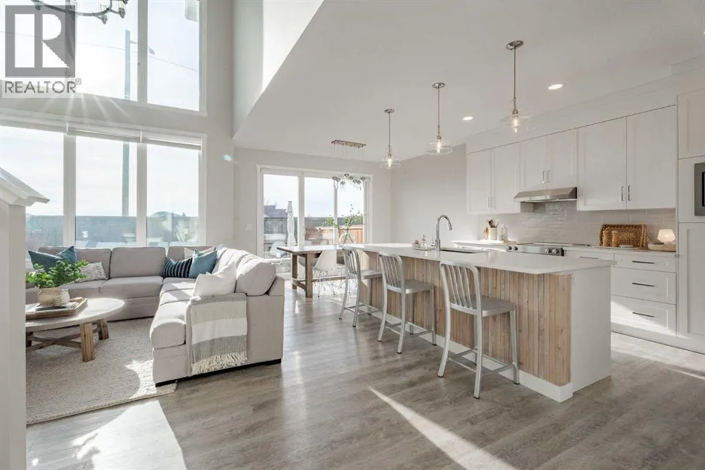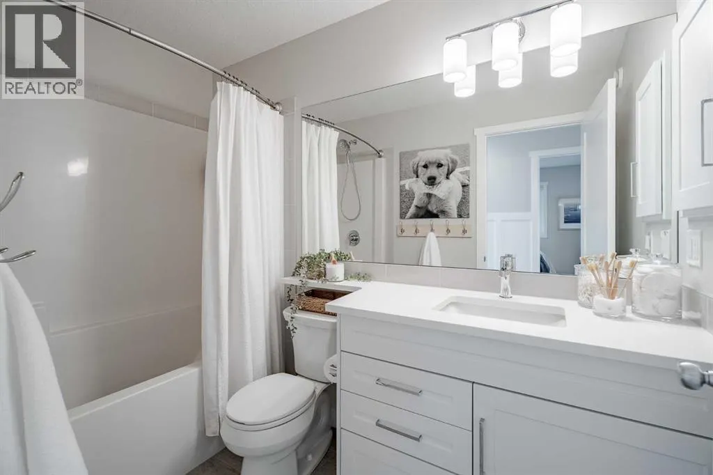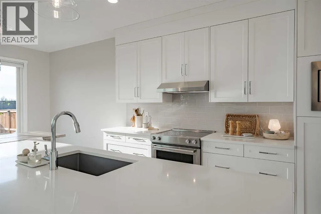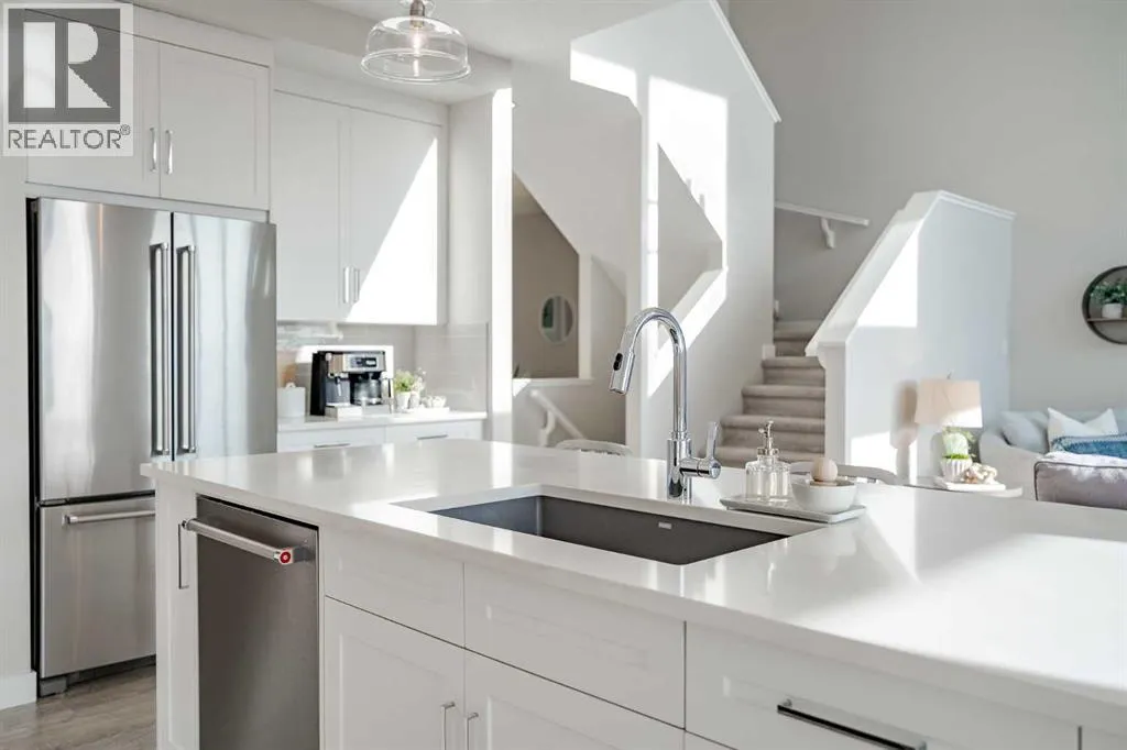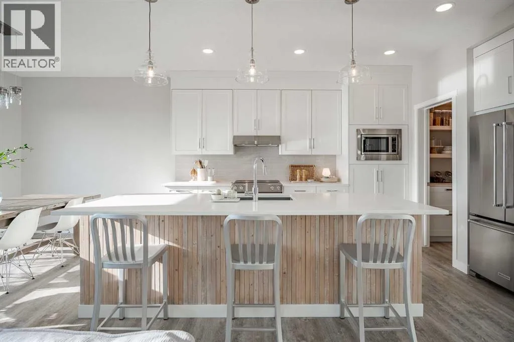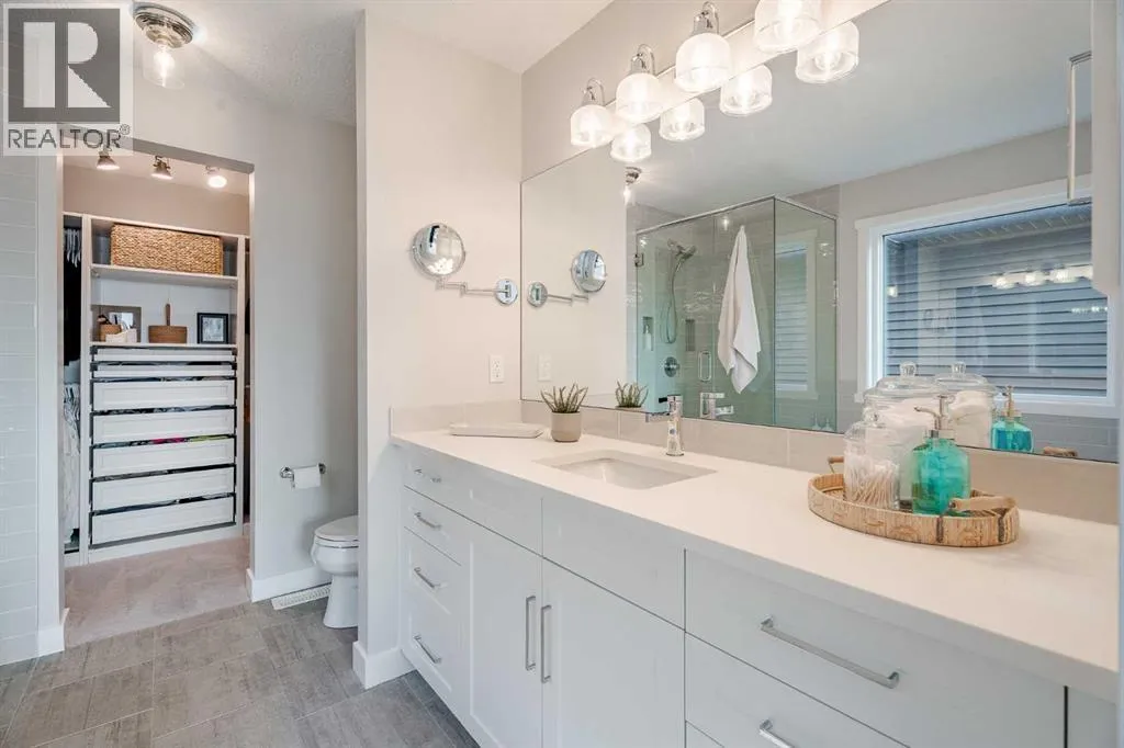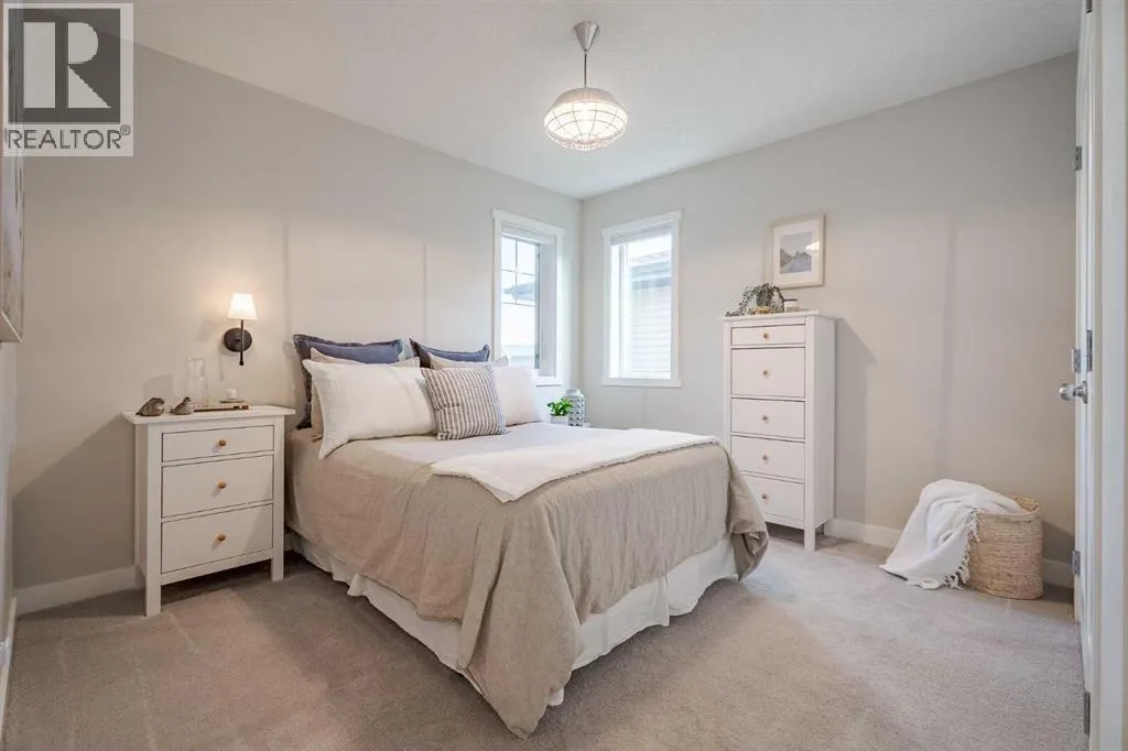 Welcome home to this stunning property in one of Airdrieâs most loved south communities, Kings Heights; with easy and quick access to Deerfoot. Perfectly tucked away on a quiet crescent, this home backs onto beautiful acreage properties, offering a rare sense of space and peaceful, country-style living just minutes from Kingsview Market, its amenities, and a nice selection of nearby schools. Inside, soaring two-storey windows flood the main living area with natural light â a breathtaking view you can also enjoy from the second level. The main floor features ultra-durable laminate floors, a spacious living room centered around a stunning feature fireplace, and a chefâs kitchen with upgraded appliances, and sleek quartz counter throughout. A main floor office/den conveniently placed by the front entrance provides an ideal space for work or study. Upstairs, youâll find three spacious bedrooms, including a primary suite with a large walk-in closet with built-ins and a spa-inspired 5pc ensuite. Youâll love the open view of the main living area below, where sunlight pours through the dramatic windows. A spacious vaulted ceiling bonus room, along with wainscoting and feature walls throughout, add timeless charm and a perfect amount of living space. The undeveloped basement with a rough-in bathroom awaits your finishing ideas, while the double attached garage provides everyday convenience. Step outside to a large backyard with plenty of room to play, relax, and grow. This home perfectly blends light, luxury, and livability, offering the warmth of country charm with the convenience of city life. (id:27476)