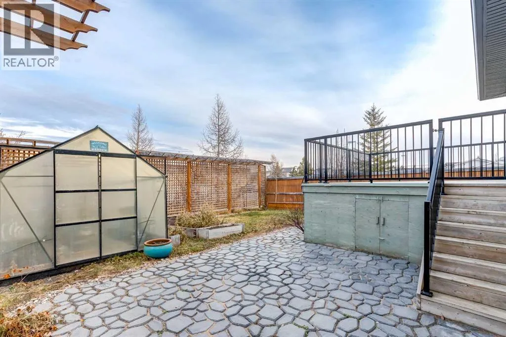 This beautifully maintained home, nestled in the serene canals of Airdrie, offers a perfect blend of comfort and convenience, backing onto green space and a school! The spacious backyard is an absolute highlight, featuring a greenhouse, raised garden beds, a well-maintained lawn, and a large privacy screen along the back fence, ensuring seclusion while you enjoy the outdoors. The expansive back deck, accessible from the eating nook, provides a perfect space for outdoor entertaining, with stairs leading down to a charming patio area. Inside, the open-concept kitchen boasts stainless steel appliances, a corner pantry, and a central island, seamlessly connecting to the eating nook with views of the backyard. The living room is bright and inviting, with a large front-facing window and a cozy fireplace with tile surround and mantle, creating a perfect spot for family gatherings. This level also features three bedrooms, including the spacious primary suite with a walk-in closet and a large window overlooking the backyard and green space. A shared 4-piece bathroom serves these main level bedrooms, offering ample space for family members or guests. The lower level is equally impressive, this fully finished space offers a great sized laundry area, three additional bedrooms, a 4-piece bathroom, and a large rec room with great with natural light. There is endless versatility for this lower level - perfect for a home office, entertainment area, or playroom. With its well-designed layout, plentiful natural light, and thoughtful design, this home offers a charming abode in a highly sought-after neighborhood, combining the best of indoor and outdoor living! (id:27476)