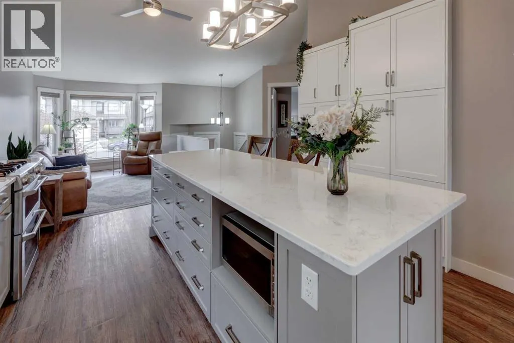Situated on a private crescent in the sought-after community of Willow Brook, this beautifully upgraded, turnkey bi-level residence offers a generous 2,250 square feet of living space. The bright, open-concept 1,158 sqft main level captivates with vaulted ceilings and a timeless color palette complementing the warm luxury vinyl plank floors. A welcoming living room features a charming bay window, creating a perfect space for relaxation. The seamless transition leads to the upgraded gourmet kitchen, w Quartz counters, a convenient central island with storage and seating, premium stainless-steel appliances, Gas Range, tile backspalsh, and contemporary pendant lighting. The adjacent dining area provides ample space for hosting and opens through French doors to a sun-drenched, west-facing deck and franced, private backyard. The main floor hosts three spacious bedrooms, including the private primary retreat which features dual closets and a four-piece private ensuite bathroom w Quartz counters. A separate four-piece bathroom serves the other two well-proportioned bedrooms. The professionally developed (with permits) fully developed lower level dramatically expands the home's utility with 1,091 additional square feet. This area is home to a recreation room, two spacious bedroomsâeach with substantial closet spaceâand a deluxe five-piece bathroom w heated floors. Completing this functional space is a huge, dedicated laundry room w storage and utility area. Practicality meets convenience with an attached, heated, double-car garage and additional driveway parking for two vehicles. Situated a close walk to Willow Brook Pond, Nose Creek, walking paths and mere moments from essential amenities like Sobey's, Shopper's Drug Mart, and local eateries. This meticulously cared for home is ready to be make new memories - could this be your next chapter? Schedule your private tour today! (id:27476)