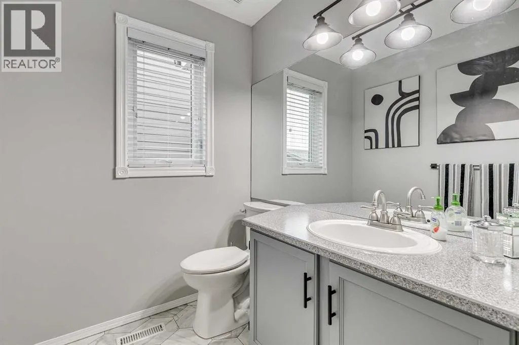 Welcome to 51 Edendale Crescent SE - an impeccably cared-for home in the sought-after community of Edgewater. This property sits in a family-friendly neighbourhood with abundant green space just steps from your front door, making it easy to enjoy morning walks, playtime at the park, or outdoor gatherings. Commuters will love the quick access to major routes out of town, while the central location keeps you close to downtown shopping, restaurants, and all levels of schools. From the moment you arrive, pride of ownership is obvious. The home's exterior has been thoughtfully updated with newer windows, shingles, siding, and an attractive front garage door, giving it a fresh and modern curb appeal. Low-maintenance landscaping is beautifully highlighted by Gemstone soffit lighting, poured concrete walkways, and an inviting front entry. The fenced backyard is a true retreat - offering RV parking, a large asphalt parking pad with a secure swing gate, and rear lane access to a rare find: a second oversized double garage, fully heated with a 9-foot door, perfect for hobbyists, small business, or additional vehicles. Underground sprinklers keep the yard lush with ease, and a storage shed adds practical space for tools and toys. Step inside to a bright, airy floor plan with a soaring two-story foyer and abundant natural light from large front and back windows. Recent updates, including fresh finishes and meticulous upkeep, create a welcoming feel throughout. The main level offers a comfortable living area ideal for entertaining, with sightlines to the dining space and kitchen. Upstairs, you'll find three generous bedrooms, including a private primary retreat with a walk-in closet and a spa-inspired en suite featuring a jacuzzi tub - perfect for unwinding after a long day. Two additional bedrooms share a full bath, and a handy half bath serves the main floor. The partially finished basement is framed and ready for your finishing touches - whether you envision a family rec ro om, gym, or home office. Modern upgrades such as a water softener & central air conditioning ensure comfort and longevity, while thoughtful design details reflect the pride and care poured into this home. Whether you're a growing family, car enthusiast, or anyone looking for space to spread out, 51 Edendale Crescent checks all the boxes. Its unbeatable combination of location, functional upgrades, and pristine condition make it a rare opportunity in one of Airdrieâs most beloved mature areas. Move-in ready, extremely well maintained, and brimming with features - this is the one you've been waiting for. (id:27476)