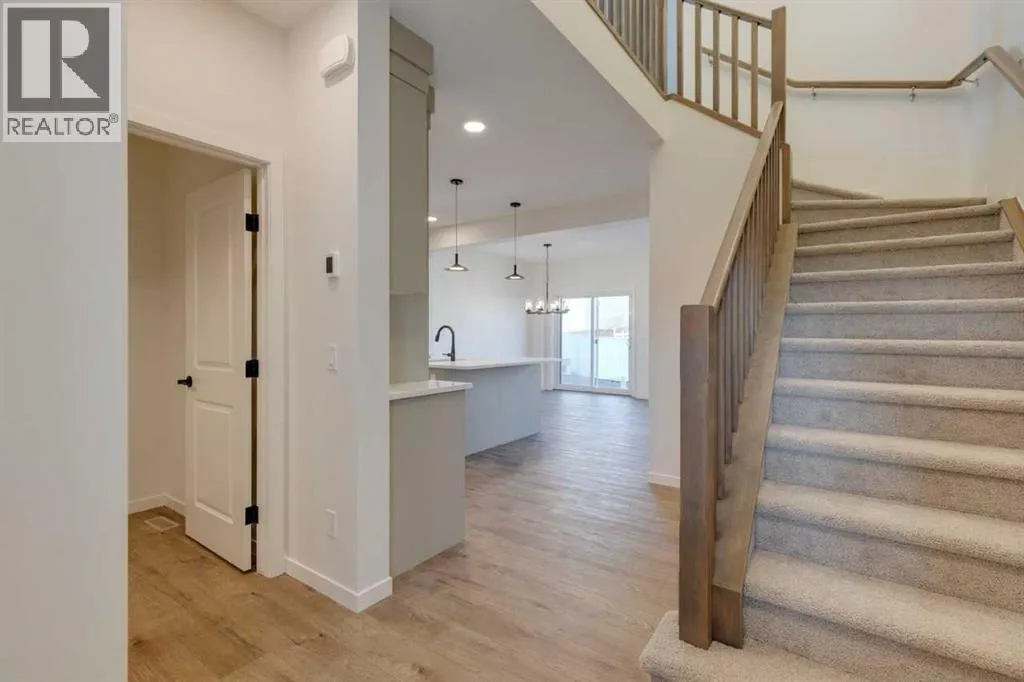 Welcome to 1419 Bayview Crescent SW, an exceptional new home by Calbridge Homes in the beautiful Bayview community of Airdrie. This thoughtfully designed 2-storey offers 3 bedrooms and 2.5 bathrooms across a modern open-concept layout perfect for family living and entertaining. The main floor features a bright kitchen with quartz countertops, stainless steel appliances, and a spacious island that flows seamlessly into the dining and great room. Upstairs, the luxurious primary bedroom includes a walk-in closet and private ensuite, joined by two secondary bedrooms, a full bath, and convenient laundry. High-end finishes, large windows, and quality craftsmanship are showcased throughout. Located in Bayview, residents enjoy tree-lined streets, parks, and nearby pathways with easy access to shopping, schools, and commuter routes. Built with Calbridge Homesâ trusted quality and attention to detail. Photos are representative. (id:27476)