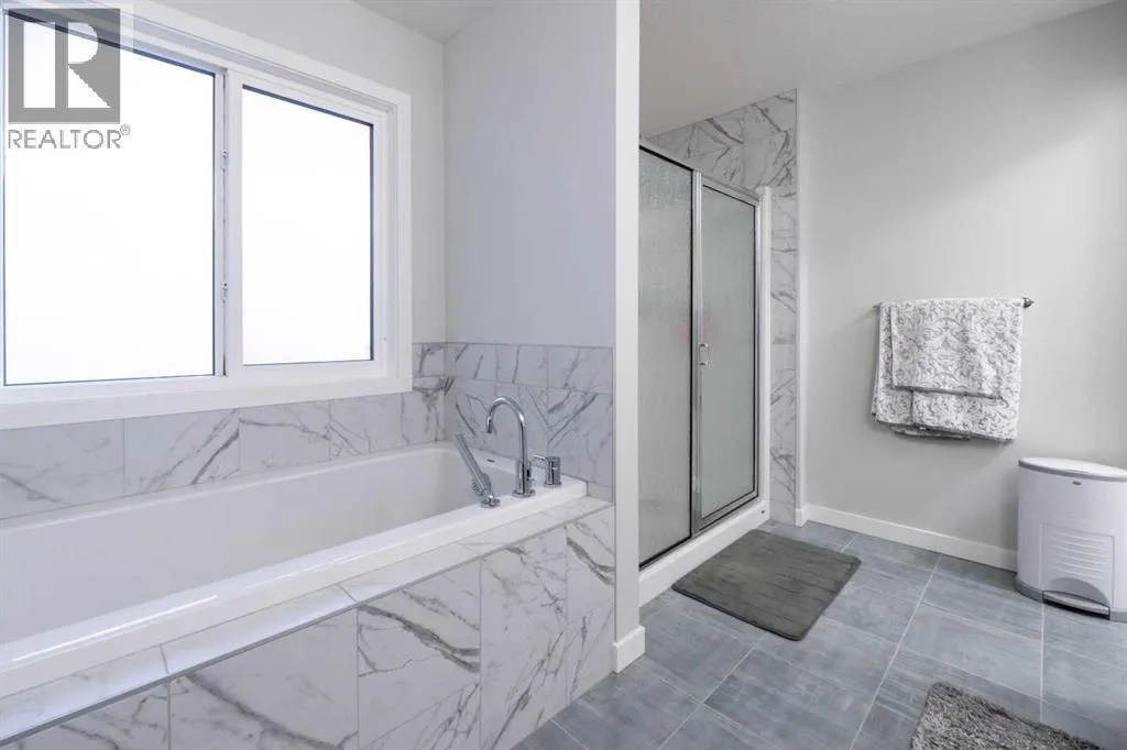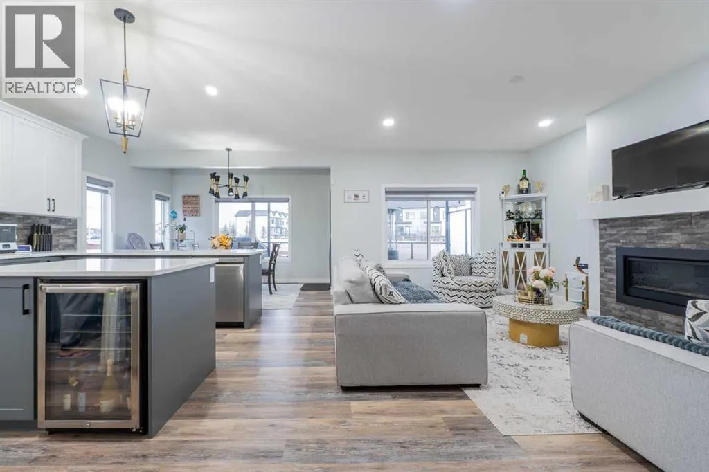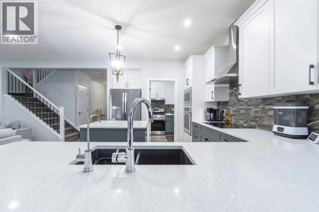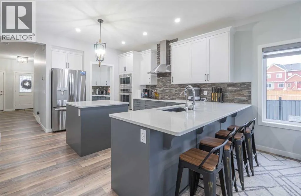 Welcome to this exceptional family home sitting on a massive pie-shaped corner lot, fully fenced with premium metal fencing and convenient RV parking through the alley. The beautifully landscaped backyard features a large finished deckâperfect for entertaining and outdoor living.As you step through the impressive double-door entrance, youâre greeted with a bright and open main floor that offers both functionality and luxury. Enjoy a full bedroom and a full bathroom on the main level, ideal for guests or multigenerational living. The upgraded gourmet kitchen includes built-in stainless steel appliances, quartz counters, and a spacious island, paired with a fully equipped spice kitchen for added convenience. A welcoming living room and dining area complete the main floor, creating the perfect flow for daily living.Upstairs, youâll find 4 bedrooms, including two master bedroomsâeach with its own spa-like ensuite (one 5-piece and one 4-piece). A large bonus room and a full laundry room add even more comfort and practicality.The home also features a 3-bedroom legal suite in the basement with 2 full bathrooms, a generous living area, and a full set of stainless steel appliancesâideal for rental income or extended family.Located just steps away from the pond, walking trails, and playgrounds, this home offers the perfect blend of luxury, space, and convenience for any family. (id:27476)