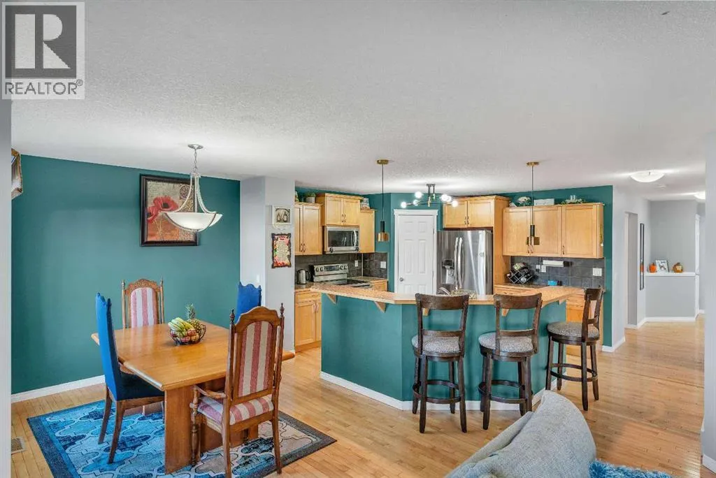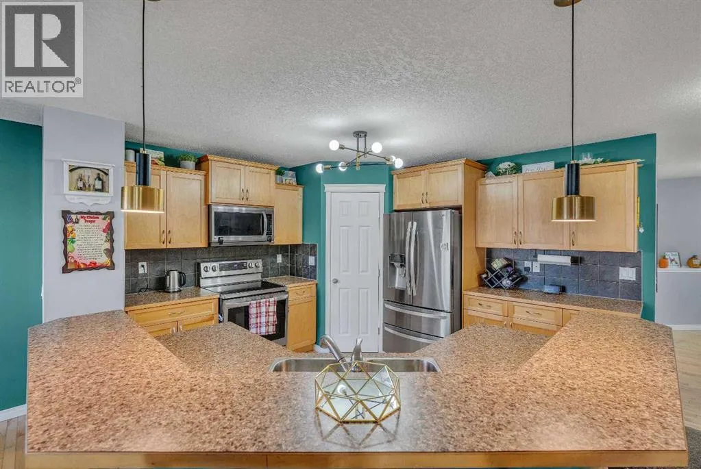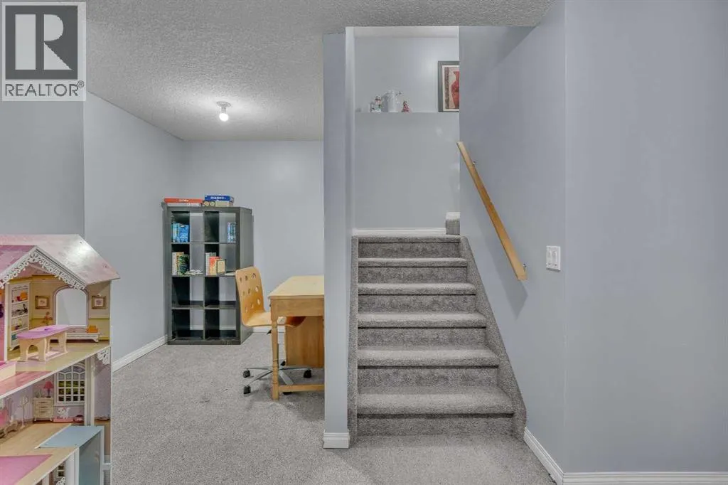 Freshly painted and fully finished, this 5 bedroom home offers over 3,300 sq ft of finished living space designed for large and growing families. Quiet cul-de-sac placement and an extra deep backyard add privacy and room to play, while recent upgrades including a brand new furnace, new hot water tank and central air conditioning ensure year-round comfort and peace of mind. A soaring open-to-above foyer creates a memorable first impression, anchored by hardwood flooring and a bright open layout. Culinary adventures are inspired in the kitchen with stainless steel appliances, abundant cabinetry, a corner pantry for extra storage and a huge island with raised breakfast bar seating, ideal for casual gatherings. The adjacent dining area opens directly to the rear deck for easy indoor/outdoor living. A welcoming living room invites relaxation in front of the gas fireplace flanked by built-ins, while French doors lead to a private den that makes an excellent office or study zone. A tucked-away powder room completes the main level. Cascading lighting guides you upstairs to a vaulted bonus room, an airy retreat perfect for movie nights or quiet family time. The primary suite delivers a true ownerâs refuge with a walk-in closet and a 5-piece ensuite featuring dual sinks, a deep soaker tub and a separate shower. 2 additional bright bedrooms, one with a walk-in closet, share a well-appointed 4-piece bathroom. The finished basement expands your possibilities with a massive rec room for games and media and a flex space for hobbies or play. Also on this level are 2 more bedrooms and a stylish 5-piece bathroom with dual sinks, ideal for shared use. Outside, the extra deep backyard offers endless room for children, pets and gardening alongside a spacious deck for barbecuing and unwinding. A double attached garage adds convenience and storage. Walk to St Veronica School and the nearby pathways and playgrounds, with Coopers Crossing Town Promenade only 3 minutes away for groceries, di ning, coffee and daily essentials. A rare blend of space, comfort, mechanical upgrades and an ideal family-friendly location! (id:27476)