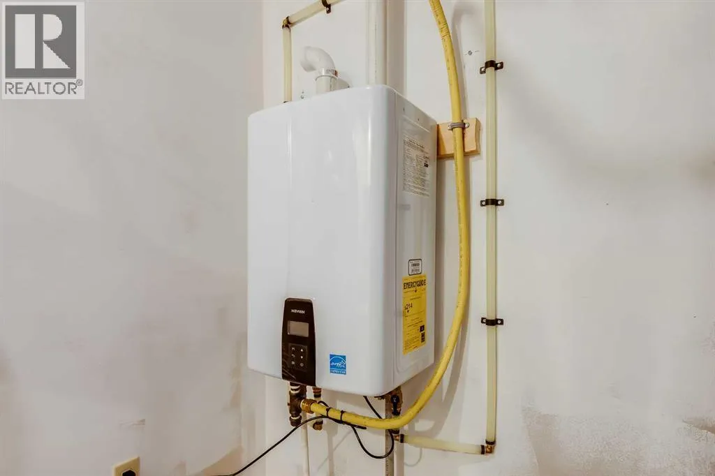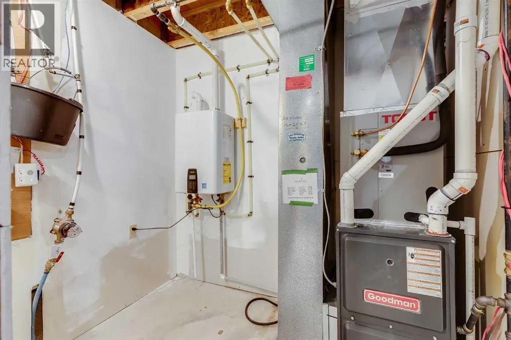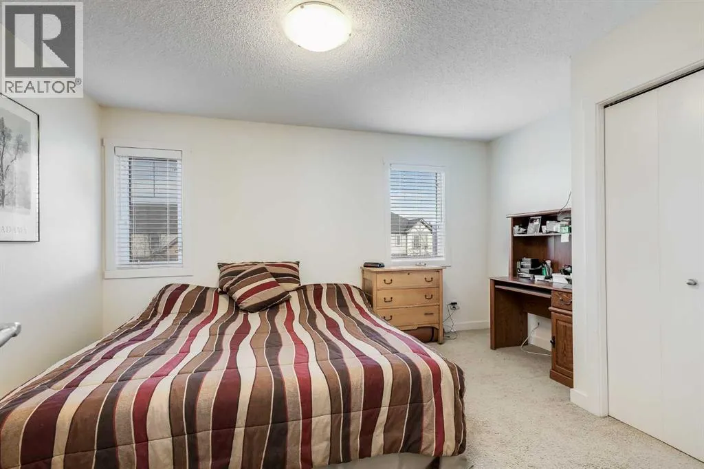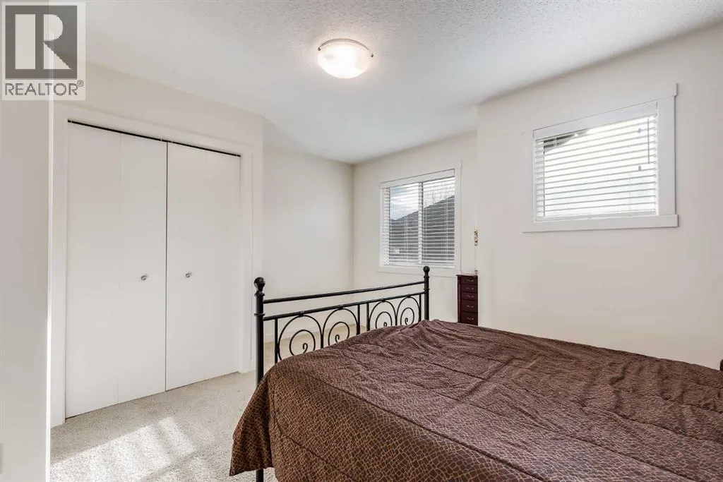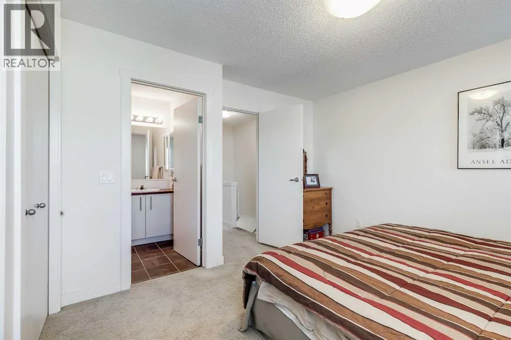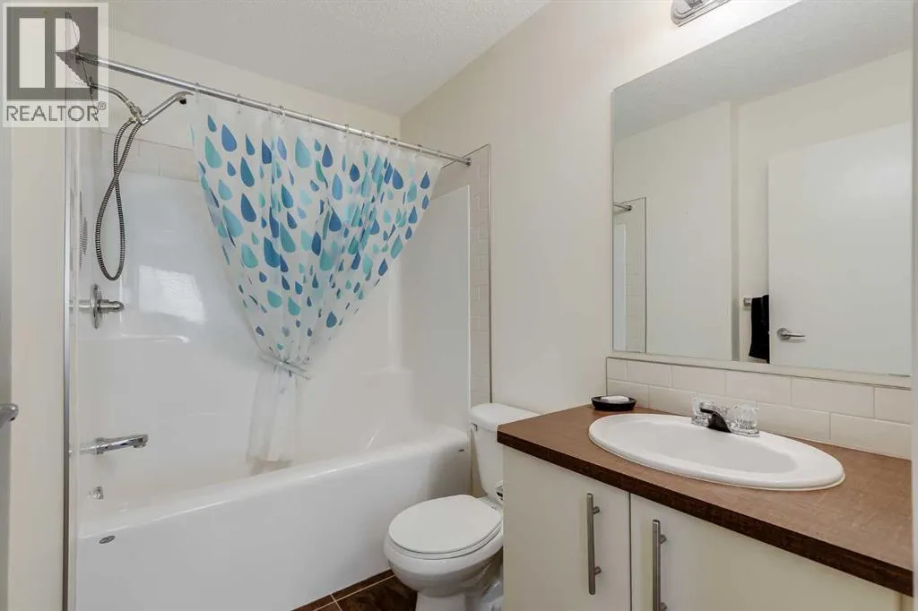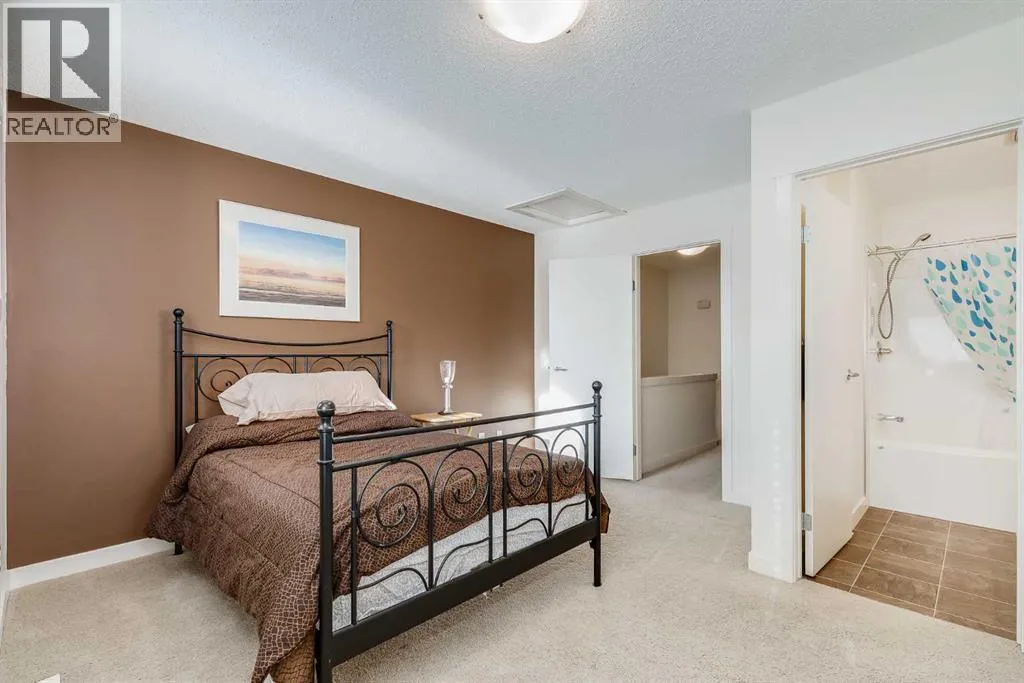 This thoughtful townhome blends comfort, convenience and year-round efficiency with a bright layout, dual primary bedrooms and a sunny south backyard that creates appealing outdoor space. Generous front windows fill the living room with natural light, setting a relaxed tone from the moment you step inside. Clear sightlines into the dining area support easy everyday living while the rear patio slider enables smooth transitions to the deck for barbeque nights or quiet mornings outside. A well-organized kitchen adds functional value with timeless subway tile, updated hardware, ample cabinetry and a pantry that keeps busy households running smoothly. A main floor powder room enhances day-to-day practicality. Upstairs, each bedroom enjoys its own private ensuite, offering comfort, privacy and flexibility for shared living, guests or future resale appeal. Carpeted floors add warmth across the upper level and windows in both rooms bring in consistent natural light. A partially finished basement presents abundant storage and future potential for additional living space as needs evolve. Air conditioning provides steady comfort in warm months, while the new tankless hot water heater ensures efficient, on-demand hot water. A fully fenced south-facing backyard extends living outdoors with room for gardening, relaxing or creating a pet-friendly space, supported by direct sunshine throughout the day. 2 dedicated parking stalls sit just steps from the front door for everyday convenience. Location adds further value, placing you minutes from Kingsview Market and Kings Heights amenities for groceries, dining and daily errands, along with quick access to CrossIron Mills for larger shopping trips. Proximity to local schools supports young families and smooth connections to Deerfoot offer efficient commuting into Calgary or around Airdrie. Investors, first-time buyers and downsizers will appreciate the low-maintenance lifestyle, smart layout and thoughtful improvements that make this h ome an easy choice in a well-loved community. (id:27476)