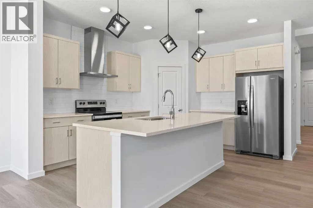 Welcome to 2024 Built house beautifully designed, 2-storey home nestled in the thriving community of Lanark Landing in Airdrie! Boasting 2,459 square feet of functional and stylish living space, this property offers a perfect blend of comfort, space, and convenience for modern family living. The main floor features a private office and den, ideal for remote work or study, while the spacious open-concept layout seamlessly connects the living, dining, and gourmet kitchen. Upstairs, find 3 generous sized bedrooms, including a luxurious primary suite, a bonus room, and convenient upper-floor laundry. Downstairs, the undeveloped basement offers endless possibilities for future developmentâwhether you envision a home theatre, gym, or extra living space. Additional features include: a walking distance to parks, green space, and pathways. Have a convenience of a short drive to CrossIron Mills Mall, Costco and many other amenities. Step outside to enjoy some outdoor activities at Kings Heights outdoor rink, pump track, and community garden. This stunning home also comes with a peace of mind with having a New Home Warranty and features a back alley for added flexibility. Whether you're raising a family, working from home, or simply looking for more space to live and grow, this property is ready to welcome you home. Please note that some photos are digitally altered. Schedule your showing today to truly appreciate what this stunning home has to offer! (id:27476)