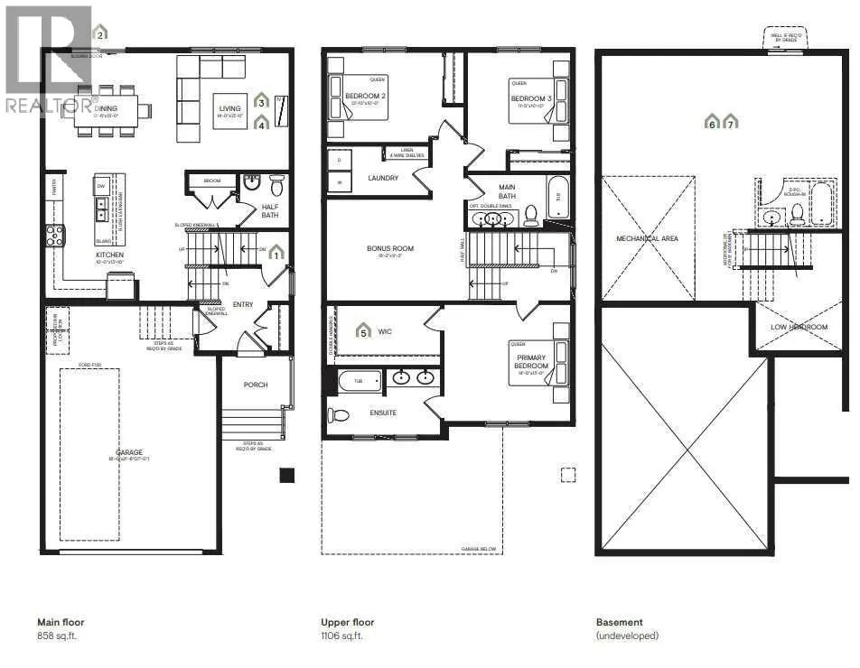 Welcome to the Marigold 3! This beautifully designed 4-bedroom, 2.5-bathroom home offers the perfect blend of comfort and style, ideal for growing families or those who love to entertain. The primary ensuite comes with a tiled standing shower, while the additional bonus room provides the flexibility for a home office, playroom, or media space. The open-concept main floor features upscale finishes, including a chimney-style hood fan, kitchen cabinets to the ceiling, a built-in microwave, gas rough in's for the stove and railings leading to the second floor, adding a touch of elegance throughout. Thoughtfully laid out with both function and flow in mind, the Marigold 3 offers a modern living experience in every corner. Photos are representative. (id:27476)
