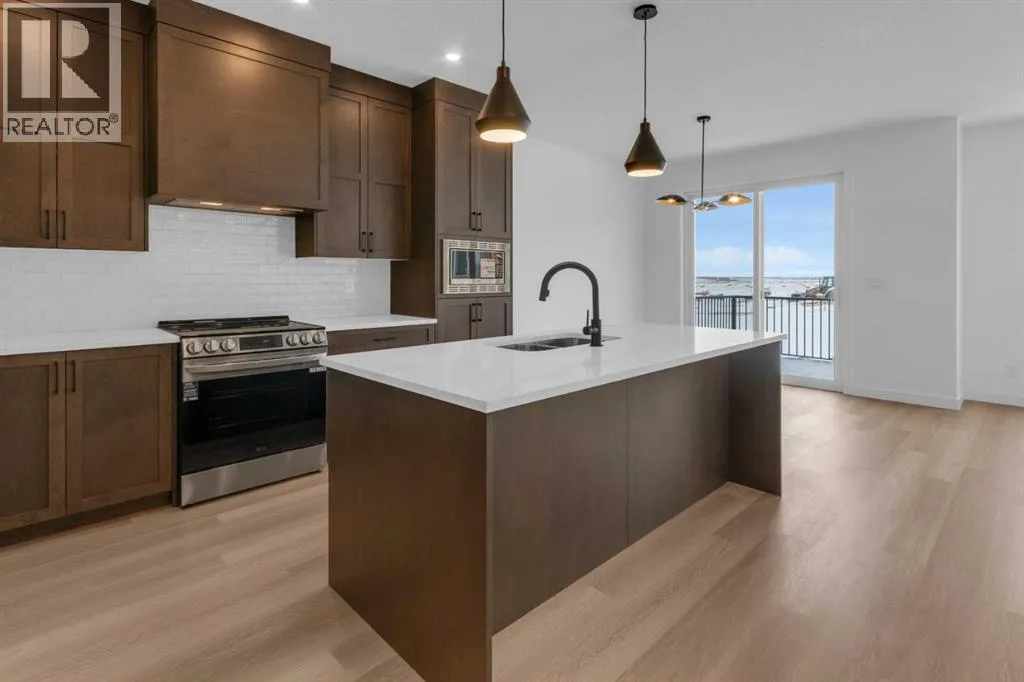 This spacious 3-bedroom, 2.5-bath home over 2,300 sq.ft. of well-designed living space, featuring an open-concept main floor, large windows, and a modern kitchen with quartz countertops and sleek cabinetry. The upper level includes a central bonus room, full laundry, and a luxurious primary retreat complete with a walk-in closet and beautifully finished 5pc ensuite. The walkout basement provides incredible potential for future development, while the oversized double attached garage adds everyday convenience. Located in a family-friendly community close to parks, schools, and essential amenities, this home combines comfort, style, and an unbeatable location. Move up into this great home in South Point! (id:27476)