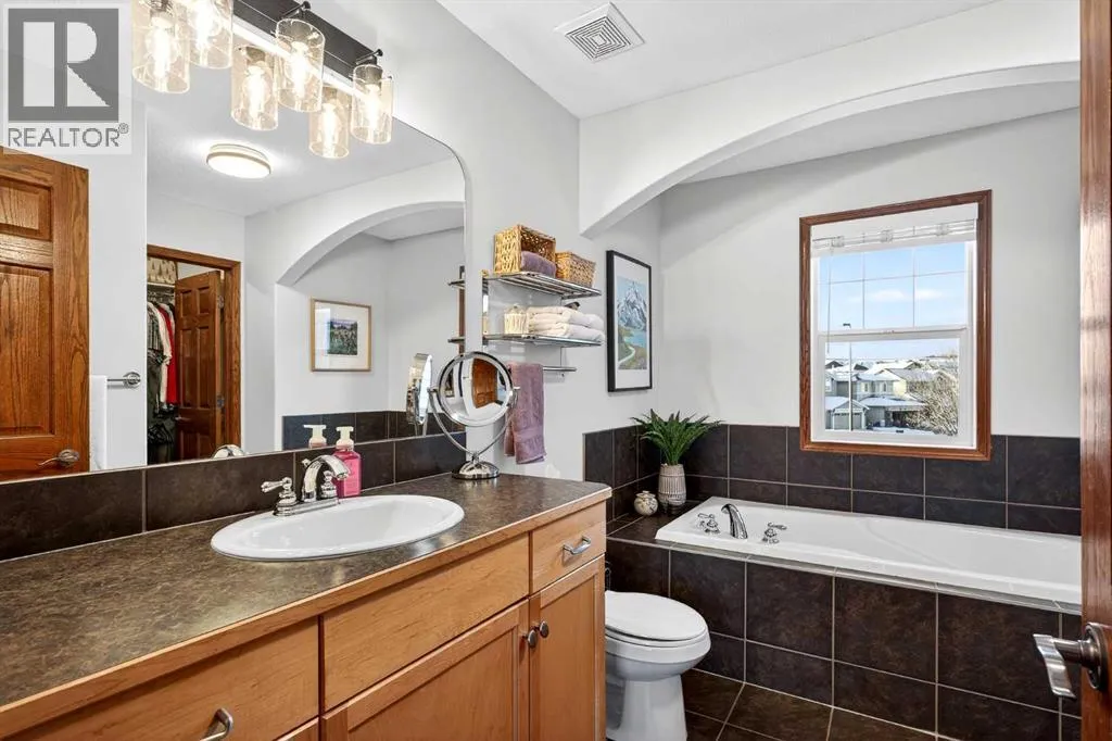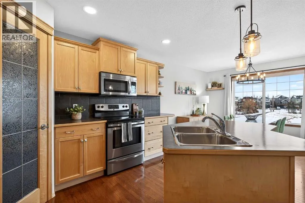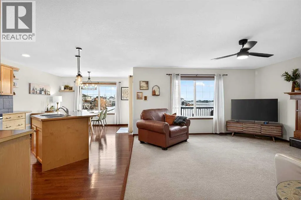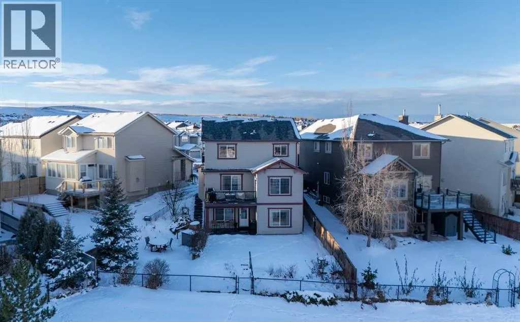 Welcome to this spacious two-storey family home in the highly sought-after Sagewood community. This property presents a rare blend of comfort and versatility, featuring a total of 4 bedrooms and 3.5 bathrooms. Recently refreshed with modern lighting fixtures and new blinds throughout, the home radiates a bright, appealing atmosphere. The main floor boasts an open-concept living area with a cozy gas fireplace, perfectly flowing into the dining room where you can step out onto a spacious balcony offering serene, direct views of the pondâyour perfect spot for morning coffee or evening entertaining. Upstairs, the separation provided by the central staircase leads to a bright bonus room with vaulted ceilings, ideal for a media room or home office. The primary suite is a true retreat, featuring exceptional pond views, a walk-in closet, and a 4-piece ensuite with an extra-deep soaker tub. Adding significant value and flexibility, the illegal basement suite offers separate access, laundry, a bedroom, and a kitchenette. The expansive backyard is a private oasis with green space, gardens, and an entertainment area, all while providing direct access to the tranquil pond walking paths. Don't miss the opportunity to own this Sagewood gem! (id:27476)