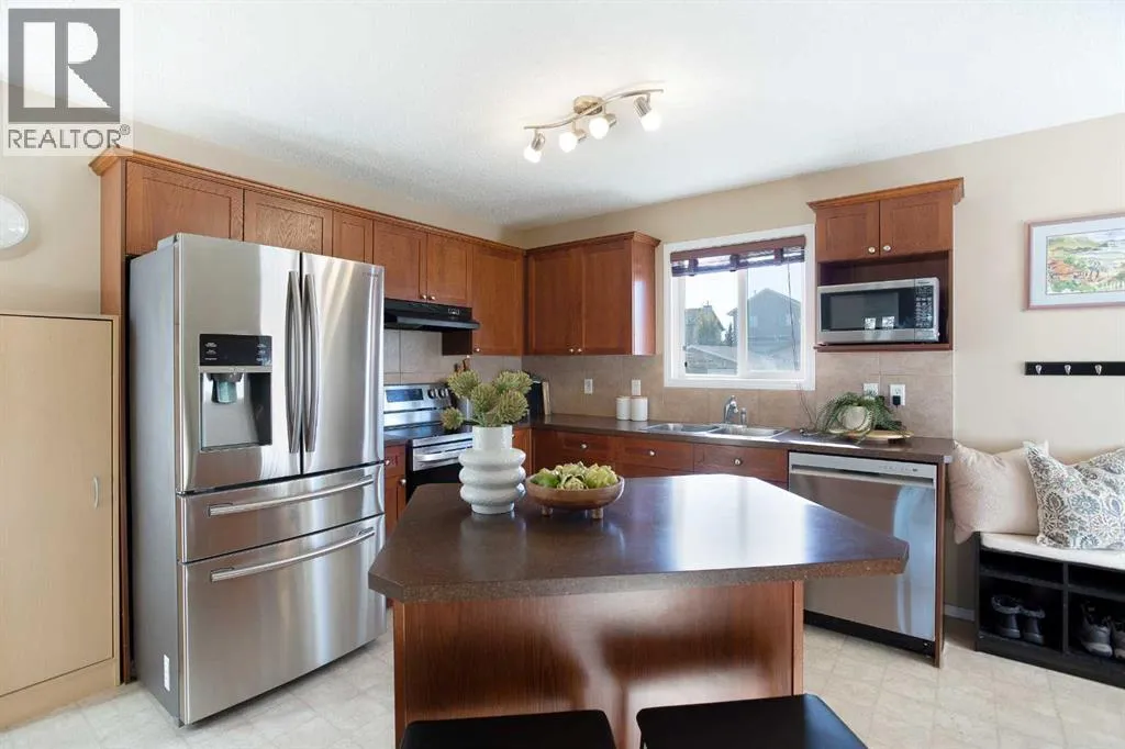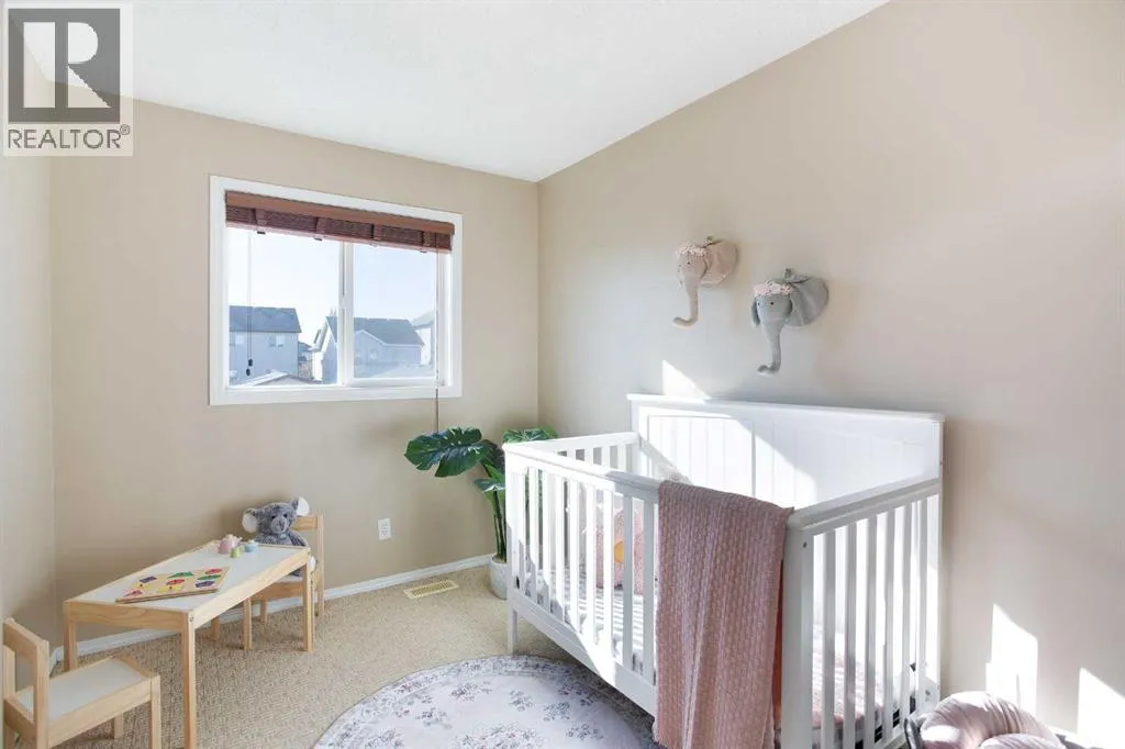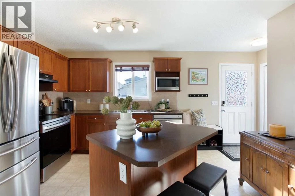 Welcome to refined living in Morningside, a premier Airdrie destination that defines family elegance. Step inside this stunning, meticulously maintained 2-storey homeâa glamorous 1,275+ square foot sanctuary where contemporary design meets irresistible comfort. The main floor is an invitation to gather. Light floods the open space, drawing you toward the spacious living room where a cozy gas fireplace provides the perfect atmospheric glow for cool evenings. Prepare to be inspired by the sophisticated, chef-inspired kitchen: rich Hazelnut-stained cabinetry, a substantial central island, and an expansive pantry create a high-end culinary environment. The adjacent dining area provides a flawless setting for both casual family meals and your most elegant dinner parties. Ascend to the quiet upper level, your private sanctuary. The primary suite is a true escape, boasting a large, tranquil space, complemented by a spa-like 4-piece ensuite and an expansive walk-in closet designed to effortlessly organize your finest collection. Two additional, generous bedrooms and a sleek 4-piece main bathroom ensure supreme comfort and privacy for all. Beyond the interiors, discover your sun-drenched, south-facing private oasis. The fully fenced yard features a deck for al fresco dining, beautiful low-maintenance landscaping, mature Haskap berry trees, and the immense convenience of RV PARKING next to the magnificent oversized detached double garage. Finally, the potential is boundless: The untouched lower level offers a massive blank canvas with three large windows and roughed-in plumbing, eagerly awaiting your bespoke visionâa luxury media room or future suite pending City of Airdrie approval. Perfectly positioned, this residence is steps from the local pathway system and ensures a painless commute to Calgary, placing all Airdrie's essential amenities right at your fingertips. Experience the ultimate combination of style, convenience, and opportunity. Schedule your private viewing tod ay! (id:27476)