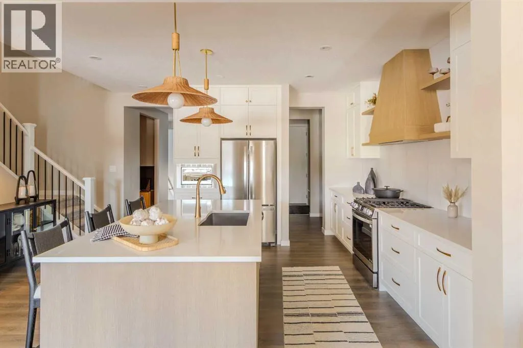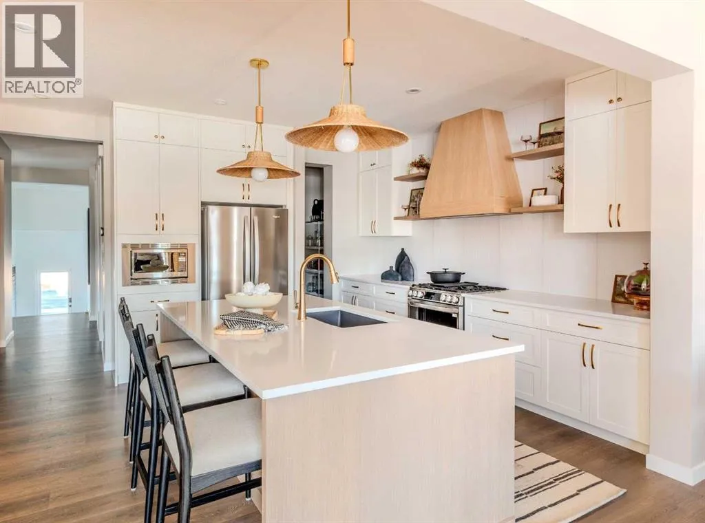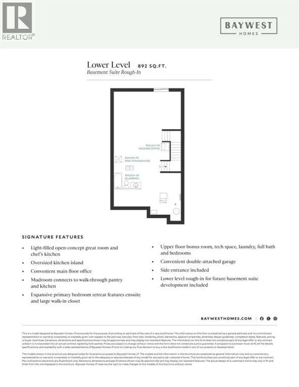 THE SAGEâ a thoughtfully designed home offering over 2100 square feet of living space above grade that includes 3 bedrooms, 2.5 bathrooms, and a main-floor office, perfect for working from home or creating a quiet study space. Situated on a spacious lot with a west-facing backyard, this home blends function, style, and comfort. Built by Baywest Homes, known for exceptional quality and craftsmanship since 1985, The Sage is engineered for lasting durability and innovative design. Enjoy peace of mind with a 10-Year Alberta New Home Warranty plus a one-year builder warranty.Step inside to a welcoming foyer that leads to the main-floor office. The heart of the home is the stunning kitchen, featuring 42-inch cabinets with crown molding and under-cabinet lighting, upgraded appliances, a built-in microwave, gas range, and a chimney-style hood fan with tile extending to the ceiling. Quartz countertops and a Silgranit undermount sink offer both beauty and practicality. A convenient walk-through pantry connects the kitchen to the mudroom, keeping everyday essentials organized and out of sight.The open-concept great room and dining area are ideal for entertaining, featuring oversized windows and a sliding glass door that opens to your west-facing yard. The living room is anchored by a cozy fireplace and beautiful luxury laminate flooring. Additional upgrades include 9-foot basement ceilings, a side entrance, modern railing, and triple-pane energy-efficient windows for year-round comfort.Upstairs, youâll find a spacious bonus room, perfect for family movie nights or a kidsâ play area, along with an adjacent tech space ideal for studying, working, or creative projects. The primary suite offers a relaxing escape with a large walk-in closet and a private ensuite complete with a spacious shower and separate soaker tub. Two additional generous bedrooms, a dedicated laundry room, and a well-appointed main bathroom complete the upper level.Ready to make your move? The Sage is designed to support your lifestyle with comfort, beauty, and thoughtful features throughout.About the Community:Sawgrass Park in NW Airdrie is a vibrant new community by Hopewell, featuring lush green spaces, serene wetlands, and upcoming plans for a new school and recreation amenities such as a splash park and pickleball courts. Itâs the perfect place to build lasting memoriesâand youâll be among the first to call this exciting neighbourhood home.There is no showhome in this area so please contact the listing agent to arrange a showing.Photos shown are of the same model in a different community and may not reflect the exact finishes of this home. (id:27476)