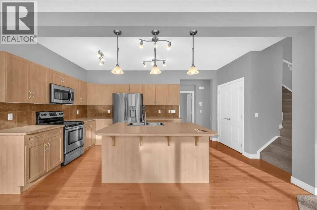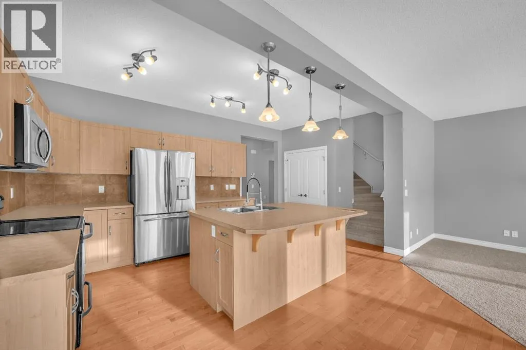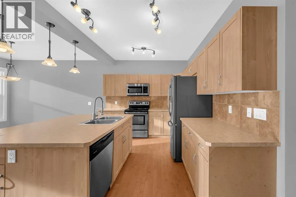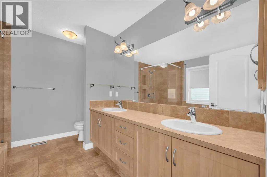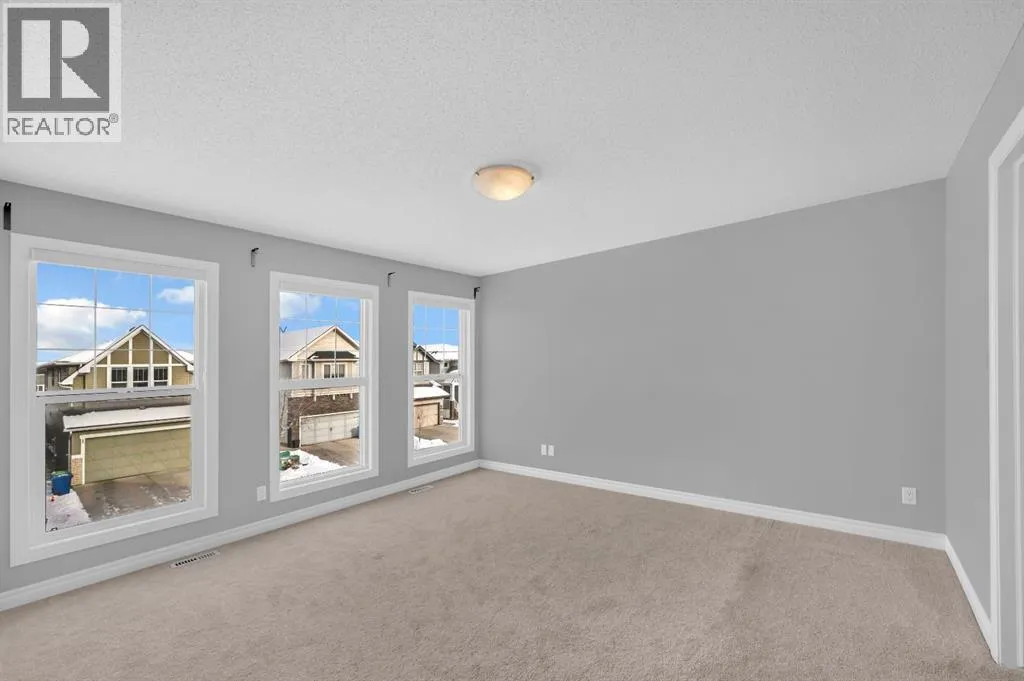 FRONT ATTACHED GARAGE | 2,000sqft + | BONUS ROOM | SOUTH FACING BACKYARD | 3 BEDROOM + 2.5 BATHROOM | Welcome to this inviting and thoughtfully designed 3 bedroom, 2.5 bathroom home located in the highly sought-after community of Hillcrest. From the moment you step inside this 2,000+sqft home, youâre welcomed by a bright foyer that opens into a spacious main level featuring 9 ft ceilings, creating an airy and comfortable atmosphere throughout. The open-concept layout includes a warm and inviting living room highlighted by a cozy fireplace, a well-planned kitchen with plenty of cabinetry and counter space, and a generous dining area perfect for family meals or hosting guests. Large patio doors provide an easy transition to the sunny south-facing backyard, offering an ideal space for summer barbecues, relaxation, or play. Upstairs, the thoughtfully designed layout continues with a beautiful primary suite featuring three large windows that fill the room with natural light, a spacious walk-in closet with its own window, and a well-appointed 5-piece ensuite complete with a soaker tub, separate shower, dual sinks, and a private water closet. The upper floor also includes a convenient laundry room, a large bonus room with an elegant tray ceiling thatâs perfect for movie nights or a home office, two additional comfortable bedrooms, and a full 4-piece bathroom. Perfectly situated within walking distance to schools, parks, pathways, playgrounds, and the community pond, this home offers both convenience and a family-friendly lifestyle. Shopping, dining, and everyday amenities are just minutes away, and with quick access to Highway 2, commuting is easy. This Hillcrest home combines comfort, functionality, and a fantastic locationâan excellent choice for families and professionals seeking a well-rounded home in a vibrant community. (id:27476)