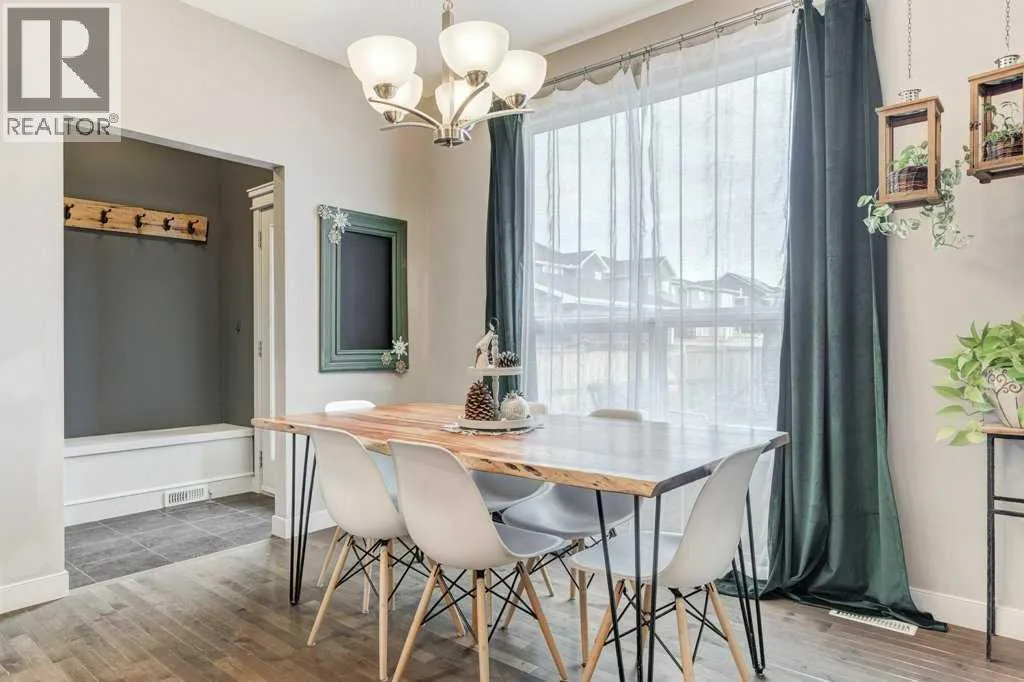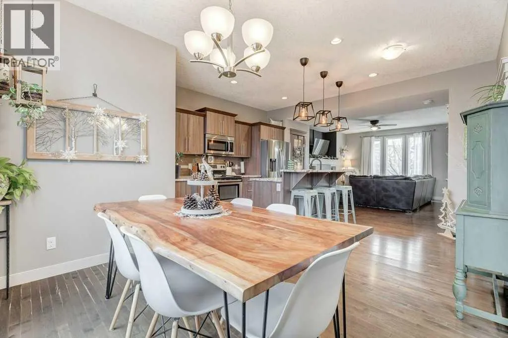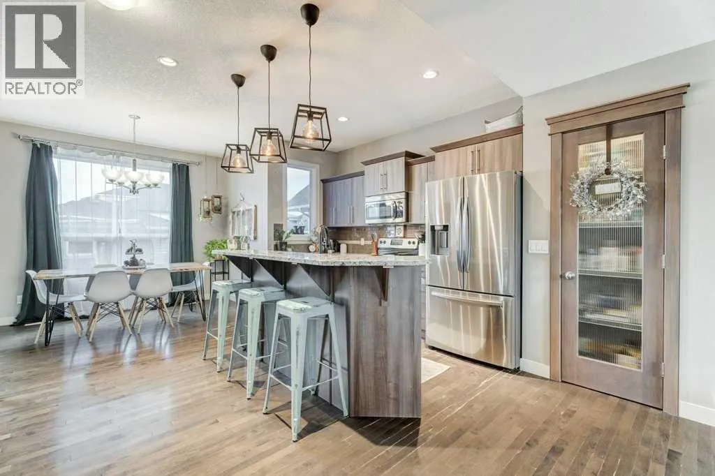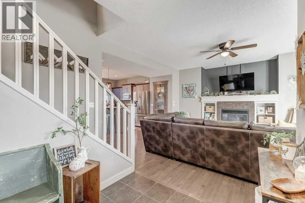 This former Nuvista show home located in popular Ravenswood is a two storey home featuring 3 bedrooms & 2.5 bathrooms. The main floor boasts 9 ft ceilings with an open floor plan and separate foyer to welcome your guests. The spacious living room has three large windows and a gas fireplace with built in shelving plus tile surround/hearth. The lovely kitchen has an island, granite counters, stainless steel appliances (stove replaced 2025 & newer dishwasher) plus a good-sized pantry and separate dining area. The spacious laundry room, two-piece bathroom and back door entrance with storage bench complete the main floor. Upstairs you will love the primary bedroom with large walk-in closet with a window plus a 3-piece ensuite with a 5-foot shower. Two large bedrooms with good-sized walk-in closets and a 4-piece main bathroom complete this level. This home offers a nice sized backyard with a deck and a double detached garage. Located close to schools, playgrounds, walking paths, shopping, dining and more! Great access to transit and major routes. Donât miss it, call your favorite Realtor today! (id:27476)
