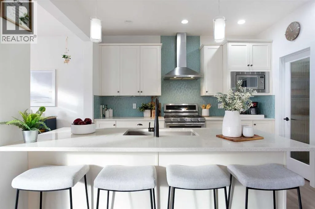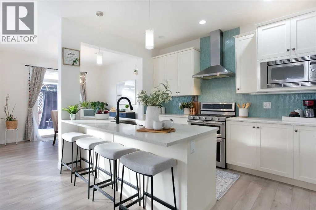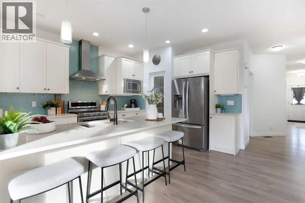 Welcome home to your 2-storey family sanctuary in the heart of highly sought-after Bayview. This spacious home, boasting 5 bedrooms and 3.5 bathrooms across an impressive 3,000 sq ft, is situated on a rare, oversized 4,525 sq ft pie-shaped lotâthe ultimate blend of convenience and tranquility. From the moment you walk through the door, the home feels expansive and refined, thanks to nine-foot ceilings and a sophisticated palette across three fully finished levels. The open-concept main floor, anchored by a beautiful gas fireplace, is where life happens. Chefs will adore the gourmet kitchen, which features creamy white cabinetry, a luxurious double wall oven, a powerful gas range, and a brilliant walk-through pantry. Plus, a dedicated main-floor den with custom built-ins ensures you have the perfect quiet spot for working. Upstairs is designed entirely for rest and retreat. The spacious upper-level features new carpeting, generously sized bedrooms, with an expansive primary suite with a spa-like bath, including separate vanities and an oversized glass shower, plus a walk-in closet. 2 additional bedrooms, 4-piece main bathroom and a convenient laundry room, are all located on the 2nd floor. Additionally, the smart layout even features a large family room - ideal for kids' play or family movie nights, that can easily transform into an enormous 5th bedroom! To top it all off, the finished lower level provides the ideal setup for guests or extended family, offering an additional bedroom, an oversized recreation room, a 4-piece bathroom, ample storage spaces. With central air conditioning and a widened driveway, this home truly delivers modern luxury without compromise, but the true jewel is outside. Your massive, private yard is an entertainer's masterpiece! Picture yourself hosting effortless parties on the majestic two-tier deck, sheltered by a gazebo, and complete with a natural gas connection for the BBQ. There's a designated spot for your hot tub and a separate area for a cozy fire pit. Located in the family-friendly community of Bayview, this peaceful haven is steps from everythingâparks, walking paths, canals, great schools, shopping, and easy access to Deerfoot! Seamlessly blending style, functionality, and ultimate comfort, itâs time to experience modern living at its finest, and it's completely turn-key! Don't miss this opportunity; contact us to arrange your private showing today! (id:27476)