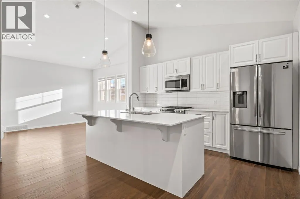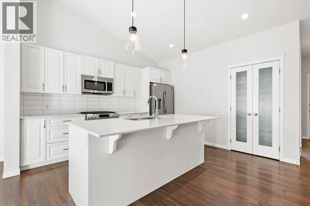 Welcome to 3 Hillcrest Close SW â a beautifully maintained, modern bungalow on a desirable corner lot in Airdrieâs Hillcrest community. This home shows like new, offering bright open-concept living, stylish finishes, and incredible versatility with a fully developed lower level featuring a 2-bedroom illegal suite with a private side entrance.Step inside to soaring vaulted ceilings, abundant natural light, and a seamless layout perfect for both everyday living and entertaining. The main floor features a spacious living area with large windows, warm flooring, and a custom built-in media niche. The kitchen is crisp and modern, equipped with white cabinetry, quartz countertops, stainless steel appliances, a gas range, a large island with seating, and a walk-in pantry with frosted glass doors.The main level includes two generous bedrooms and a full bath, making the layout ideal for families, downsizers, or those seeking single-level living.The lower level (illegal suite) offers exceptional flexibility â whether used as a mortgage helper, multi-generational space, or private guest quarters. With two additional bedrooms, a full kitchen area, living space, and its own entrance, this setup adds tremendous value and potential.Outside, enjoy the benefits of a corner lot: more privacy, additional parking options, extra sunlight, and a greater sense of space. A detached garage and fenced yard complete the property, offering convenience and functionality year-round.This is an impressive, move-in ready home with income potential, modern style, and a fantastic location close to schools, parks, shopping, and commuter routes. A must-see opportunity in Airdrieâs sought-after southwest corridor. (id:27476)