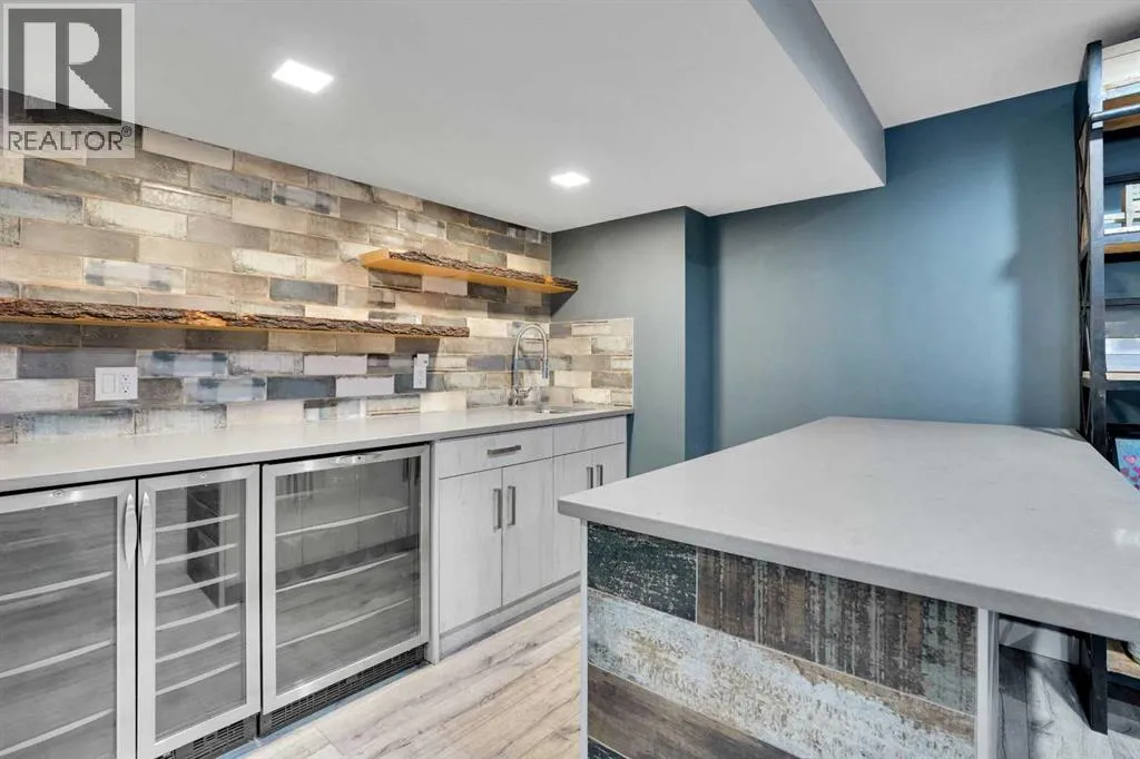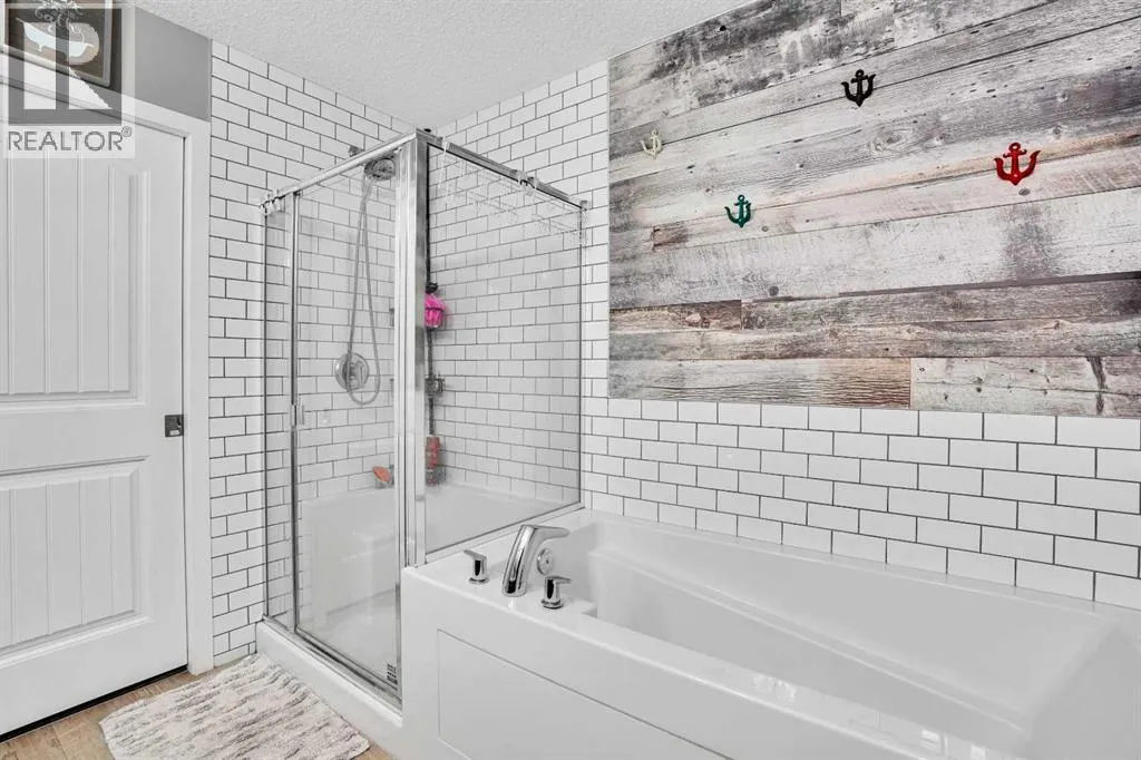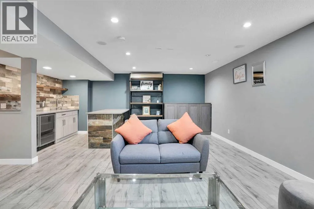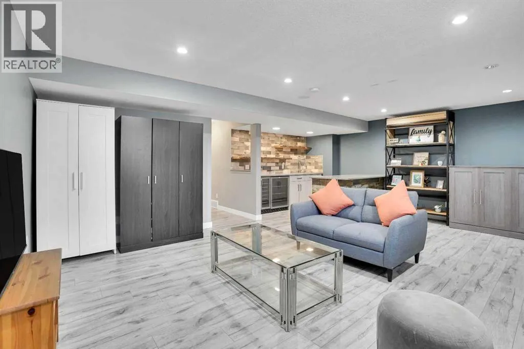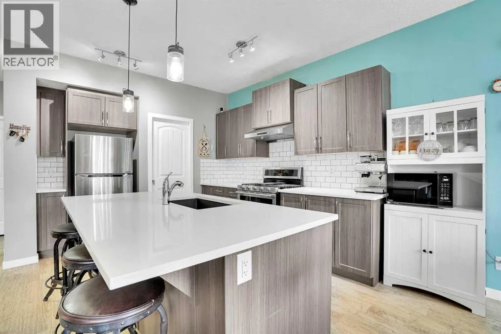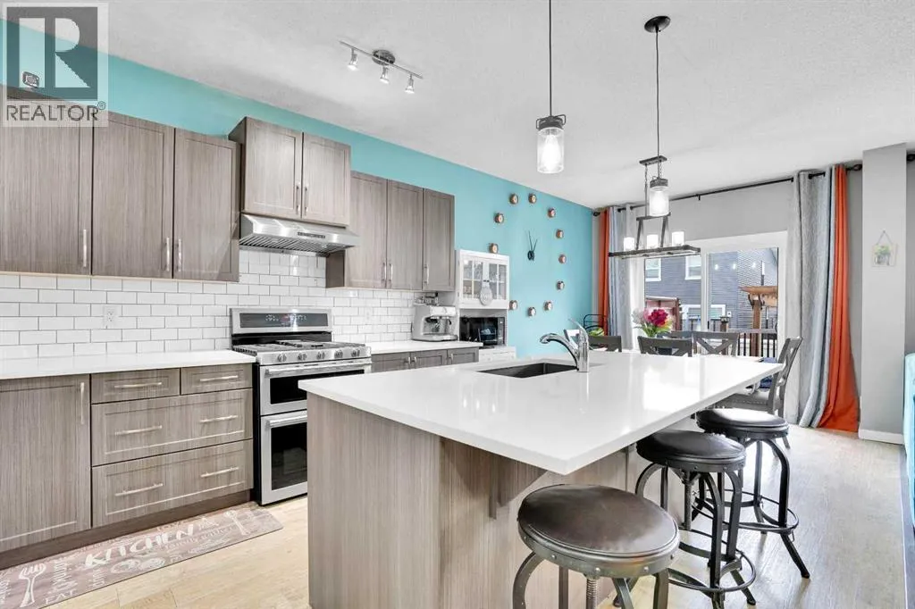 WOW! AMAZING OPPORTUNITY! to own a truly remarkable 4 BED 3.5 BATH with over 2260 SQFT of developed living space property in one of the Airdrieâs most sought-after communitiesââKings Heightsâ. Thoughtfully customized from top to bottom, inside and out, this beautifully modernized two-storey home with a double attached garage stands out with its unique features and exceptional planning. Step inside '100 Kingsbury Close', through the charming covered veranda and into a spacious front entry with a coat closet. Continue past the stylish half bath to the stunning open-concept main floor, showcasing a fresh colour palette, upgraded lighting, LVP flooring for all floors and 9â ceilings. The chefâs kitchen is a showstopper, featuring: Granite under-mount farmhouse sink, Gas stove with oven, Heavy duty newly installed hood fan, Bosch dishwasher, Large island with eating bar, Abundance of soft-close cabinetry, Quartz countertops and Walk-in pantry with pocket door and motion-sensor lighting! The expansive living room is brightened by large windows and accented with a rustic feature wall and shelves, fireplace, while the generous dining area provides access to the west-facing backyard retreat. Perfect for entertaining, this outdoor space includes a two-tier deck, Pergola, built-in Bench seating, Fire Pit, plenty of green space, fully fenced and gated for excellent privacy!! Upstairs, youâll find a bright and inviting primary suite featuring stunning feature walls, a walk-in closet, and a luxurious 5-piece ensuite complete with dual sinks, a soaker tub and tiled shower. The upper level also offers other three additional spacious bedrooms, a 4-piece main bath, and a perfectly sized laundry room equipped with a pedestal sidekick washer. FINISHED BASEMENTâa beautifully designed space loaded with upgrades! Enjoy a gorgeous wet bar with two beverage coolers, raised eating bar, ample cabinetry, and live-edge shelving. The basement also includes a generous living area with built-i n SPEAKERS, a stunning 3-piece bathroom with an oversized tiled walk-in shower, HEATED FLOOR, and excellent storage options. This home continues to impress with approximately $25,000 in premium upgrades, including: Professionally installed heater in double attached garage with abundant shelving, Heavy duty hood fan in the kitchen, Central A/C, Heated floor in the basement washroom, LVP flooring all around (except basement stairs), Two outdoor storage sheds, Two-tier deck with pergola and a seating bench and Watts Exterior Bluetooth lighting (NO MORE Holiday light hassle!)Bothered from on-road traffic noise? Welcome! This property is located in a quiet close (CL)âno through trafficâthis home is perfectly positioned for families. It is just steps away from schools such as Heloise Lorimer (Eng)/Ãcole des Hautes-Plains, skating rink, parks, walking trails to pond and three football fields. If youâre looking for a home full of character, thoughtful upgrades, and unique features, this one is truly a must-see! (id:27476)