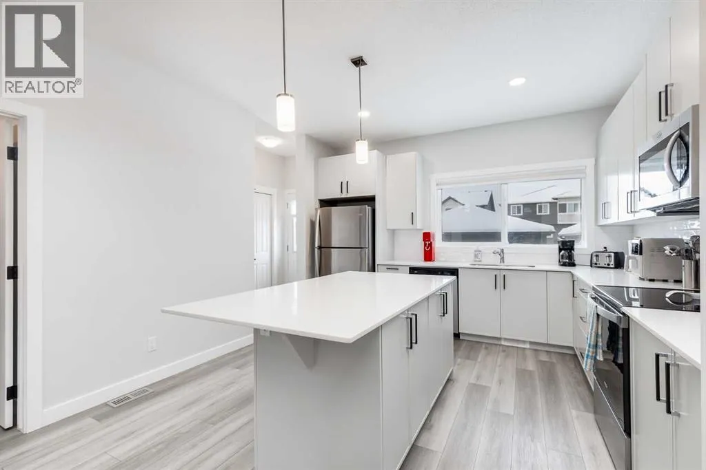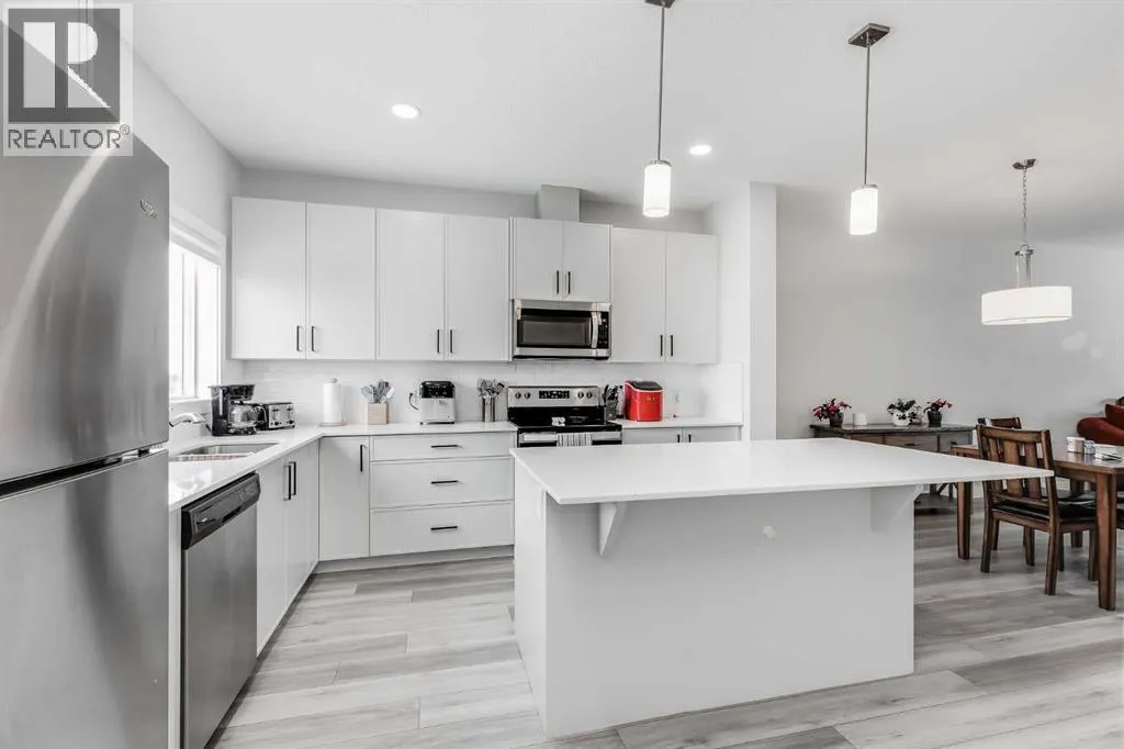 Welcome to Midtown! A centrally situated Airdrie community known for excellent walkability, quick access to everyday amenities, and a welcoming neighborhood feel. Step into this nearly new and beautifully cared for 1,622 sqft home set across two well designed levels that support a modern and comfortable lifestyle. The inviting front porch leads into an open main floor where the kitchen, living, and dining spaces flow easily together. Highlighted by nine foot ceilings, tall upper cabinetry, quartz counters, massive pantry, and direct access to the rear deck and yard. Double Detached Garage is already built for your convenience. The upper level features three roomy bedrooms and a versatile bonus area that works well for quiet downtime or a kids area. Two full bathrooms including a private ensuite and a convenient upper laundry room complete the upper level. A separate side entrance to the basement adds flexibility for future development options tailored to your needs. Midtown is popular for its central pond, community gathering spaces, and pathway network that links to parks, local shops, and restaurants. Come out and see for yourself why Midtown is regarded as one of Airdrieâs desirable communities, and imagine yourself settling into this home. (id:27476)