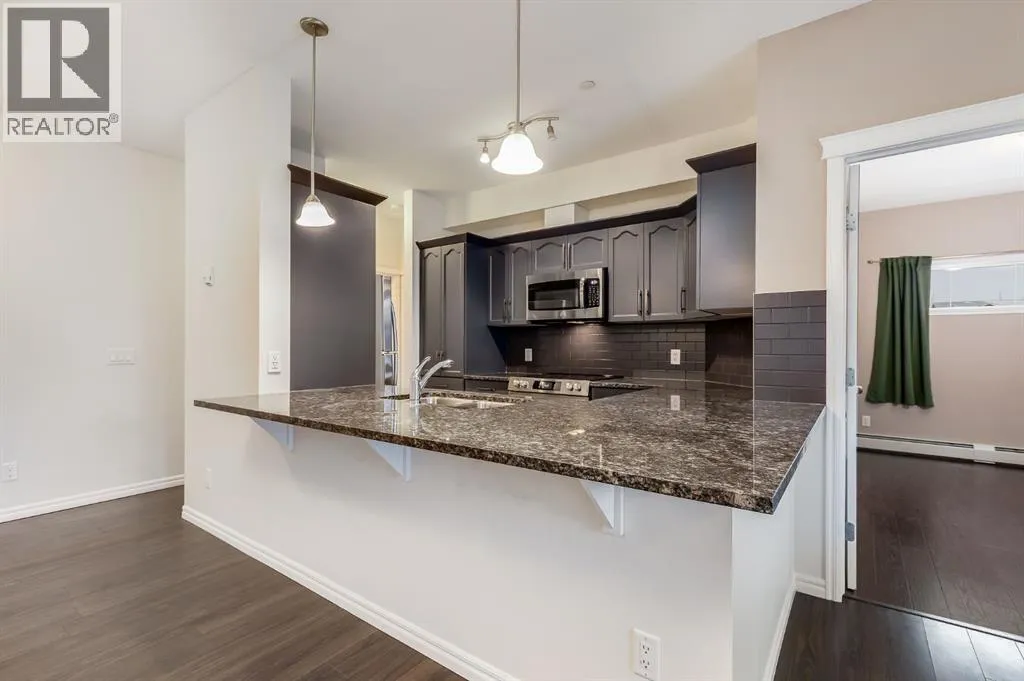Immediate Possession Available on this Gorgeous END UNIT - 2 Bedroom and 2 Bath Condo with a South Facing Balcony. When you are arrive, you will immediately notice the great lighting from the Oversized South Facing Window and fantastic Kitchen that has been recently updated with BRAND NEW REFINISHED CABINETRY, Stainless Steel Appliances, Built in Pantry, Granite Countertops, and a Large Island. The Open Concept Living Room allows great space for furniture and a Dining Room Table. The Primary Bedroom is 13'7" x 12'11" and opens to a walk through his and hers closets and the Ensuite with a Shower Stall. The Second Bedroom can fit a Queen sized Bed. There is also a Full Bathroom, and a Laundry Room with storage space. Enjoy all the views and the Sun with the Larger South Facing Balcony that has a Gas line for your BBQ. This Beautiful Condo also has separate storage in the basement. This Well Managed Condo has an amazing Courtyard with Gazebo area for the residents to use. CONDO FEES Include water, heat, sewer. You pay the electricity. Located close to Restaurants, Grocery, Entertainment and quick access to QE2. This condo is ready for you to make it yours. (id:27476)