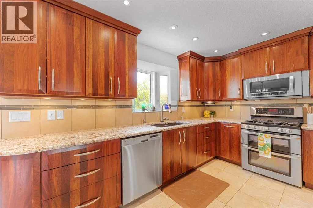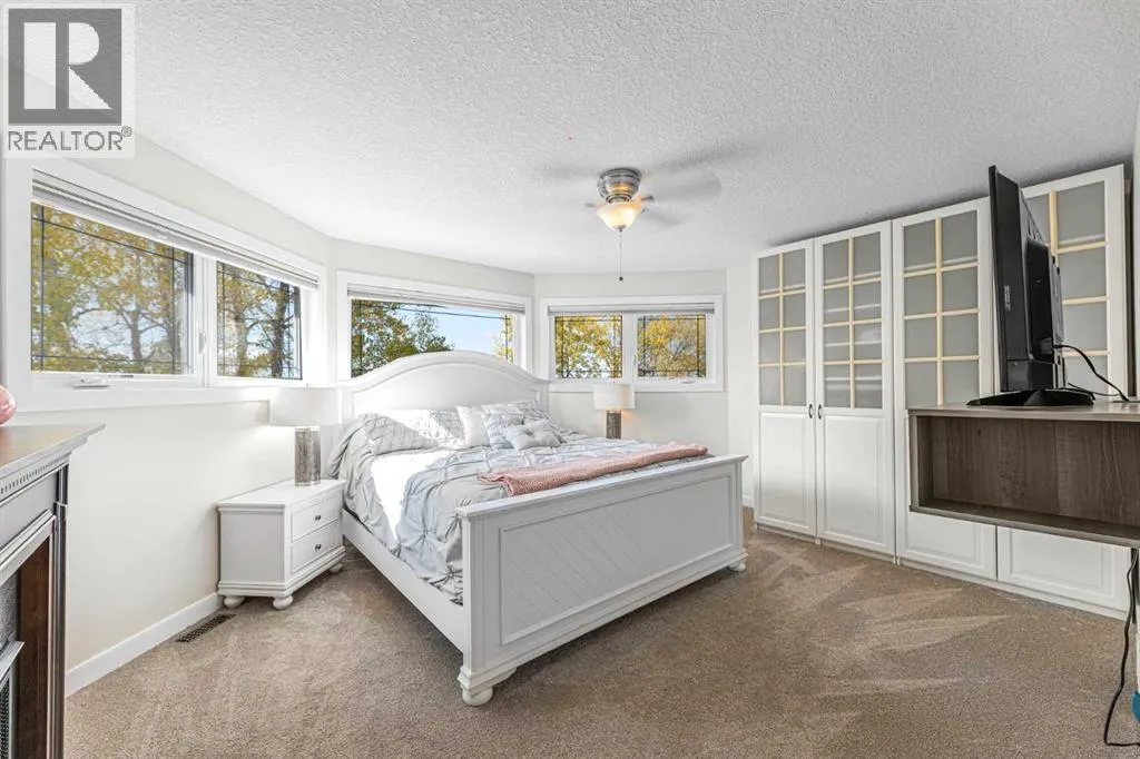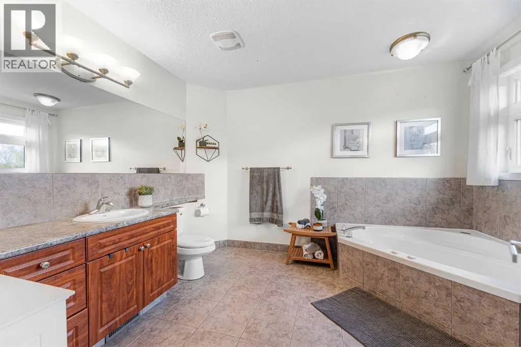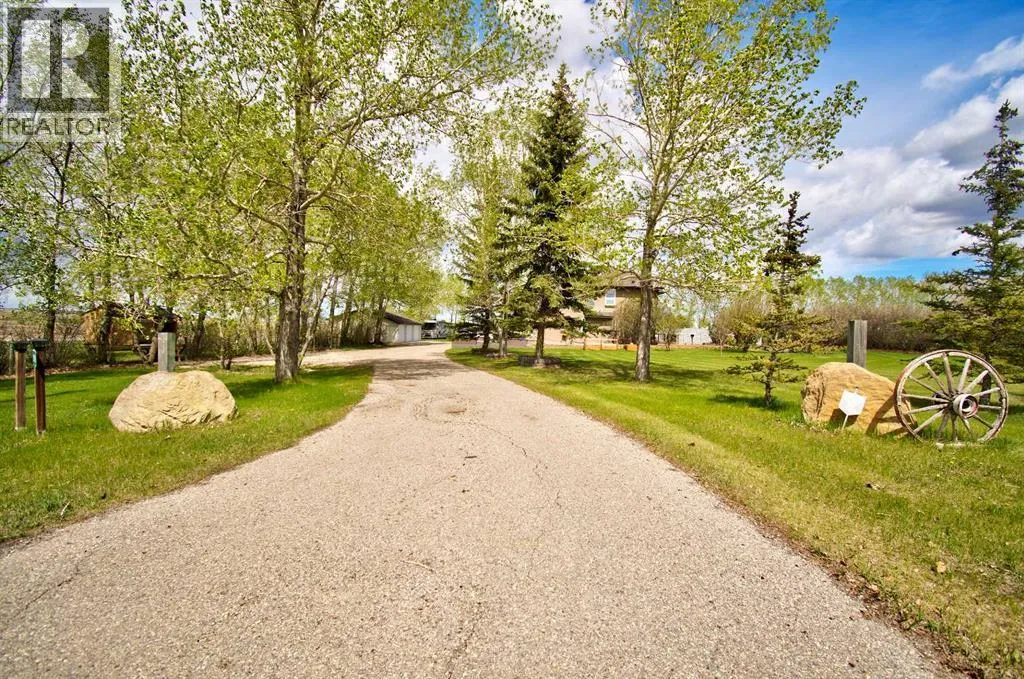 Welcome to Airdrie - country living with city convenience. As you arrive, youâll be greeted by a stunning two-story home on 3.2 acres within city limits. The property includes a triple detached garage, providing ample space for your vehicles and hobbies, in addition to the double attached garage for everyday convenience. Inside, the main floor features a traditional layout, including a formal living room and dining room. The heart of this home is undoubtedly the custom kitchen, adorned with solid wood cabinets, granite countertops, and top-of-the-line stainless steel appliances. A walk-in pantry ensures you have plenty of storage. Enjoy your morning coffee in the cozy breakfast nook, overlooking the gorgeous backyard. Adjacent to the kitchen, a sunken living room invites you to unwind by the gas fireplace, creating a warm and inviting atmosphere. Off the living room is a home office that could also function as an additional bedroom, along with a convenient two-piece bathroom and a custom mudroom with a sink, situated just off the garage. Up the curved staircase with skylights above, youâll discover four bedrooms, including the primary bedroom with a walk-in closet and a separate wardrobe and hidden storage. The five-piece bathroom is shared for upstairs while you get your own personal ensuite with a corner shower and a jetted tub. The fully finished basement features a spacious entertainment rec room equipped with a wet bar and ample cabinet space. Itâs the perfect spot for family movie nights and hosting friends. Additionally, youâll find a well-appointed four-piece bathroom, a cold room, and a hobby room, plus a SEPERATE ENTRY COVERED WALK UP that gives the basement easy and private access. Now, letâs talk about the outdoor space. Your backyard is complete with a playground, fire pit area, and an entertainment zone where you can host barbecues and soak in your hot tub. The mature trees provide natural privacy, and thereâs plenty of storage for your RV, boats, and all your toys. Donât miss the opportunity to make this extraordinary property your forever home! (id:27476)