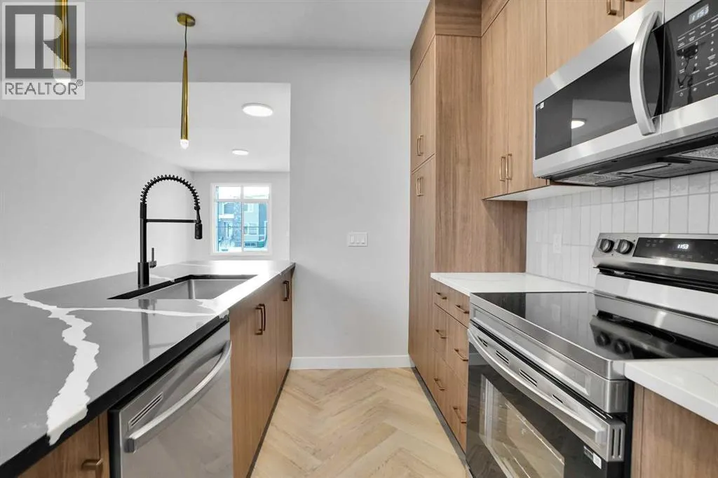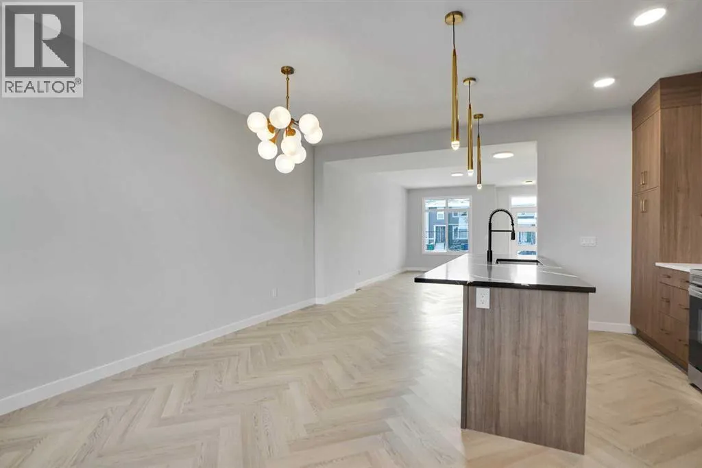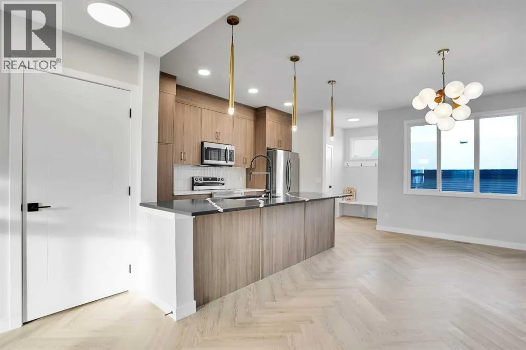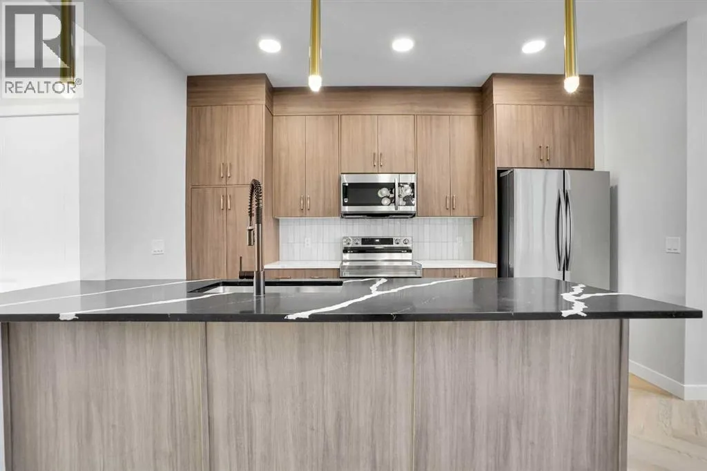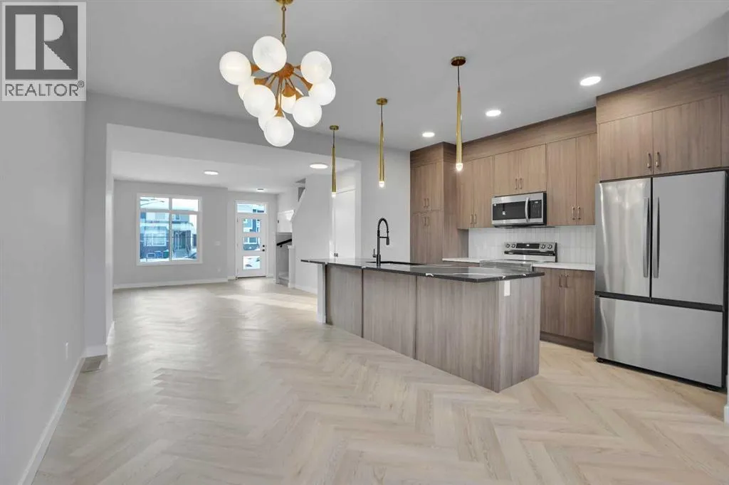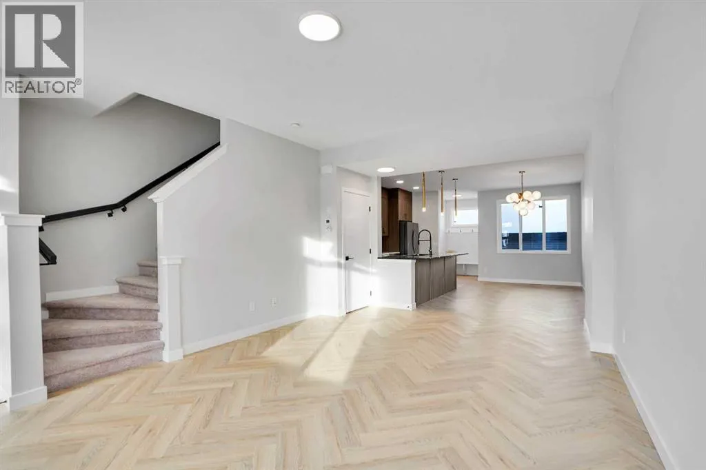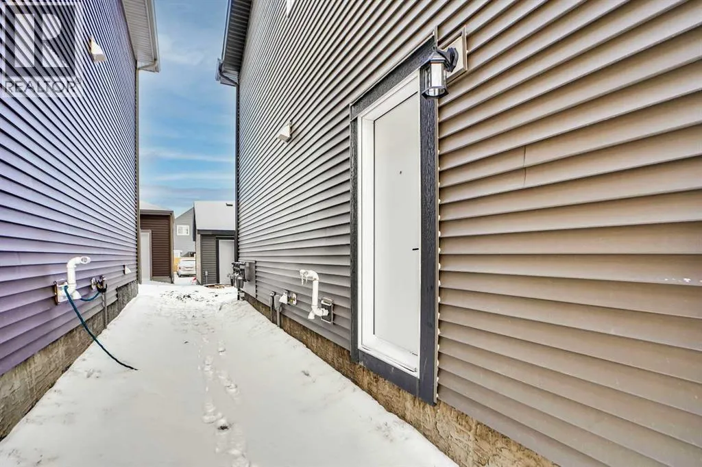 Discover this brand-new, end-unit townhome in the highly sought-after Cobblestone community of Airdrieâwhere modern living meets everyday convenience! Offering 1,525 sq. ft. of thoughtfully designed space, this home is perfect for families, first-time buyers, or downsizers looking for style and functionality without compromise.Step inside to an open-concept main floor featuring 9â ceilings, large windows for natural light, and a spacious living area that flows seamlessly into the dining space. The chef-inspired kitchen boasts quartz countertops, a central island, stainless steel appliances, and sleek cabinetryâideal for cooking, entertaining, and casual dining.Upstairs, retreat to the luxurious primary suite with a private ensuite and generous walk-in closet. Two additional bedrooms provide flexibility for kids, guests, or a home office, while the convenient upper-level laundry adds everyday practicality.This home also includes a side entrance to the basement, offering future development potential, and a detached double garage (under construction) with paved back lane access. Enjoy NO condo fees, quick possession, and a low-maintenance lifestyle in a growing community close to schools, parks, shopping, and major routesâmaking commuting to Calgary or weekend mountain getaways a breeze. (id:27476)